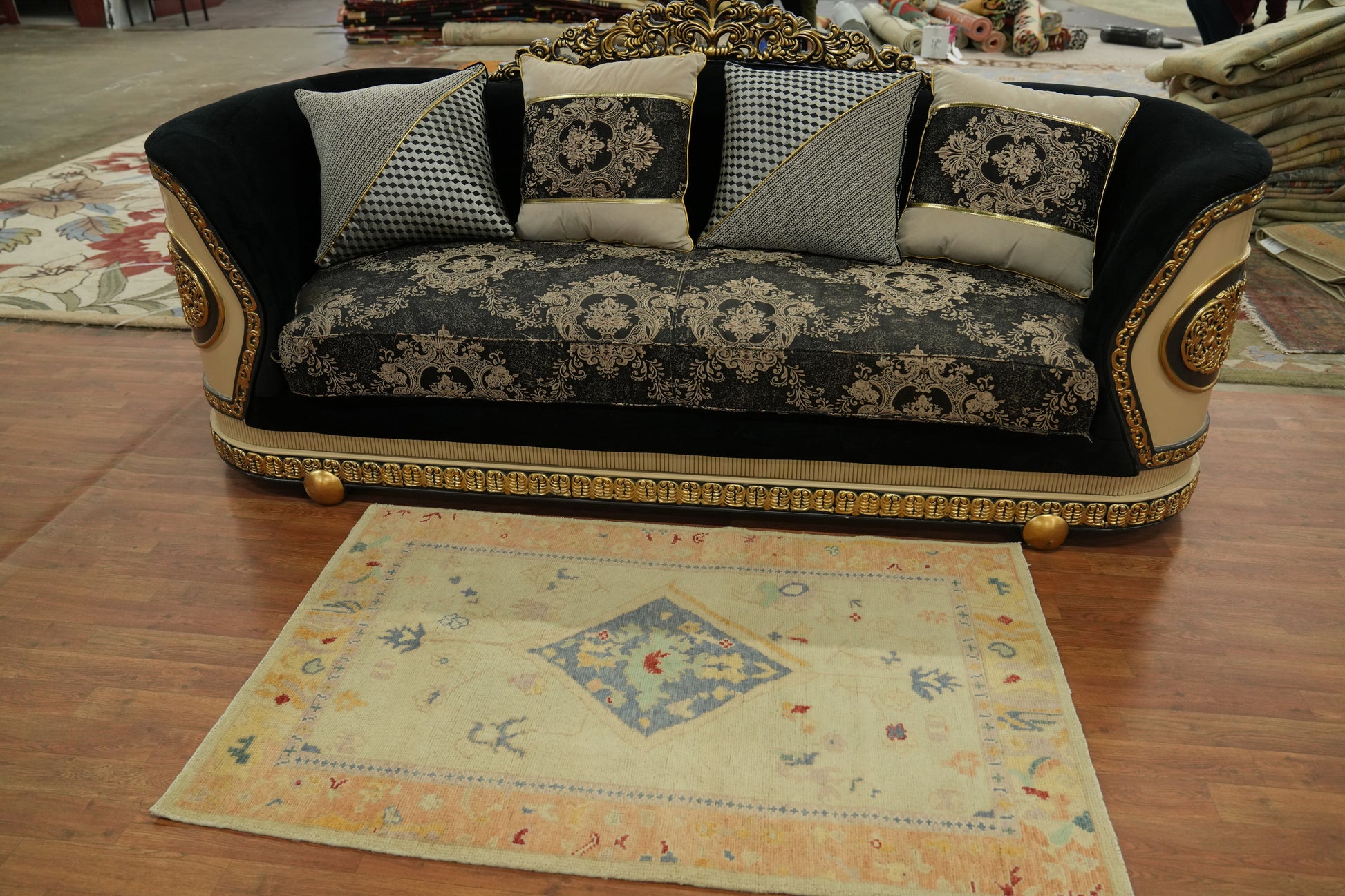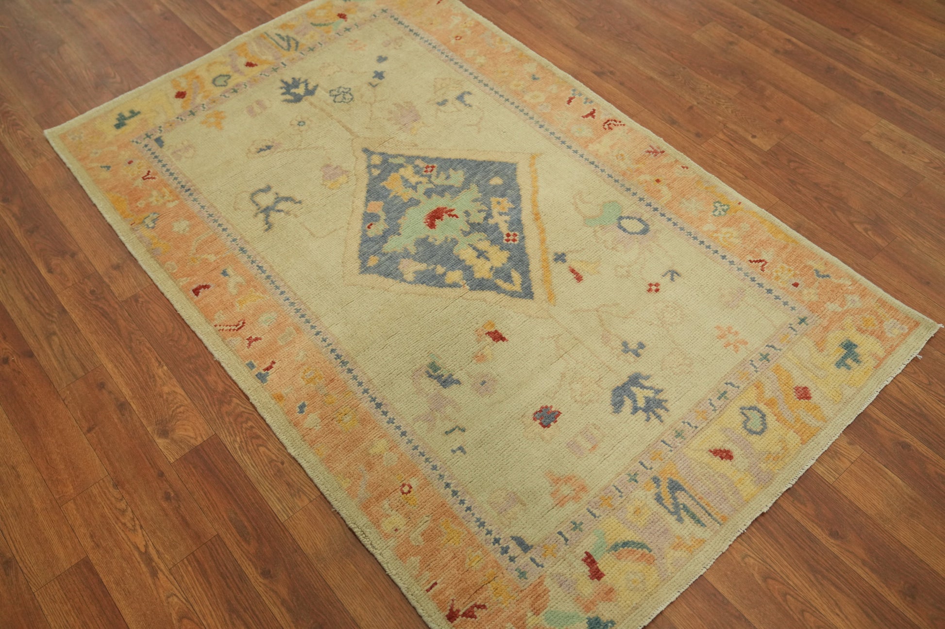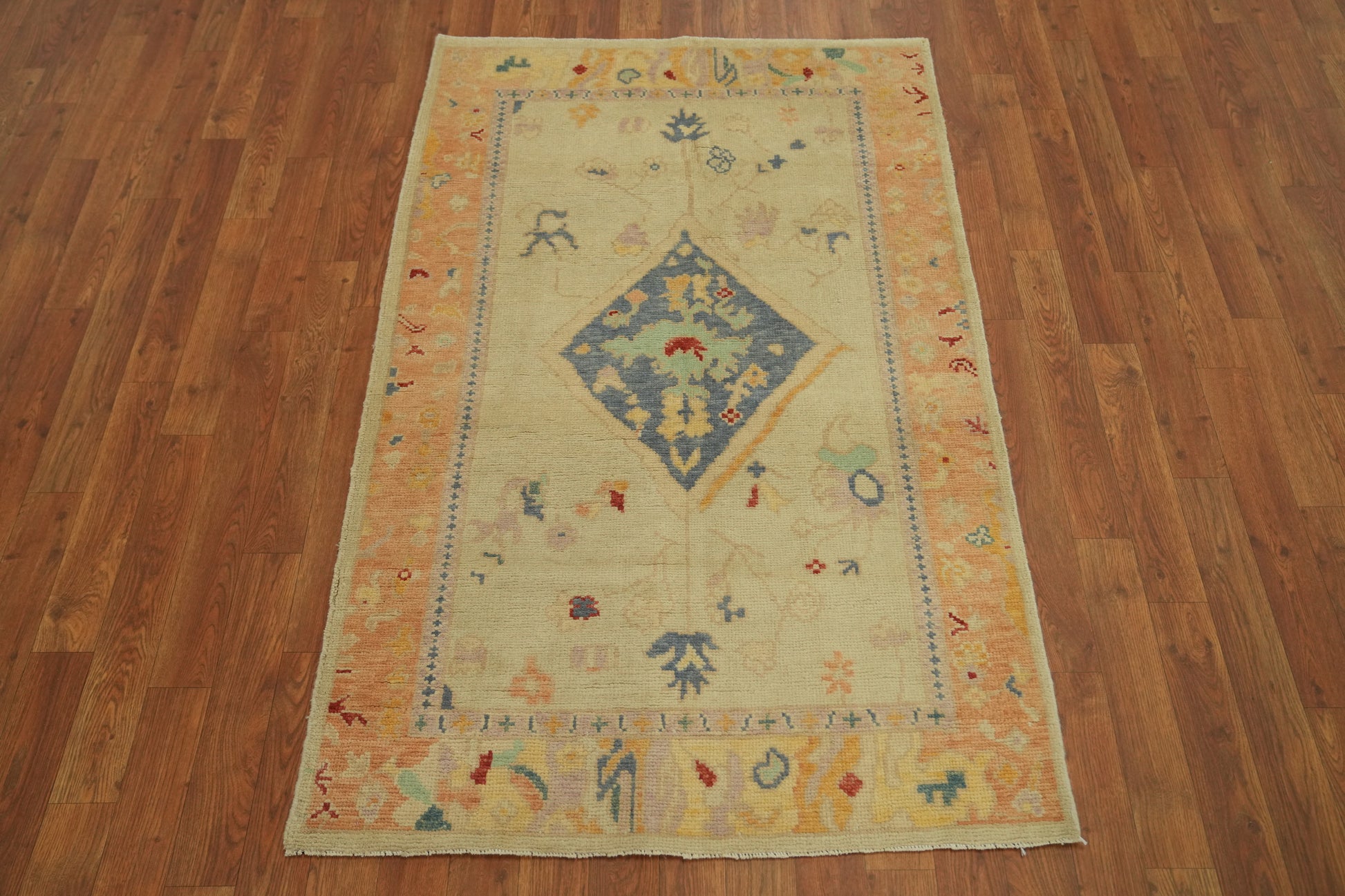 Vegetable Dye Wool Oushak Turkish Rug 3x5