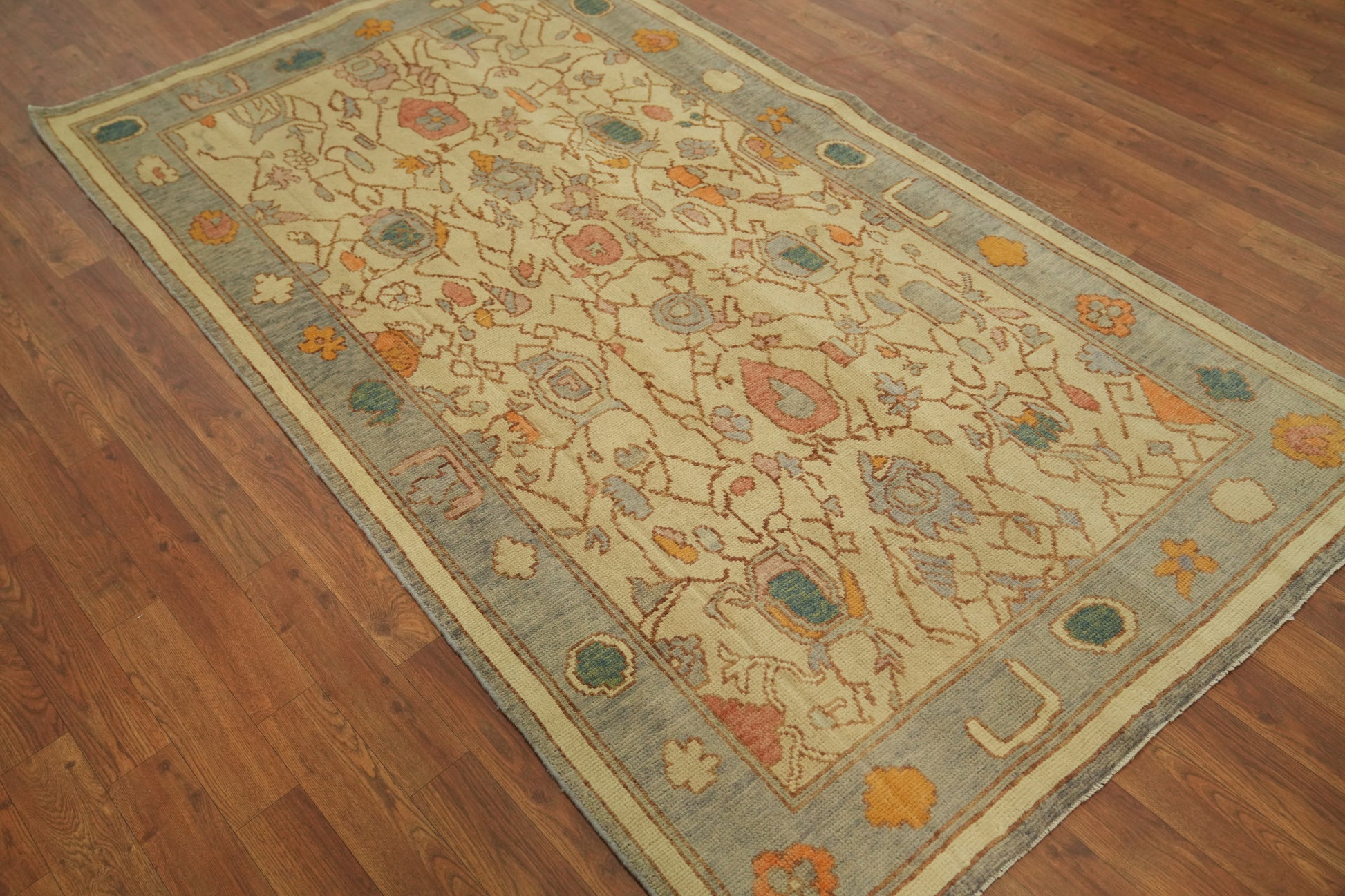 Vegetable Dye Wool Oushak Turkish Rug 4x7