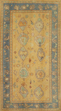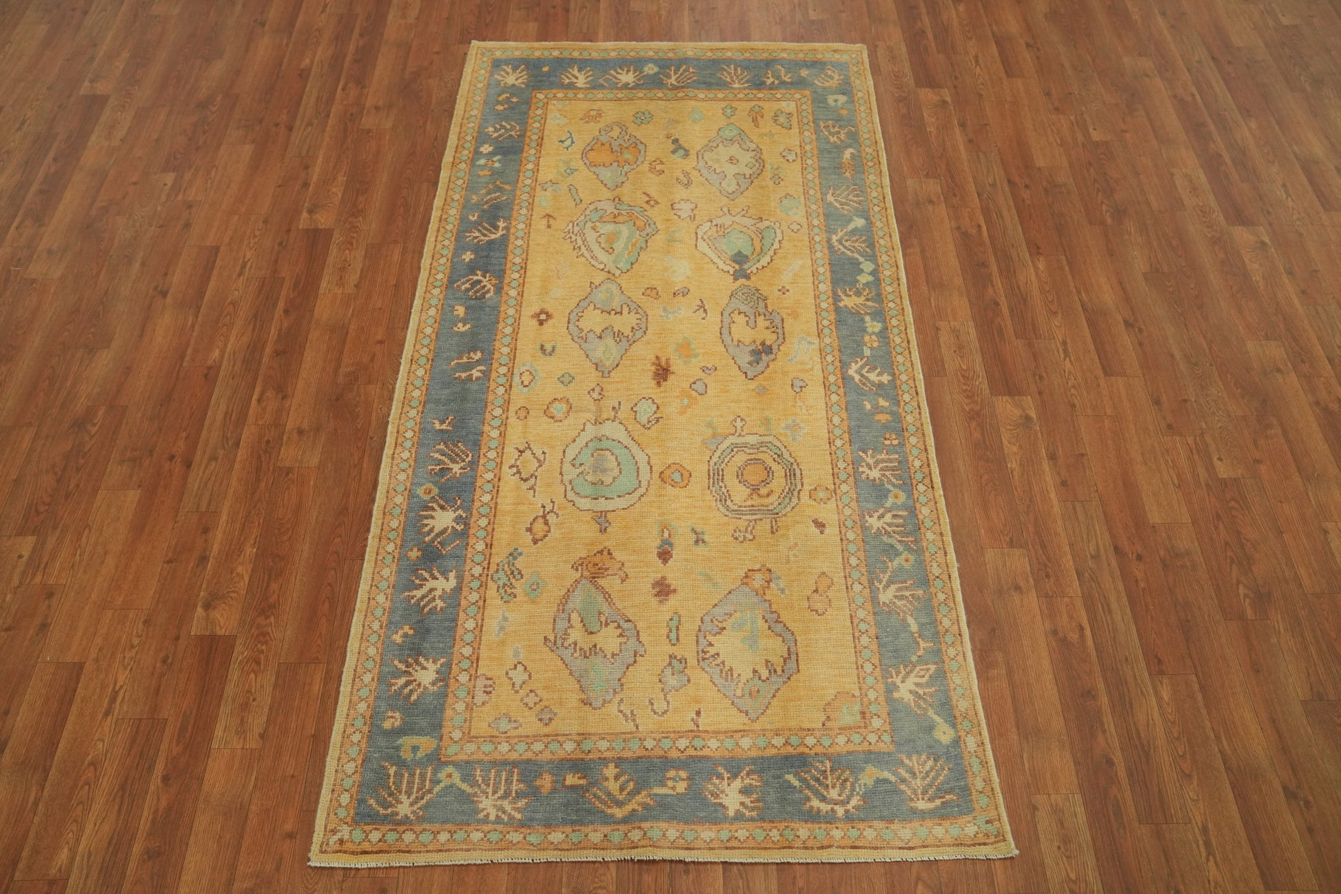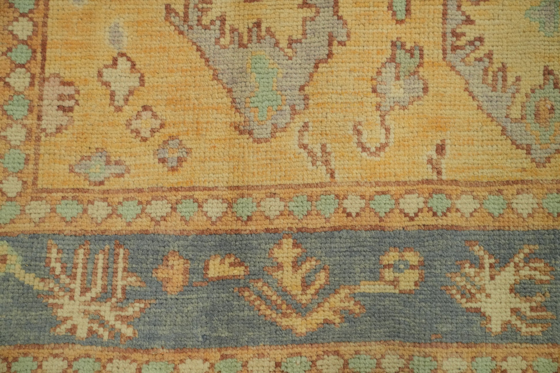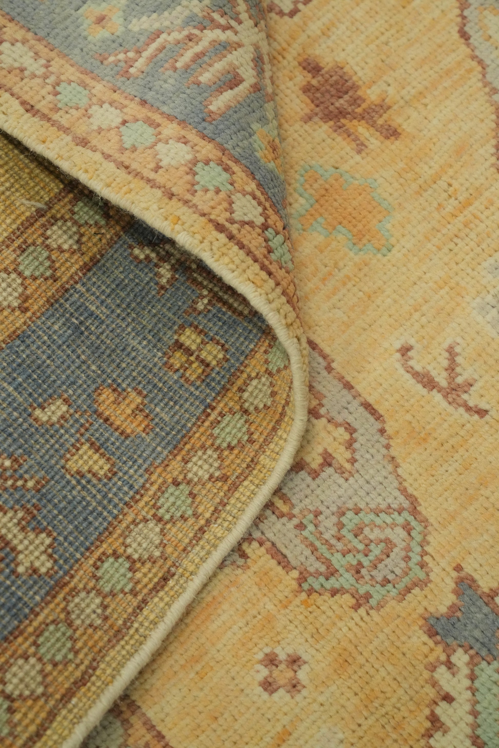 A Beautiful Genuine Turkey Oushak rug is Hand Knotted by skillful weavers in Turkey with 100% Wool Material. This rug is in New, First Quality condition. dimensions are 6' 9'' X 3' 6'' in foot and 206 X 107 in centimeter. the primary color is Yellow & Gold.