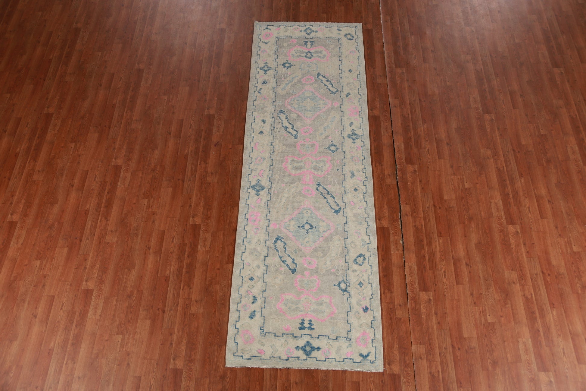 Vegetable Dye Wool Oushak Turkish Runner Rug 3x10