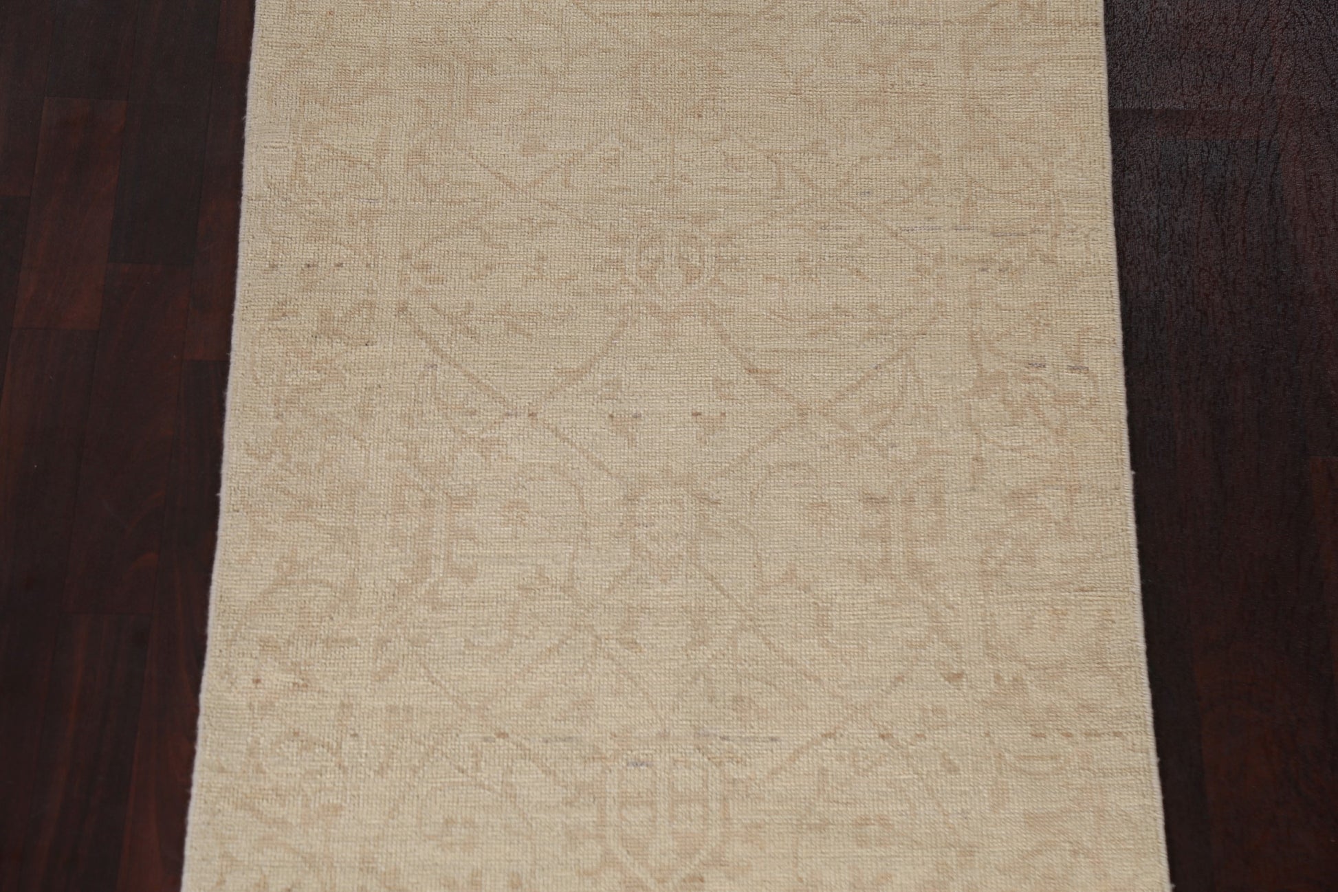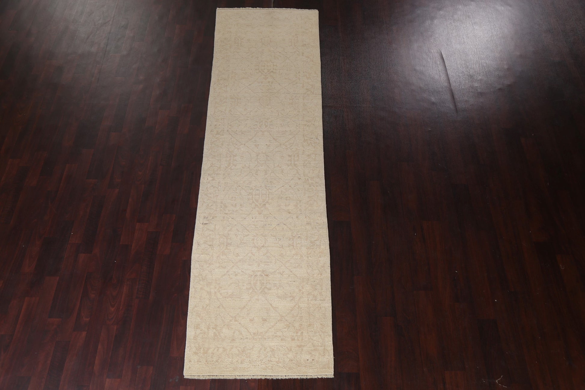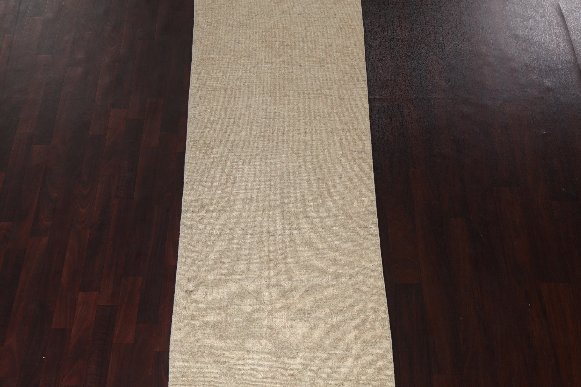 A Beautiful Genuine Turkey Oushak rug is Hand Knotted by skillful weavers in Turkey with 100% Wool Material. This rug is in New, First Quality condition. dimensions are 10' 6'' X 2' 10'' in foot and 320 X 86 in centimeter. the primary color is Beige & Ivories.