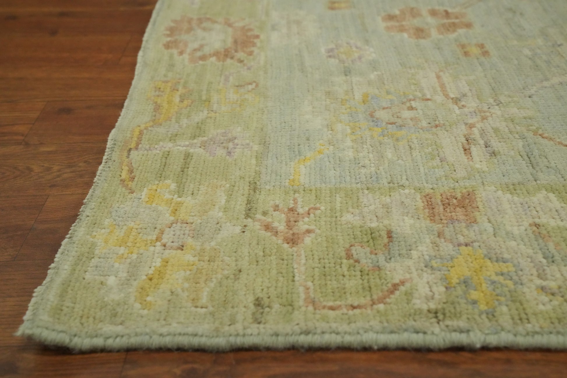 A Beautiful Genuine Turkey Oushak rug is Hand Knotted by skillful weavers in Turkey with 100% Wool Material. This rug is in New, First Quality condition. dimensions are 11' 7'' X 3' 1'' in foot and 353 X 94 in centimeter. the primary color is Green.