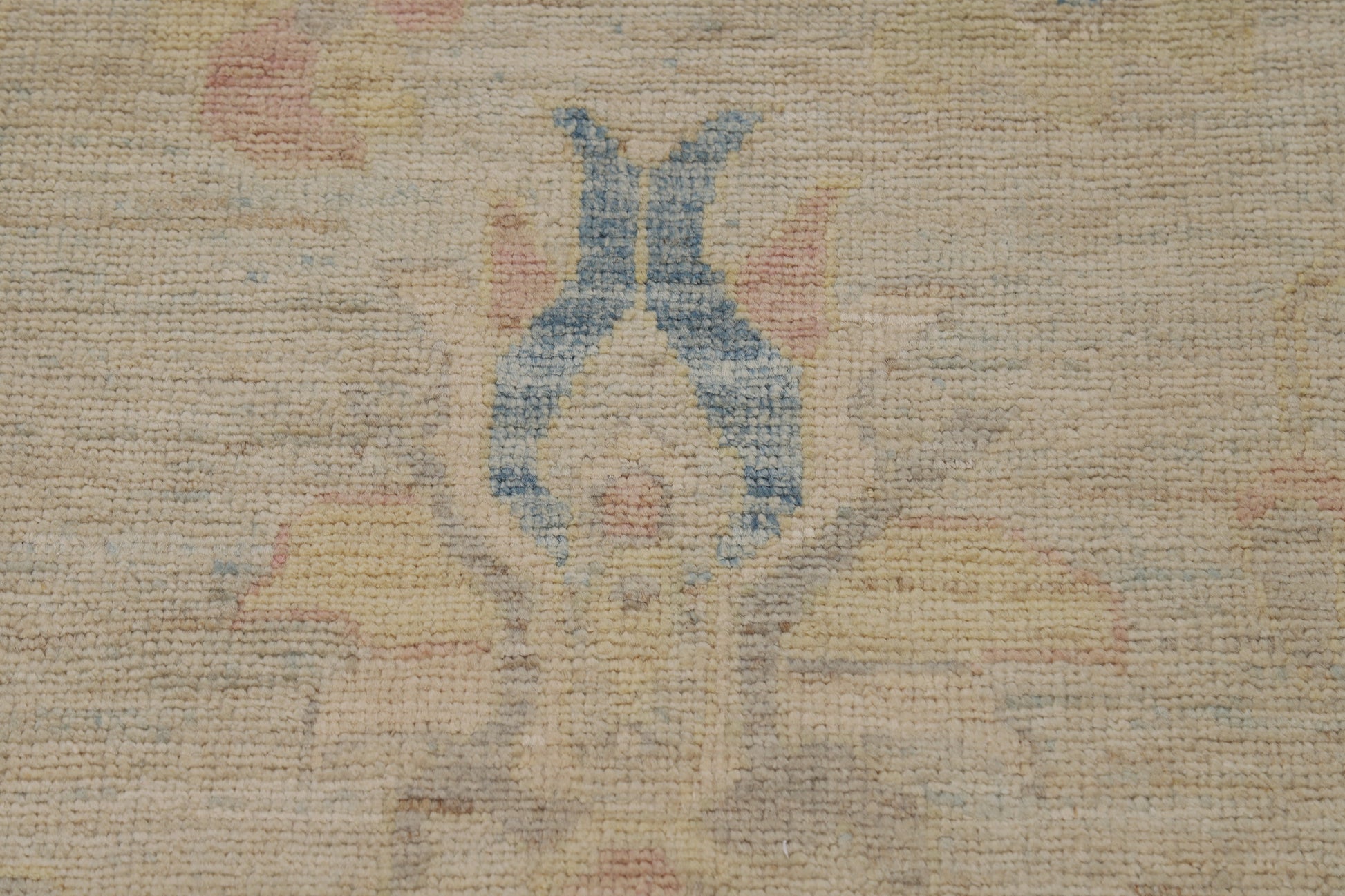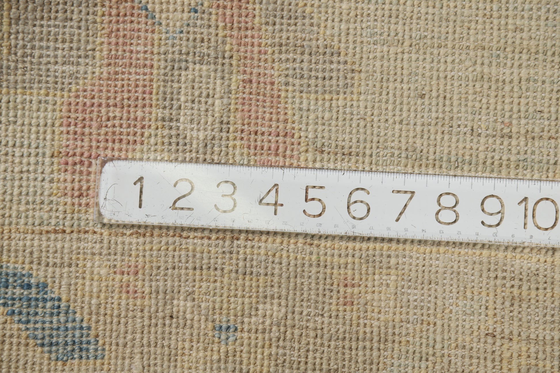 A Beautiful Genuine Turkey Oushak rug is Hand Knotted by skillful weavers in Turkey with 100% Wool Material. This rug is in New, First Quality condition. dimensions are 11' 9'' X 2' 9'' in foot and 358 X 84 in centimeter. the primary color is Beige & Ivories.