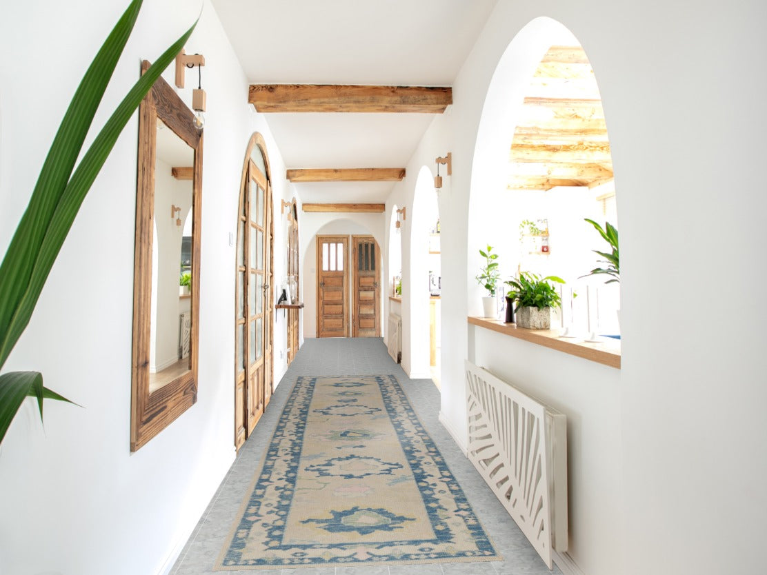 Vegetable Dye Wool Oushak Turkish Runner Rug 3x14