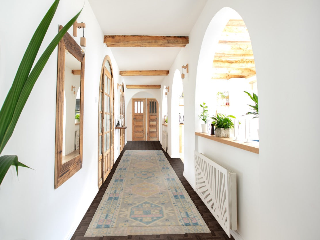 Vegetable Dye Wool Oushak Turkish Runner Rug 3x17