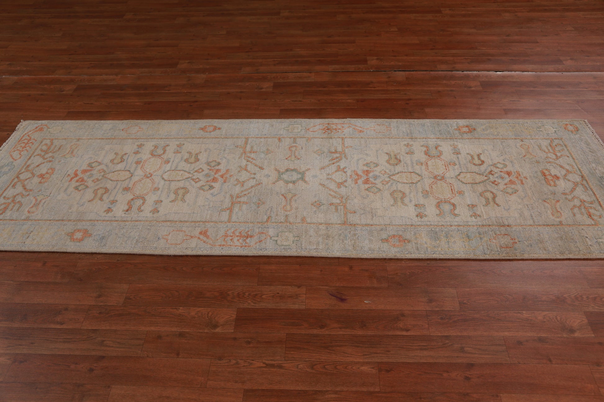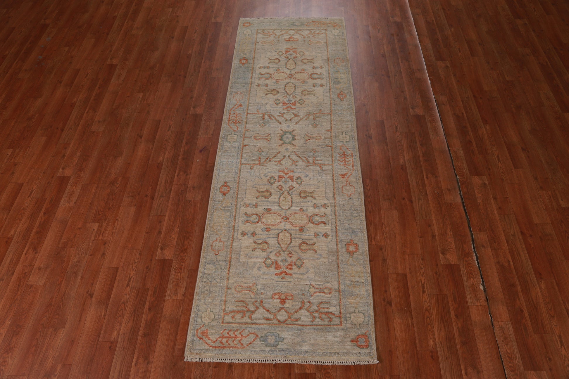 Vegetable Dye Wool Oushak Turkish Runner Rug 3x8