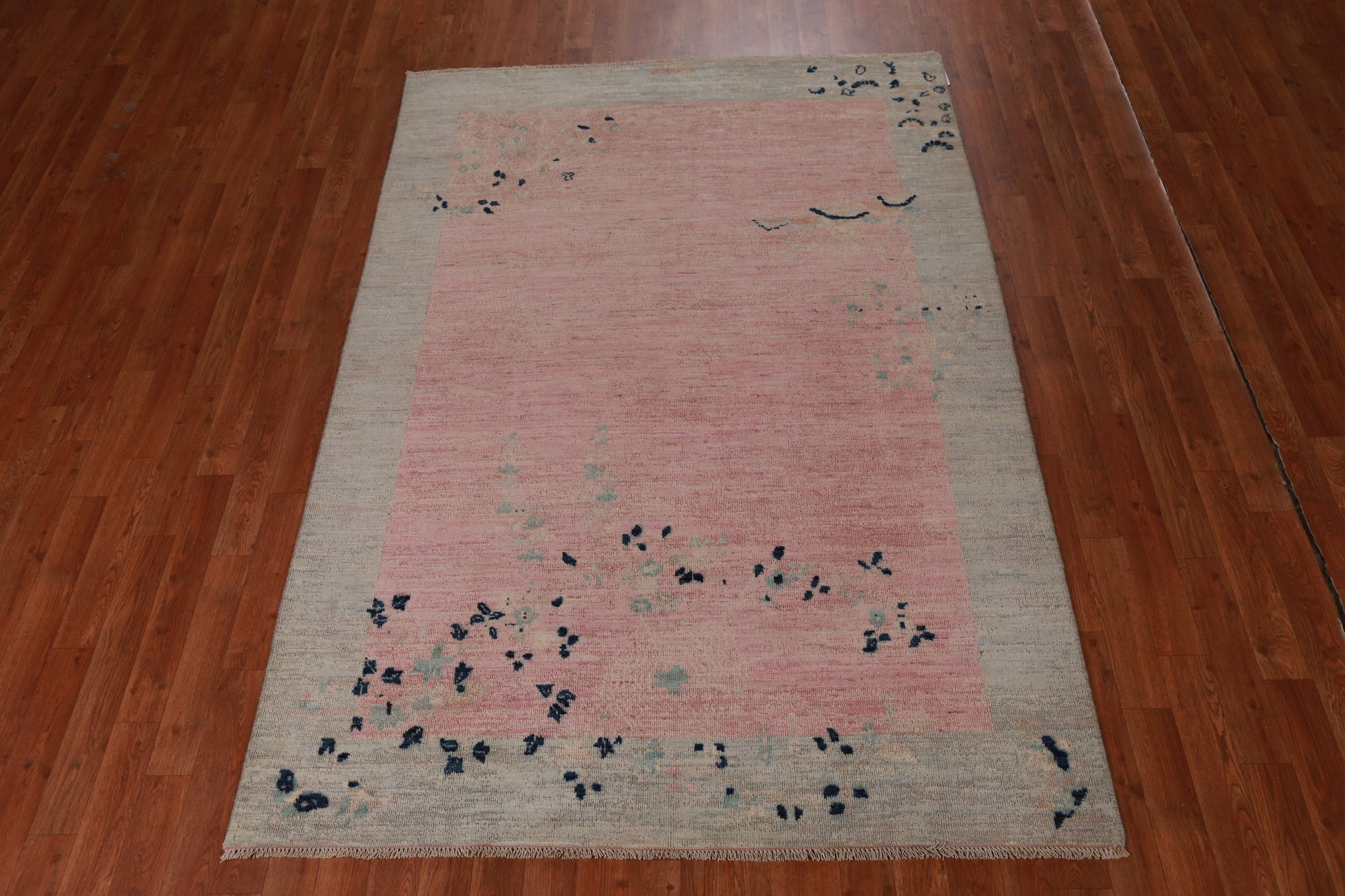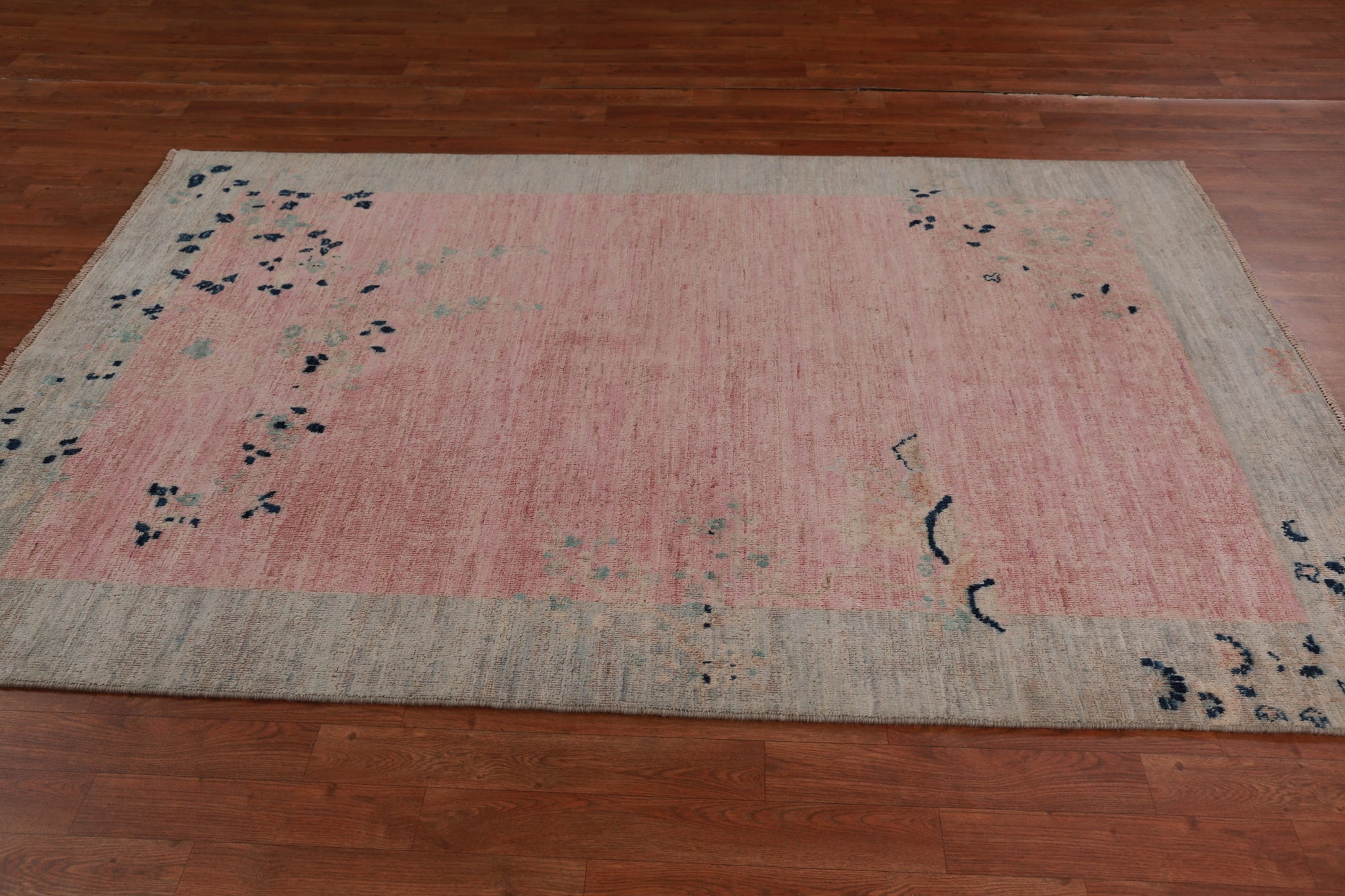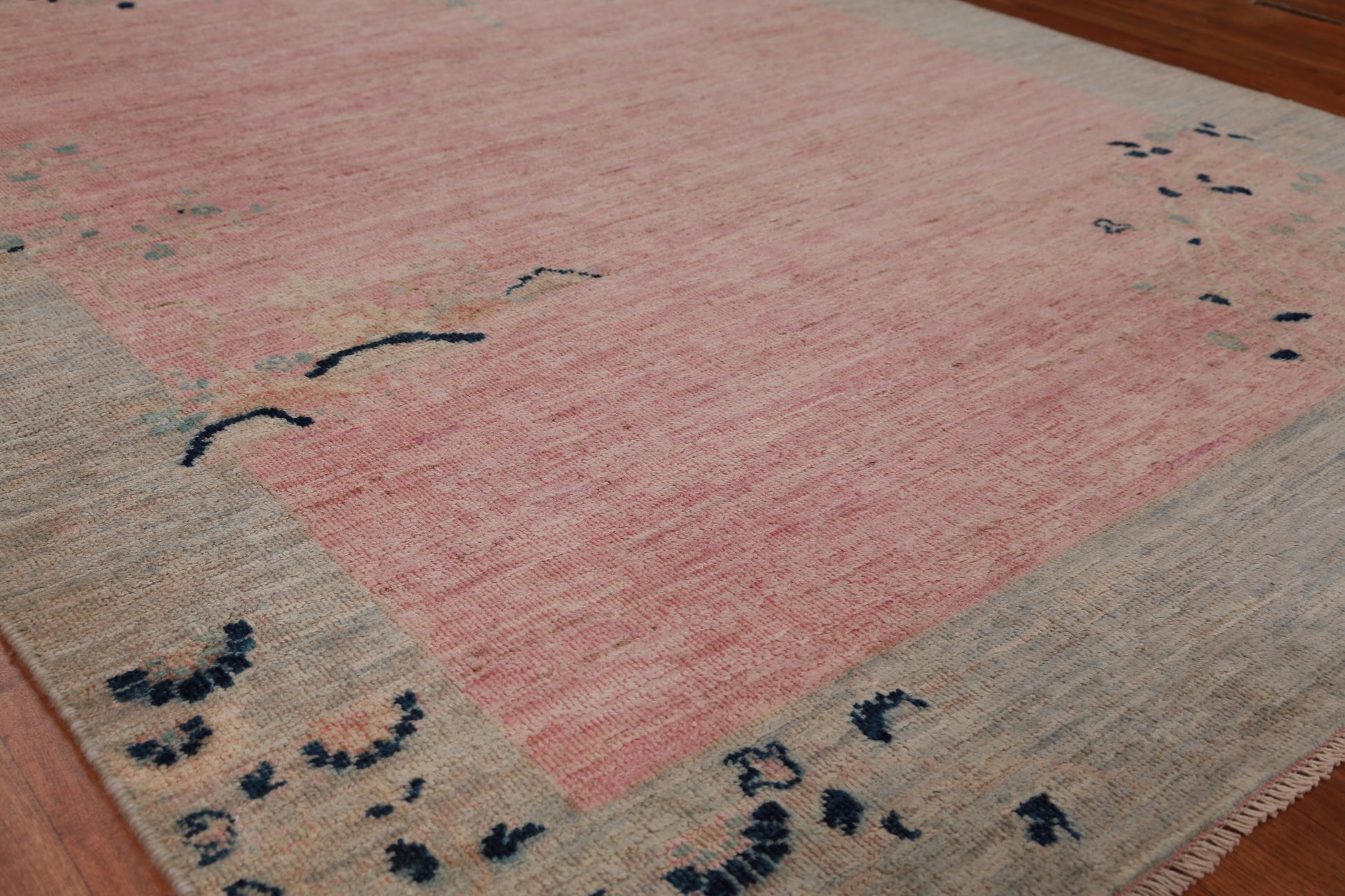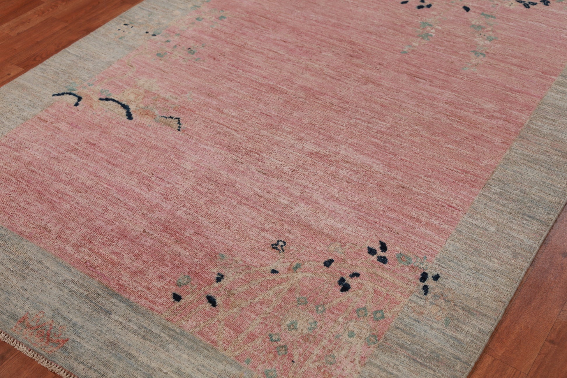 Vegetable Dye Wool Pink Art Deco Turkish Rug 5x7