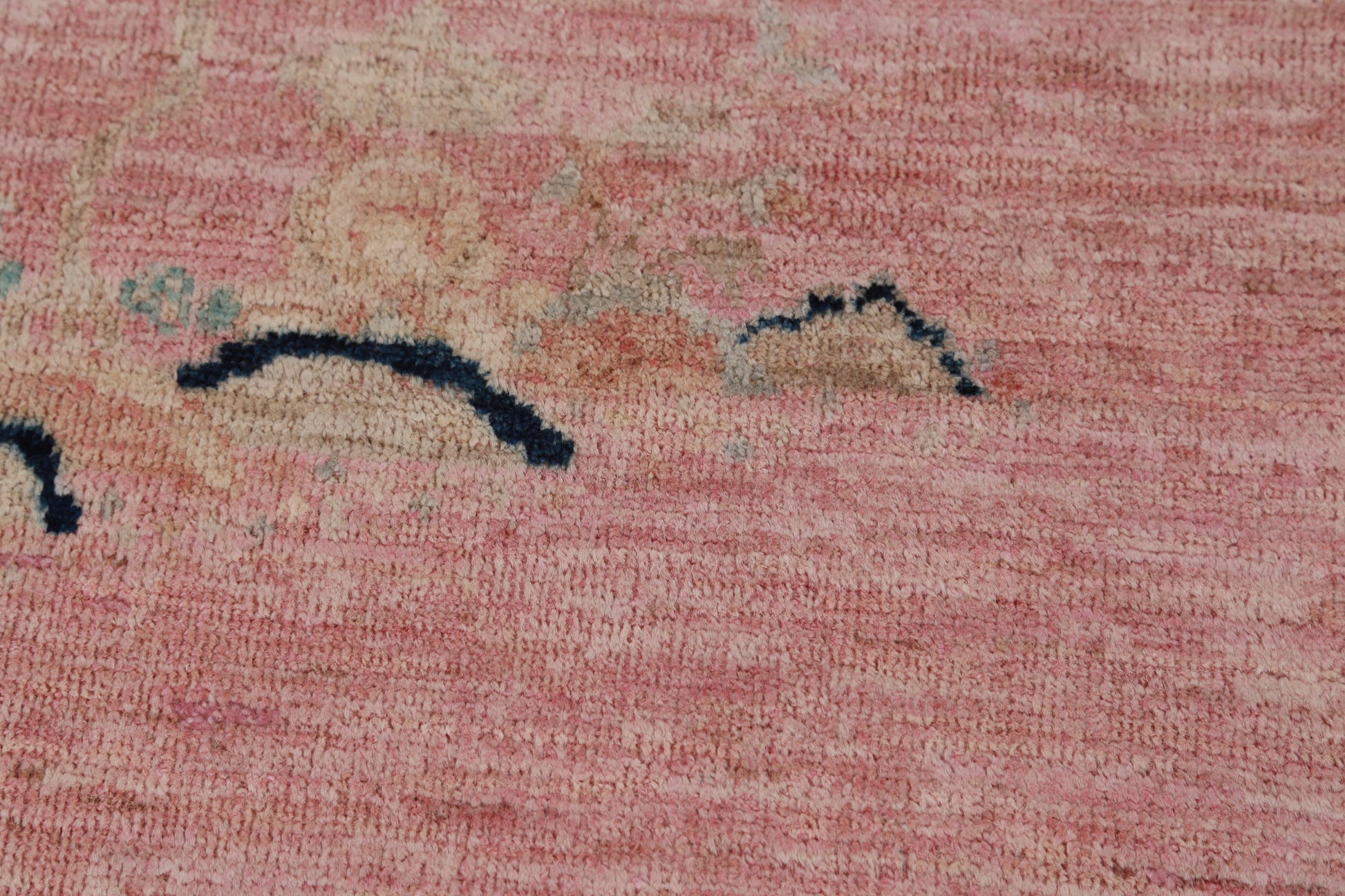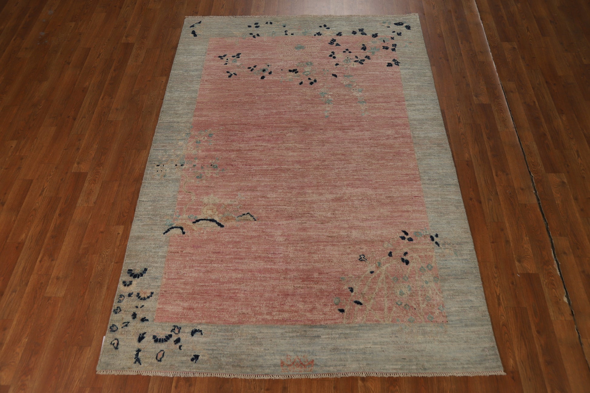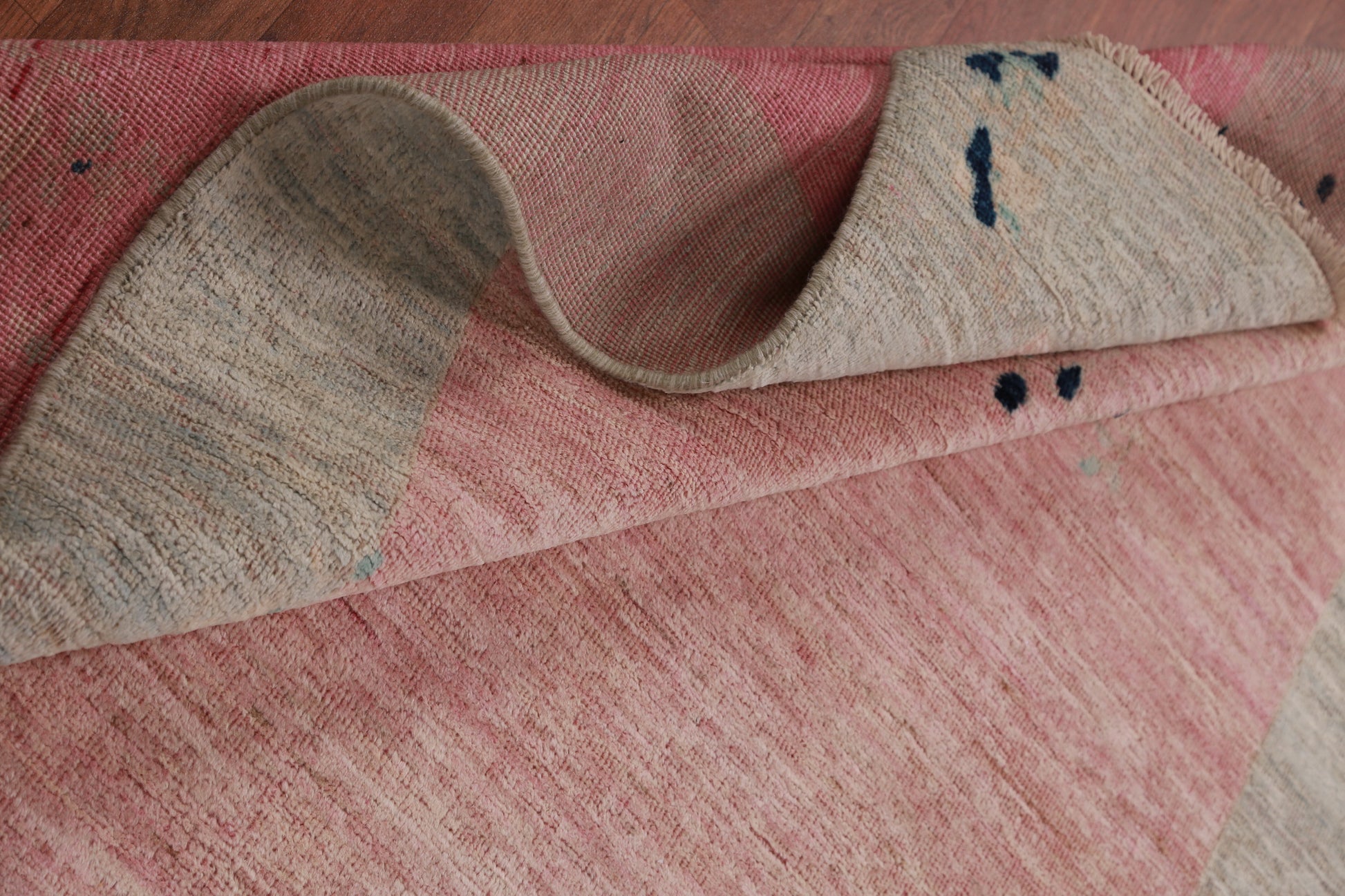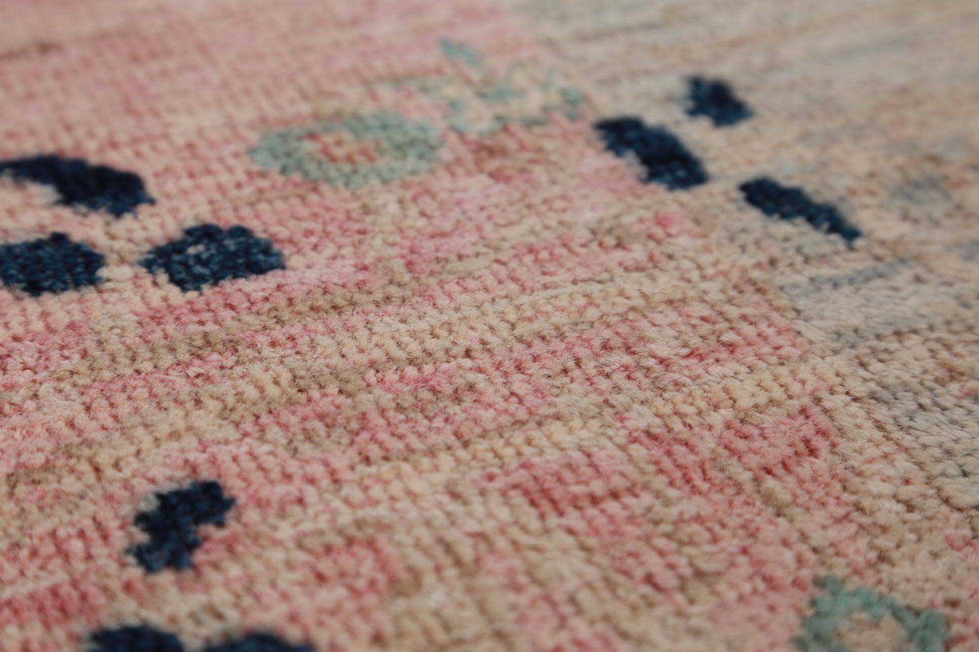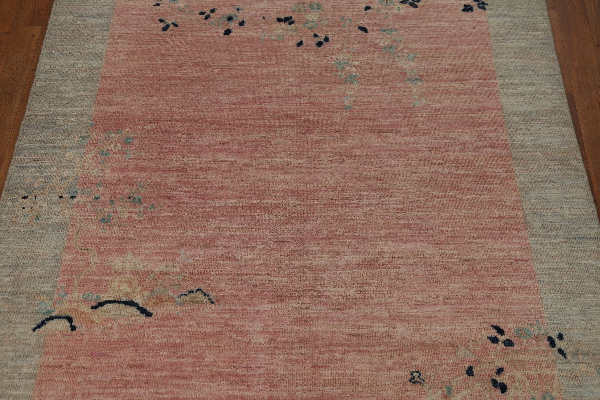 Vegetable Dye Wool Pink Art Deco Turkish Rug 5x7