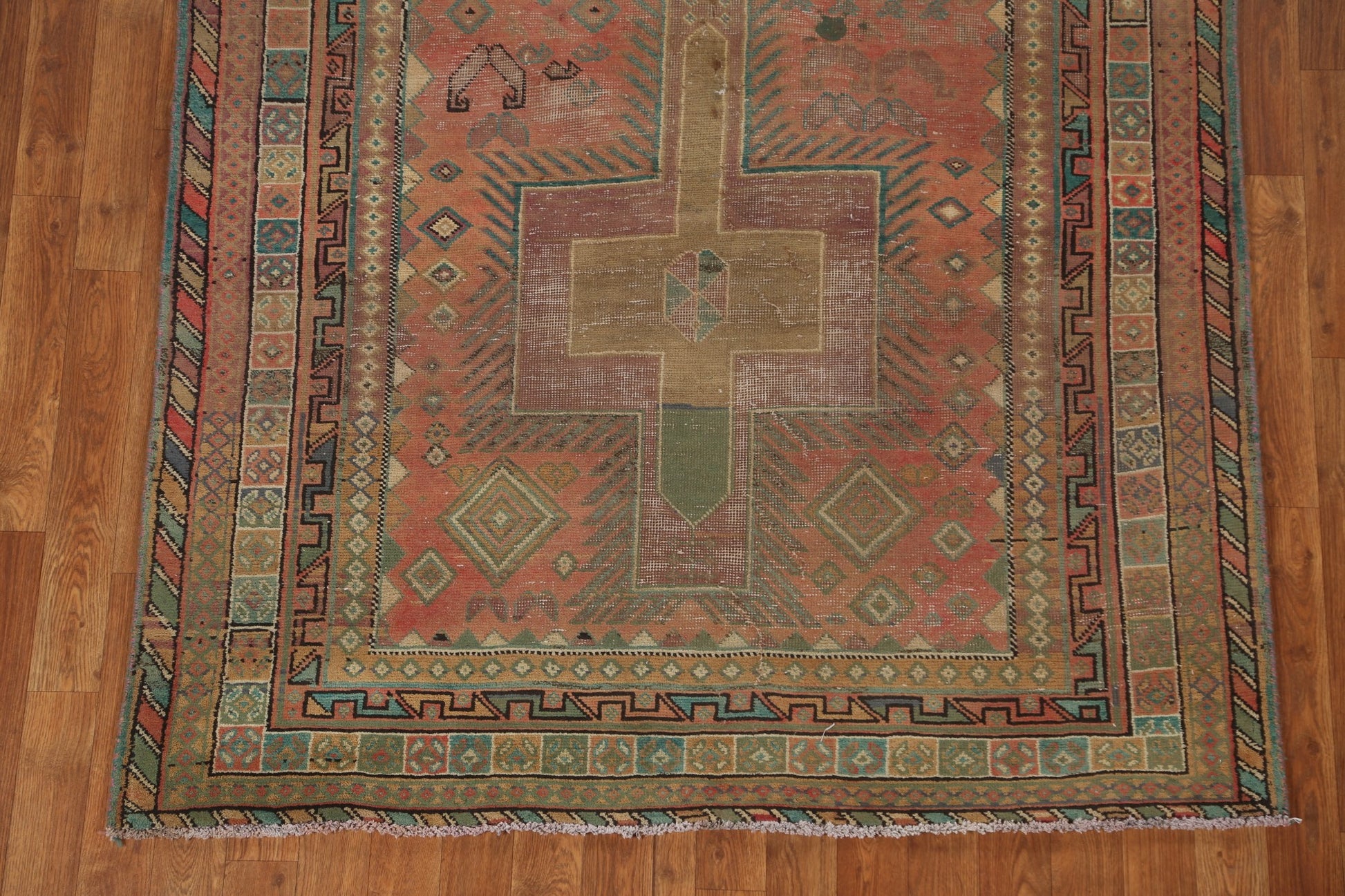 A Beautiful Genuine Persia ( Persia ) Shiraz rug is Hand Knotted by skillful weavers in Persia ( Persia ) with 100% Wool Material. This rug is in Very Good (Evenly Low Pile) condition. dimensions are 7' 10'' X 4' 6'' in foot and 239 X 137 in centimeter. the primary color is Coral.
