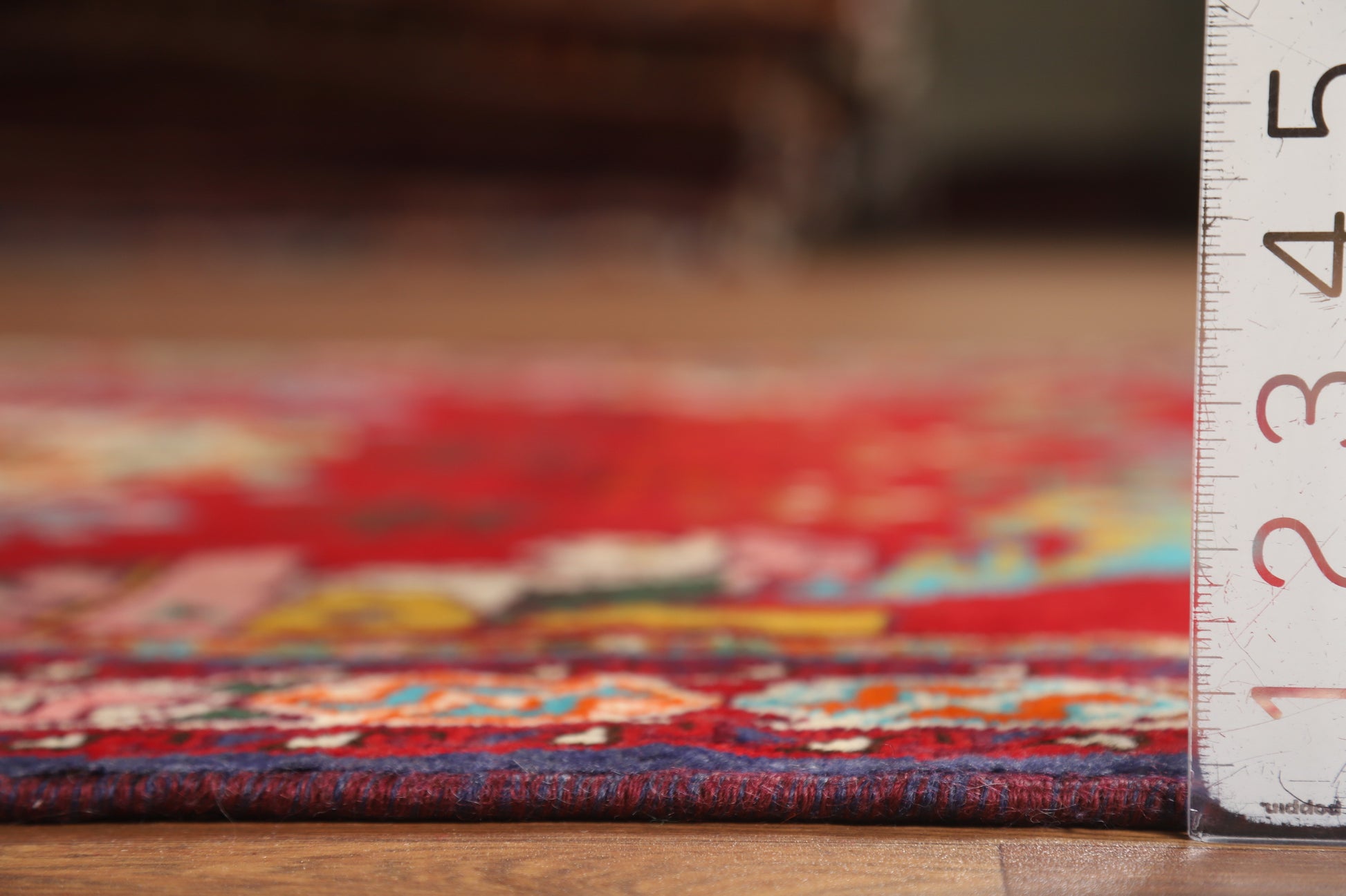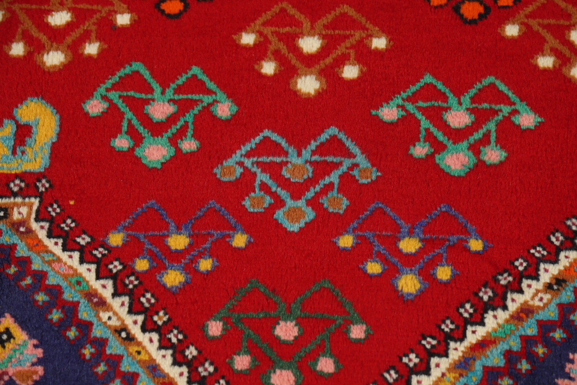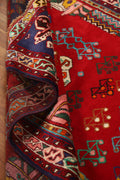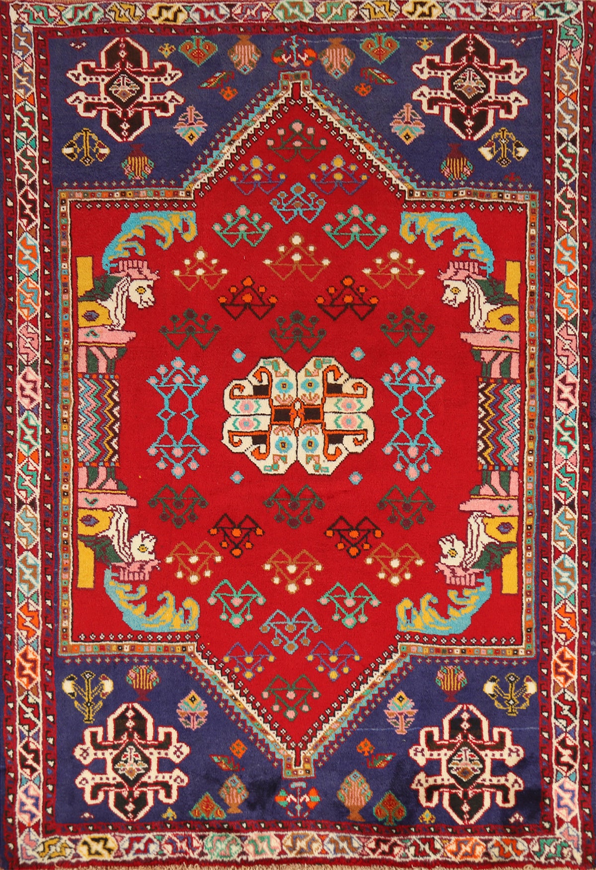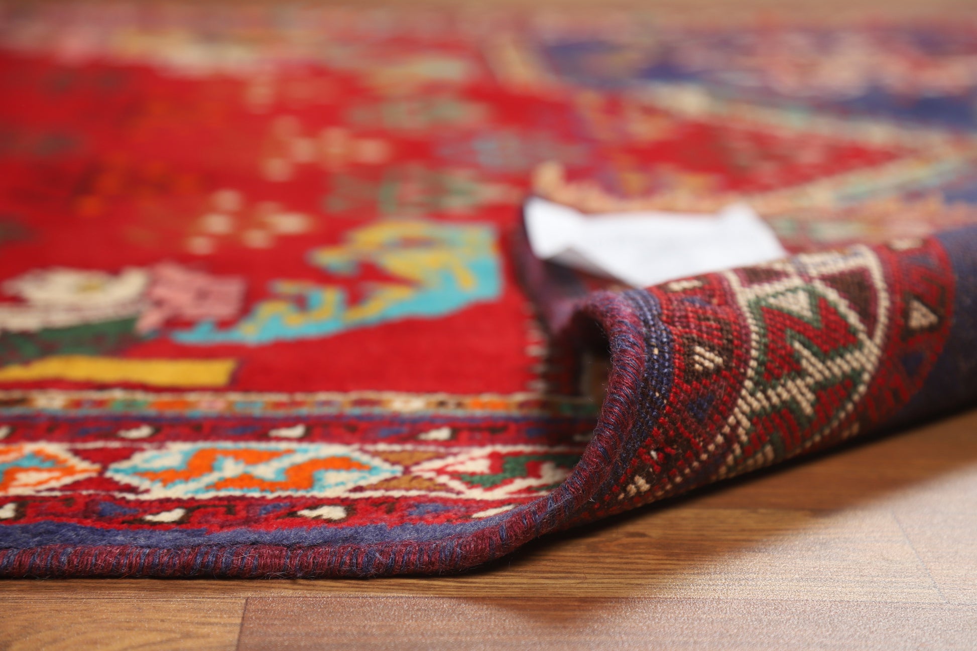 A Beautiful Genuine Persia ( Persia ) Shiraz rug is Hand Knotted by skillful weavers in Persia ( Persia ) with 100% Wool Material. This rug is in Very Good condition. dimensions are 6' 3'' X 4' 7'' in foot and 191 X 140 in centimeter. the primary color is Red.