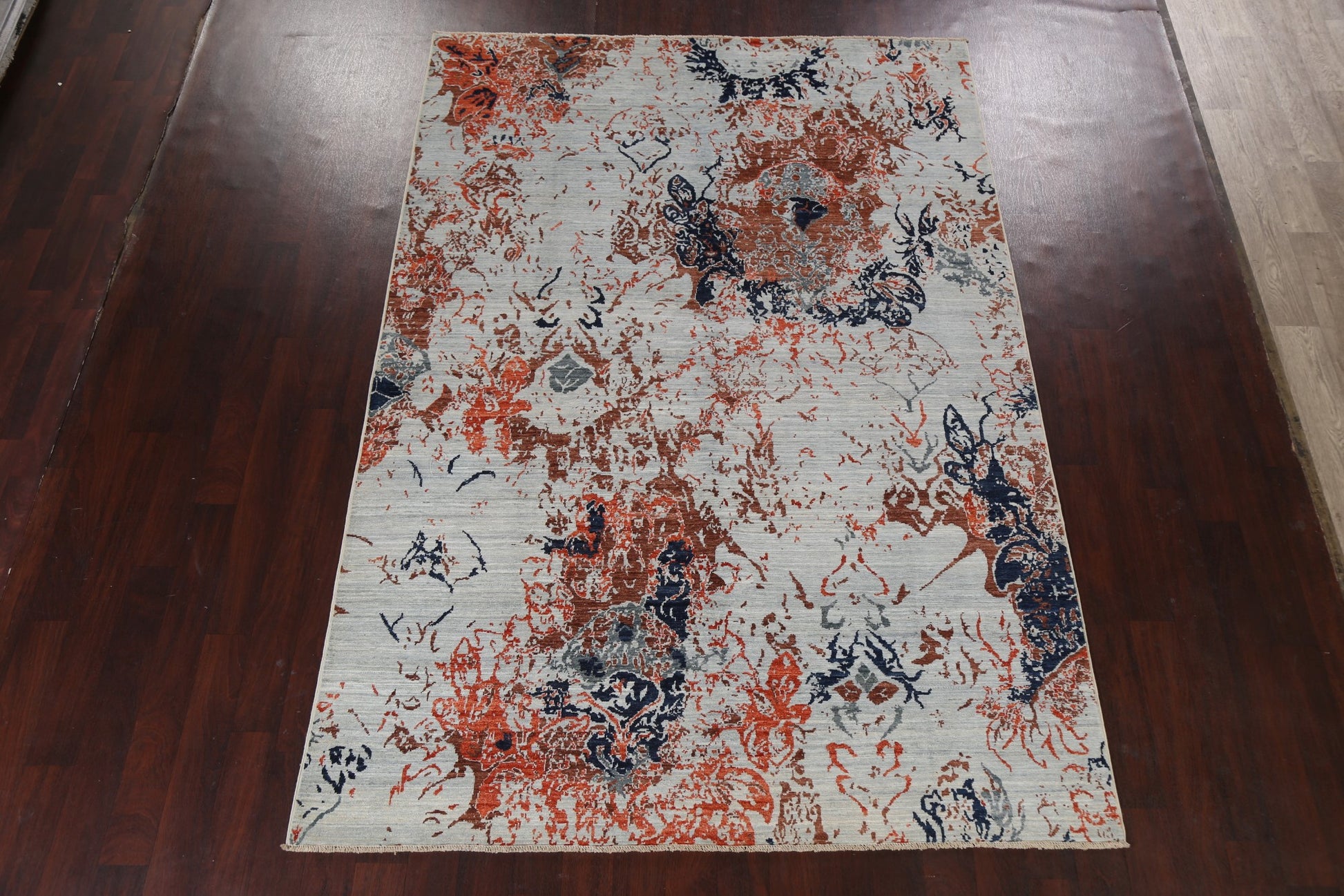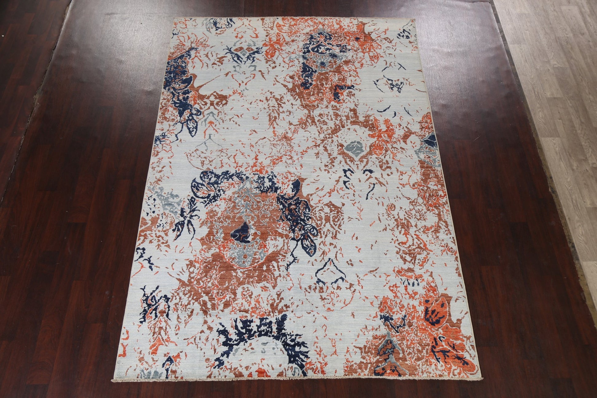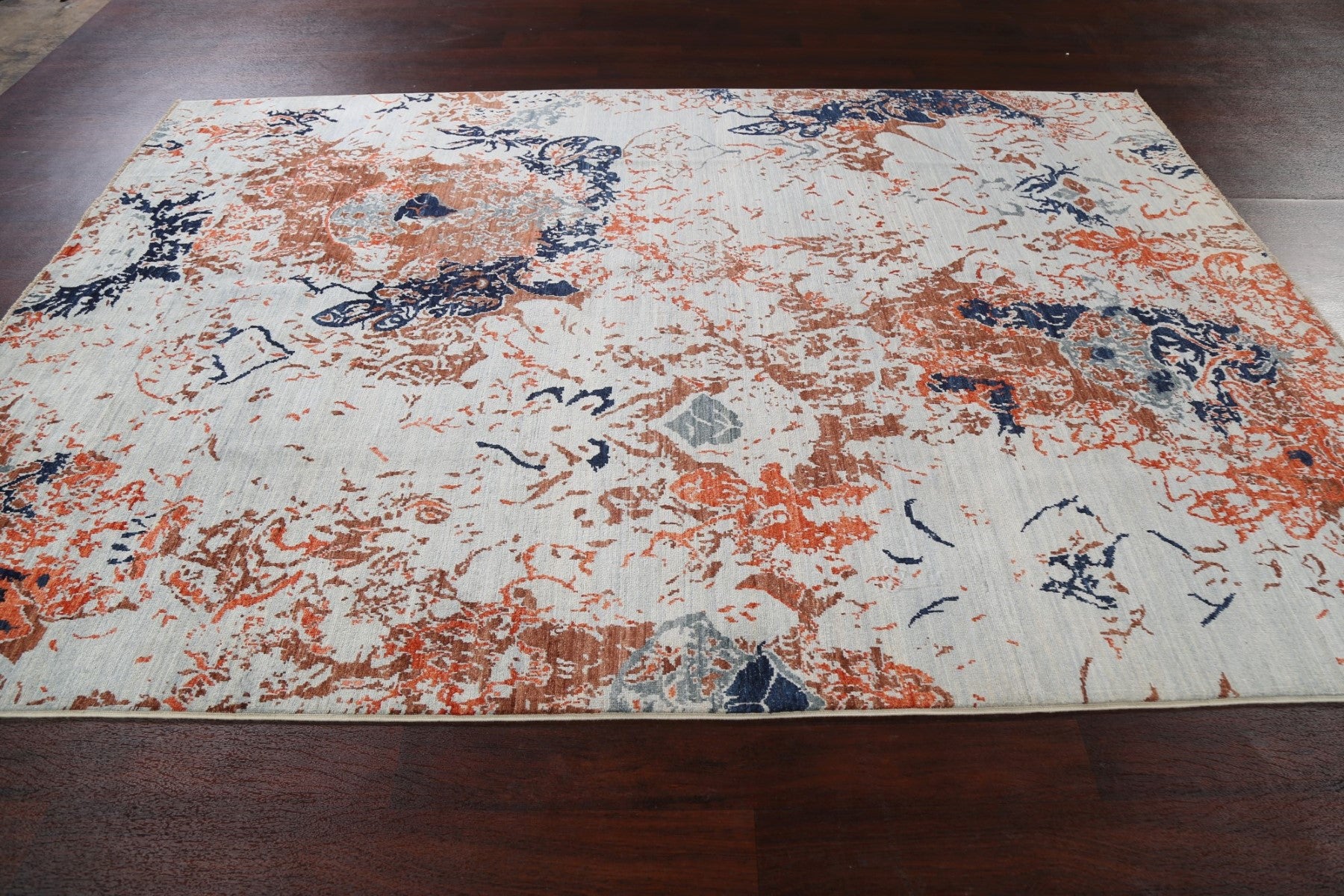 Vegetable Dye Wool/ Silk Abstract Handmade Area Rug 7x10