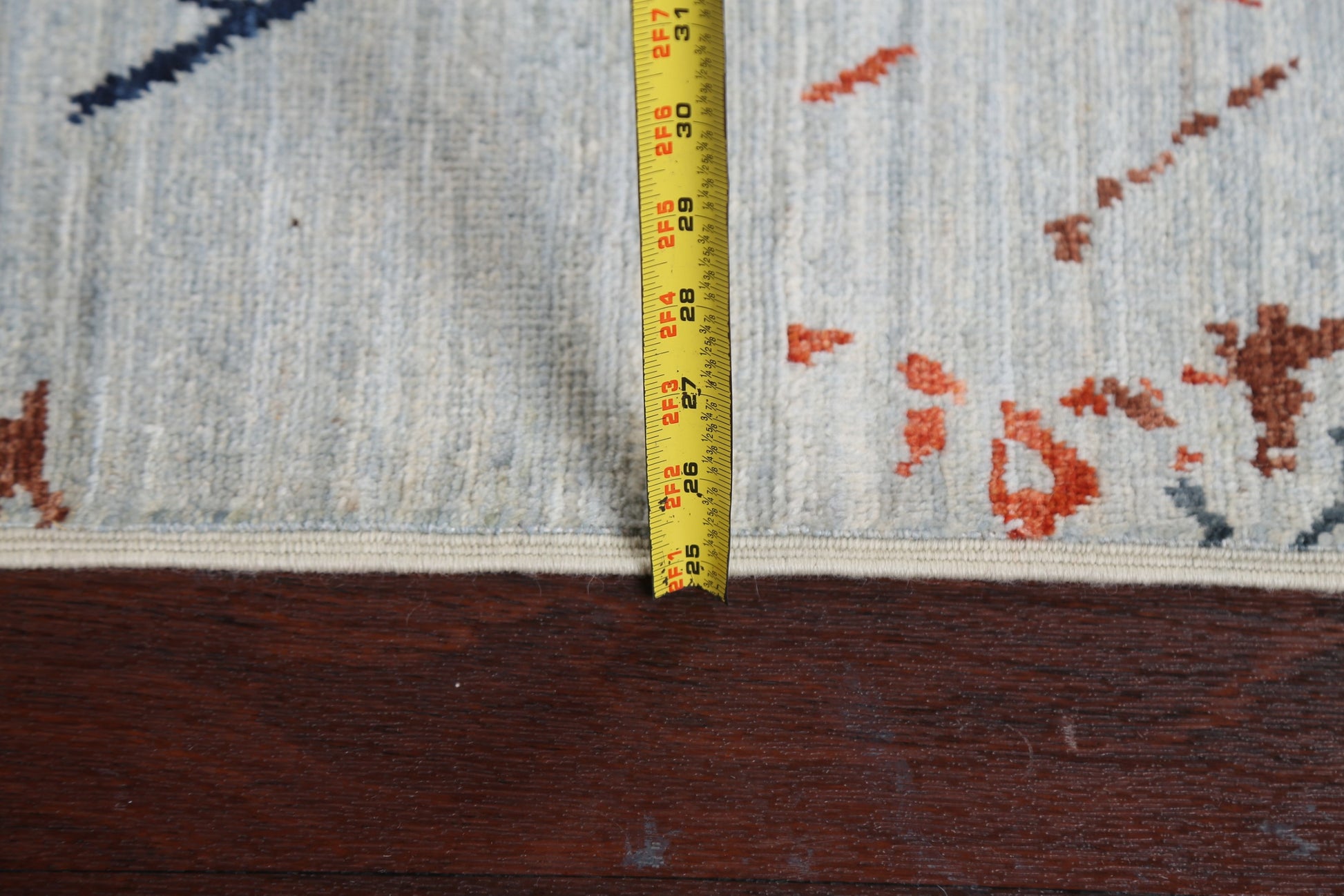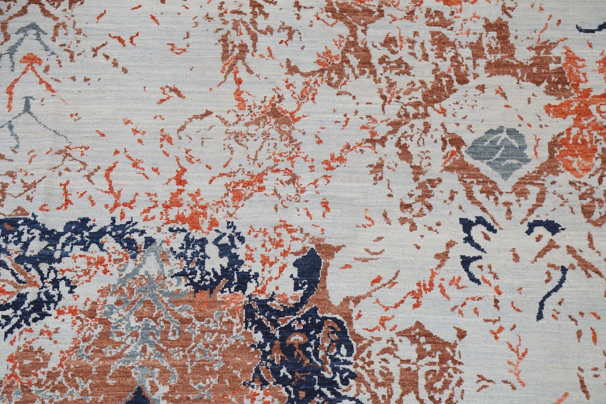 A Beautiful Genuine Pakistan Abstract rug is Hand Knotted by skillful weavers in Pakistan with Wool & Silk Material. This rug is in New, First Quality condition. dimensions are 9' 9'' X 6' 8'' in foot and 297 X 203 in centimeter. the primary color is Navy Blue & Blues.