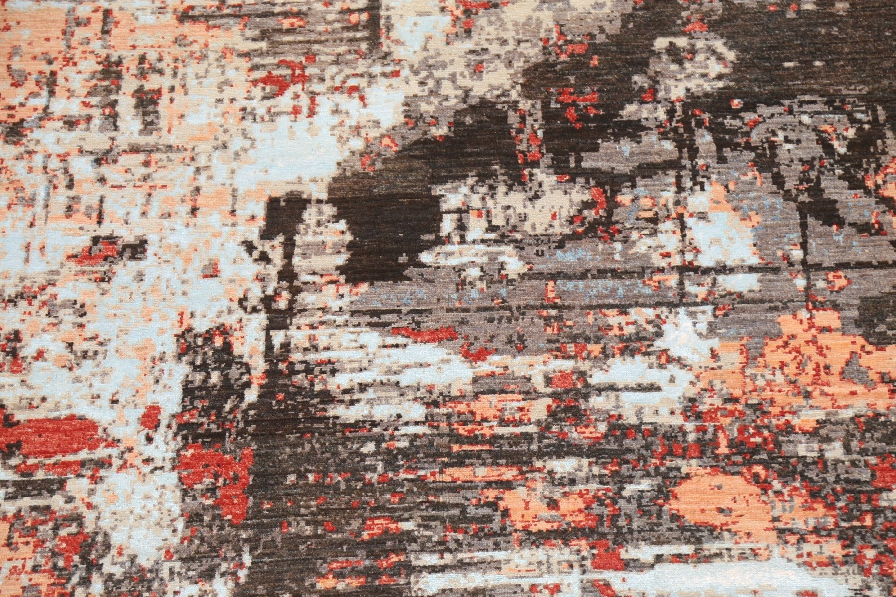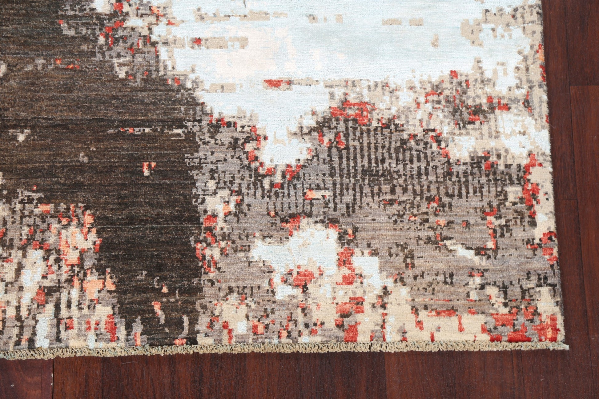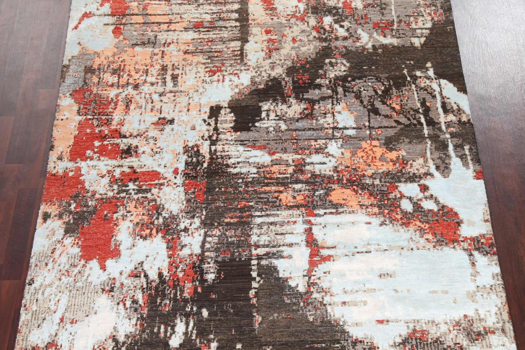 A Beautiful Genuine Pakistan Abstract rug is Hand Knotted by skillful weavers in Pakistan with Wool & Silk Material. This rug is in New, First Quality condition. dimensions are 9' 9'' X 6' 6'' in foot and  297 X 198 in centimeter. the primary color is Multi-Colored.