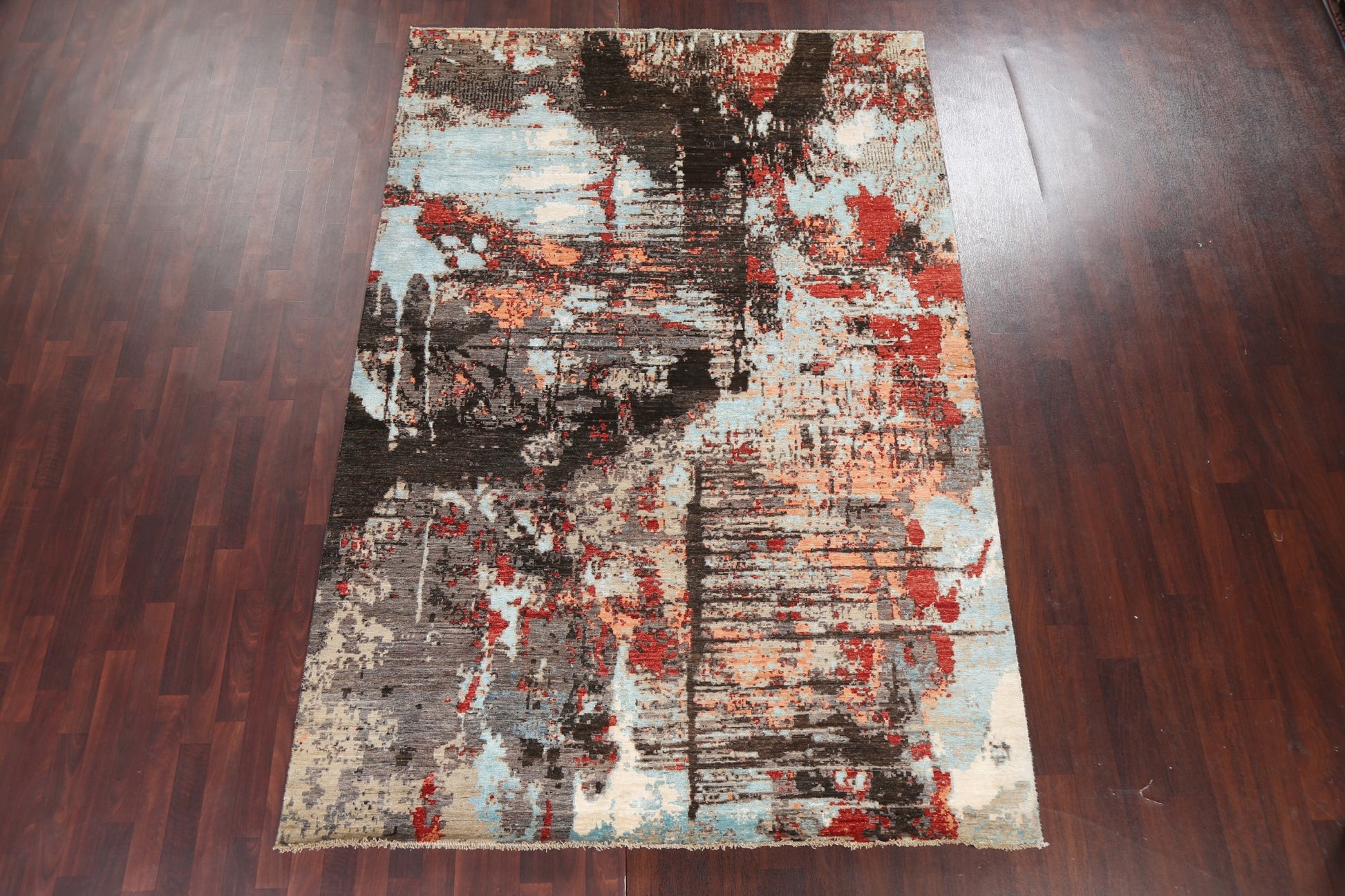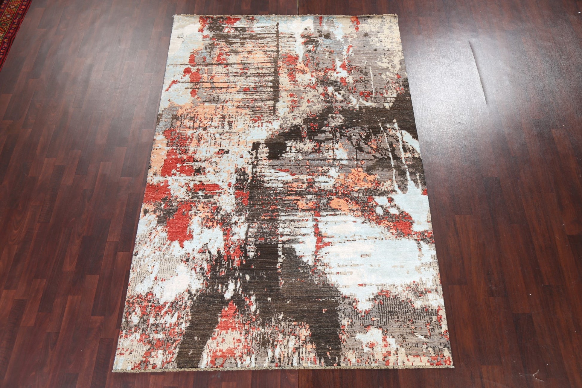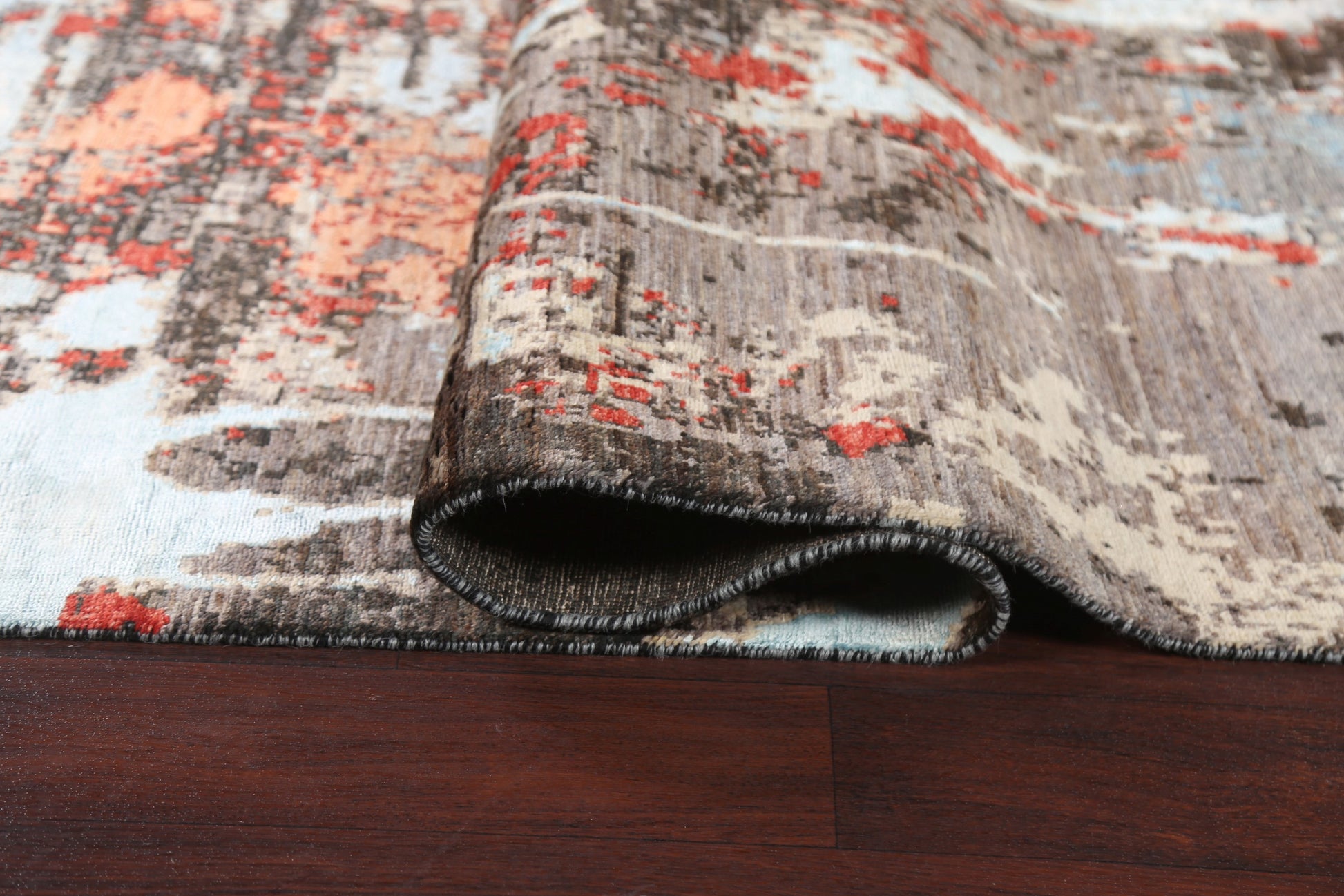 A Beautiful Genuine Pakistan Abstract rug is Hand Knotted by skillful weavers in Pakistan with Wool & Silk Material. This rug is in New, First Quality condition. dimensions are 9' 9'' X 6' 6'' in foot and  297 X 198 in centimeter. the primary color is Multi-Colored.