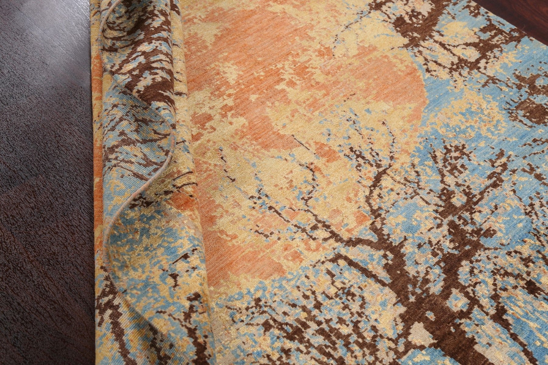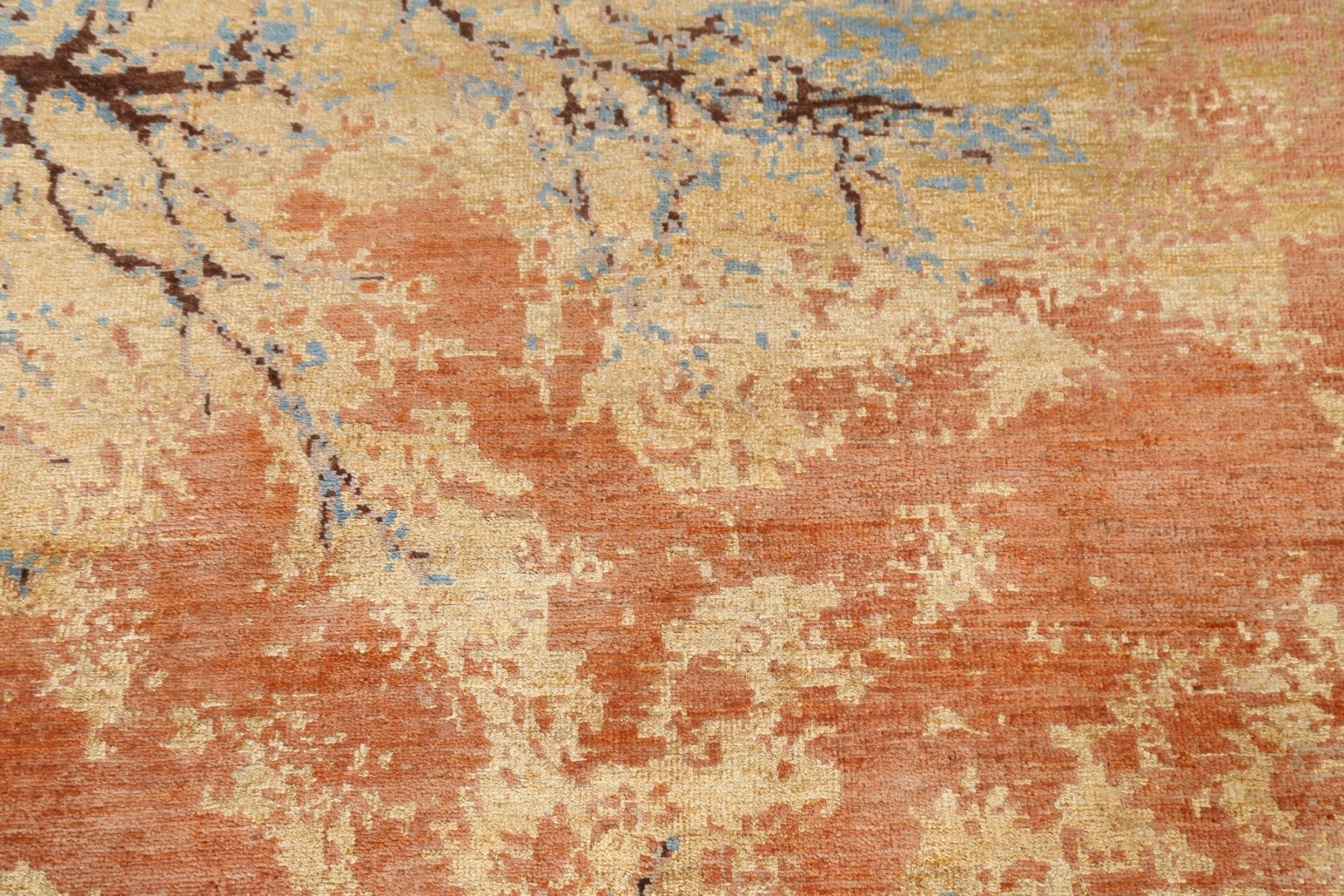 A Beautiful Genuine Pakistan Abstract rug is Hand Knotted by skillful weavers in Pakistan with Wool & Silk Material. This rug is in New, First Quality condition. dimensions are 7' 9'' X 5' 5'' in foot and  236 X 165 in centimeter. the primary color is Oranges & Rust.
