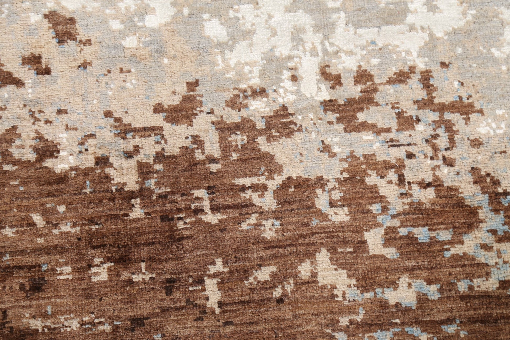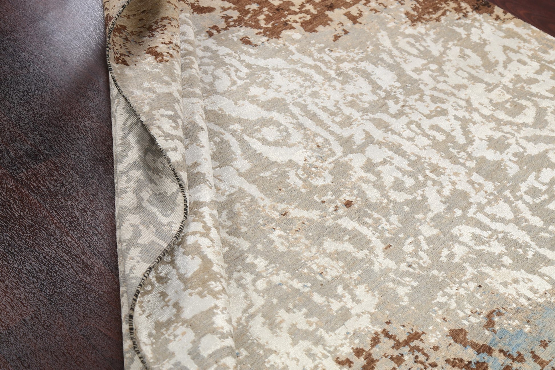 A Beautiful Genuine Pakistan Abstract rug is Hand Knotted by skillful weavers in Pakistan with Wool & Silk Material. This rug is in New, First Quality condition. dimensions are 9' 8'' X 6' 3'' in foot and  295 X 191 in centimeter. the primary color is Multi-Colored.