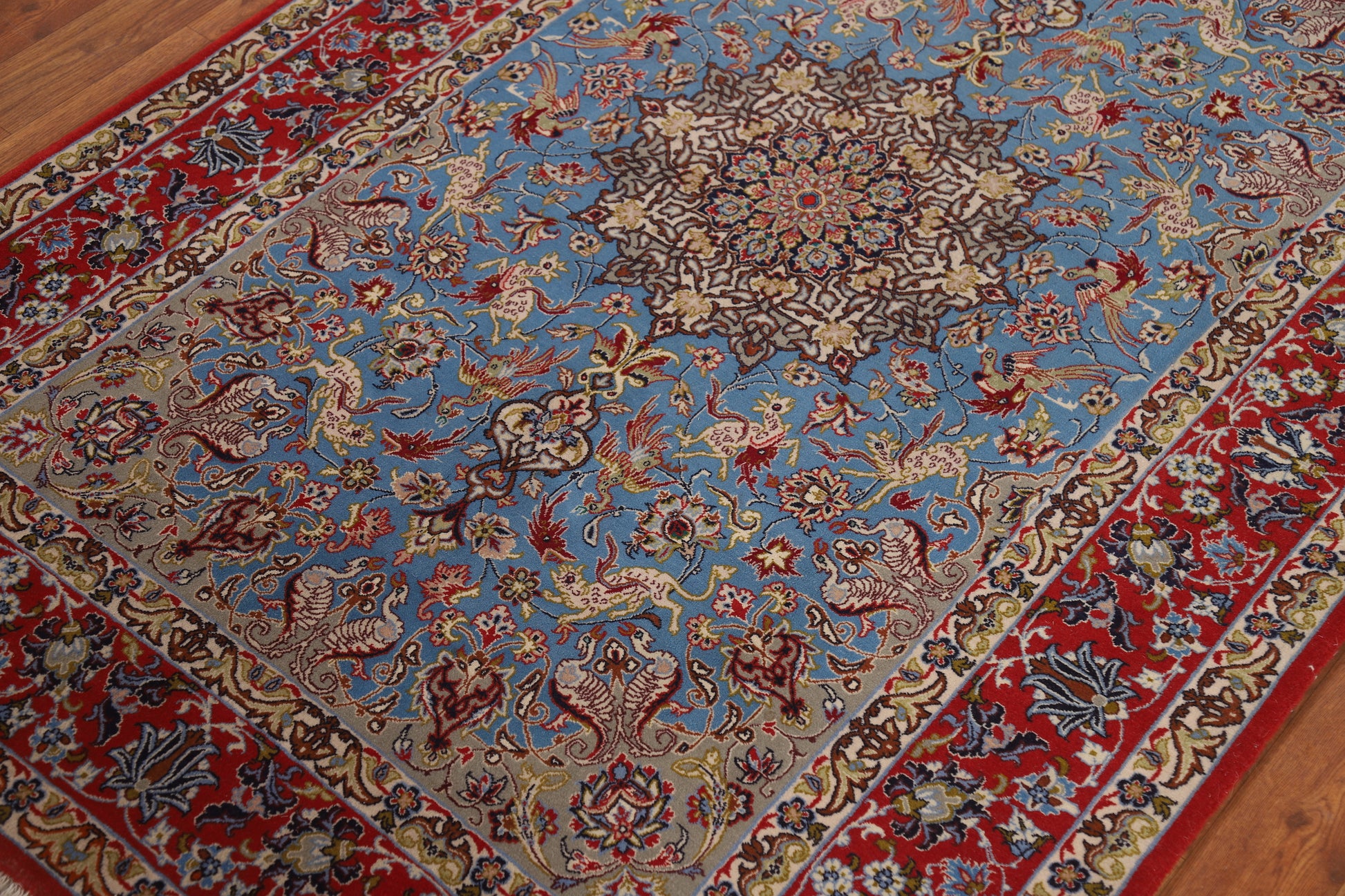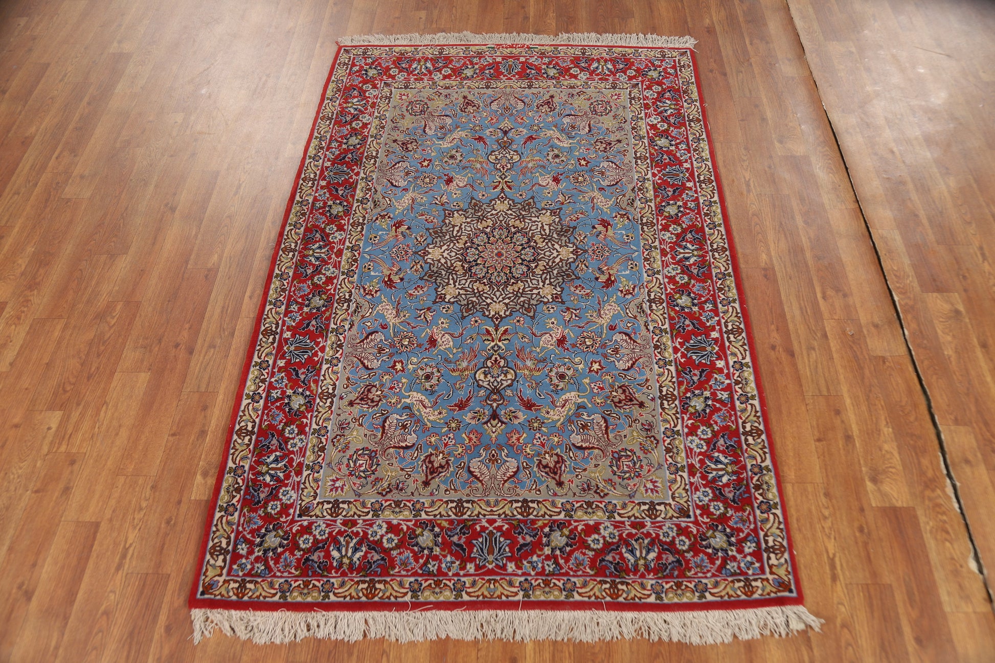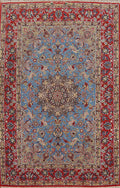 Vegetable Dye Wool & Silk Blue Signed Isfahan Persian Rug 4x6