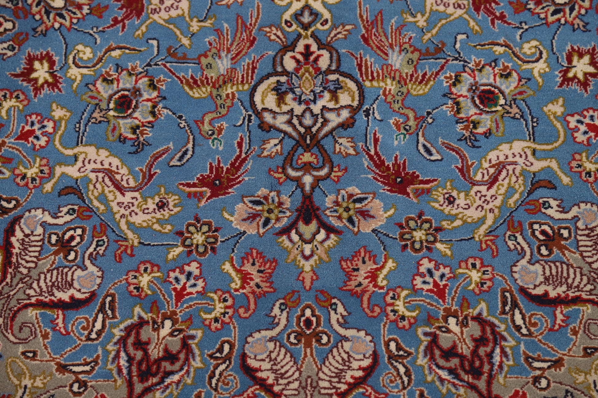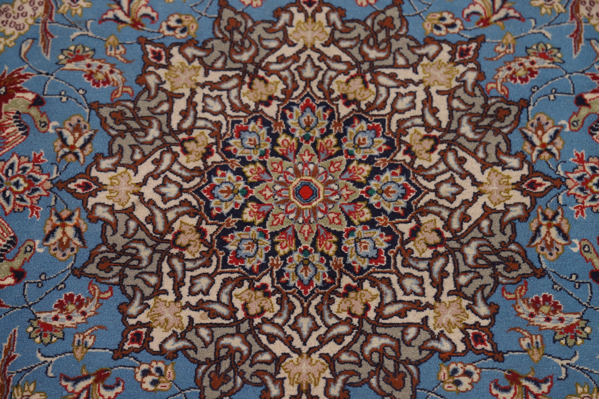 A Beautiful Genuine Persia ( Persia ) Isfahan( Signed ) rug is Hand Knotted by skillful weavers in Persia ( Persia ) with 100% Wool Material. This rug is in Excellent condition. dimensions are 5' 7'' X 3' 8'' in foot and 170 X 112 in centimeter. the primary color is Navy Blue & Blues.