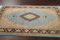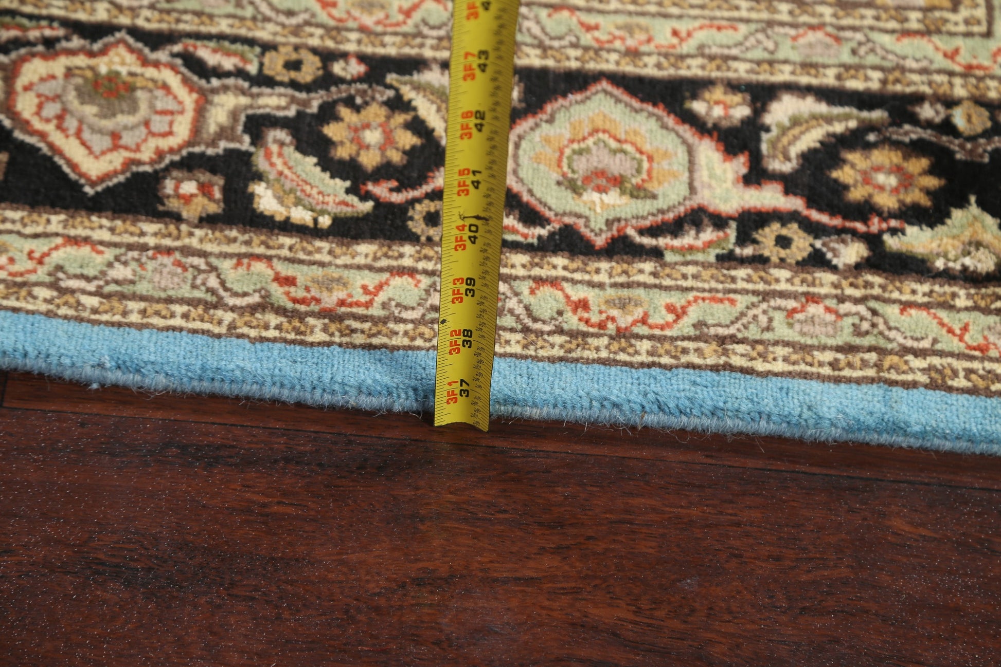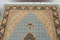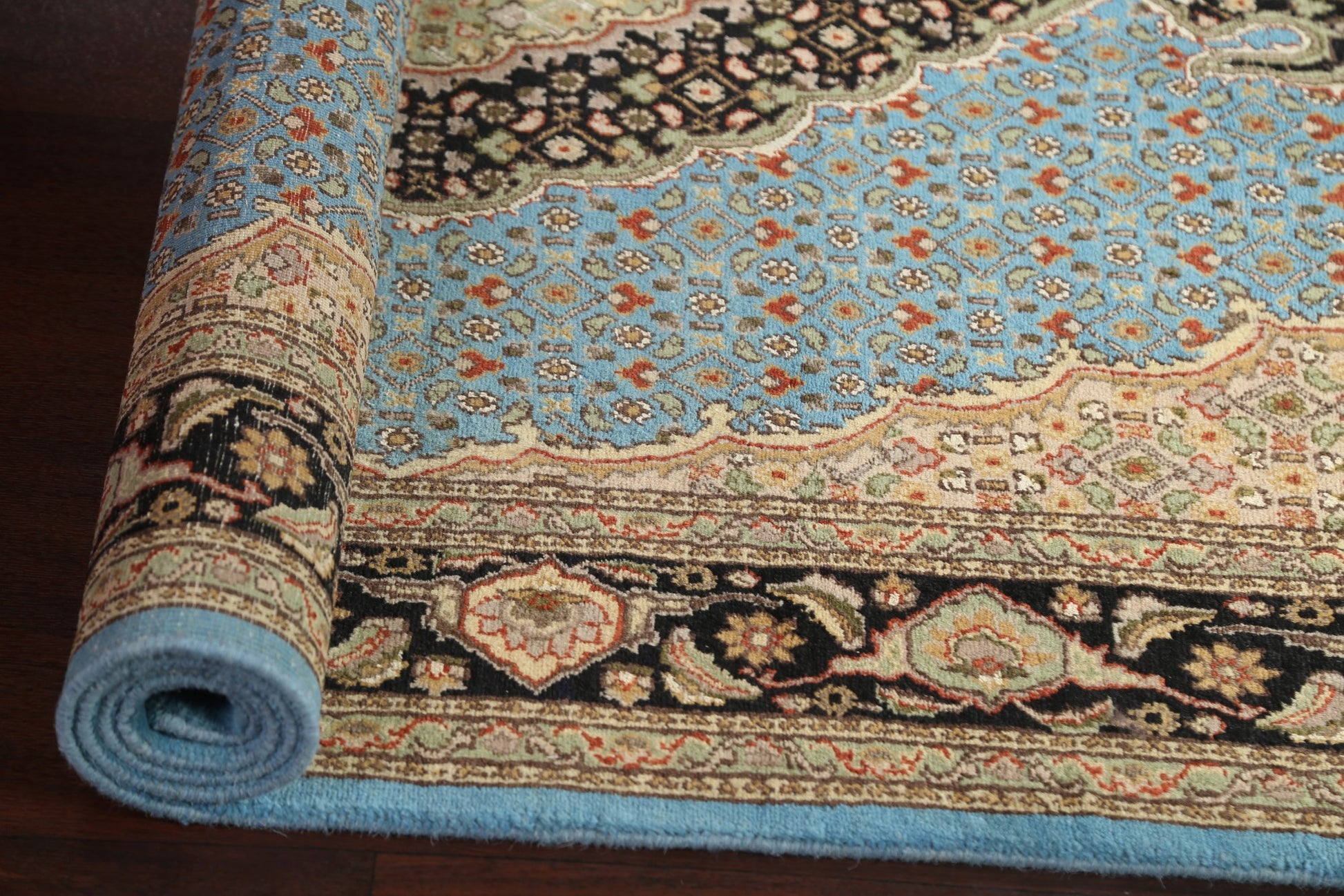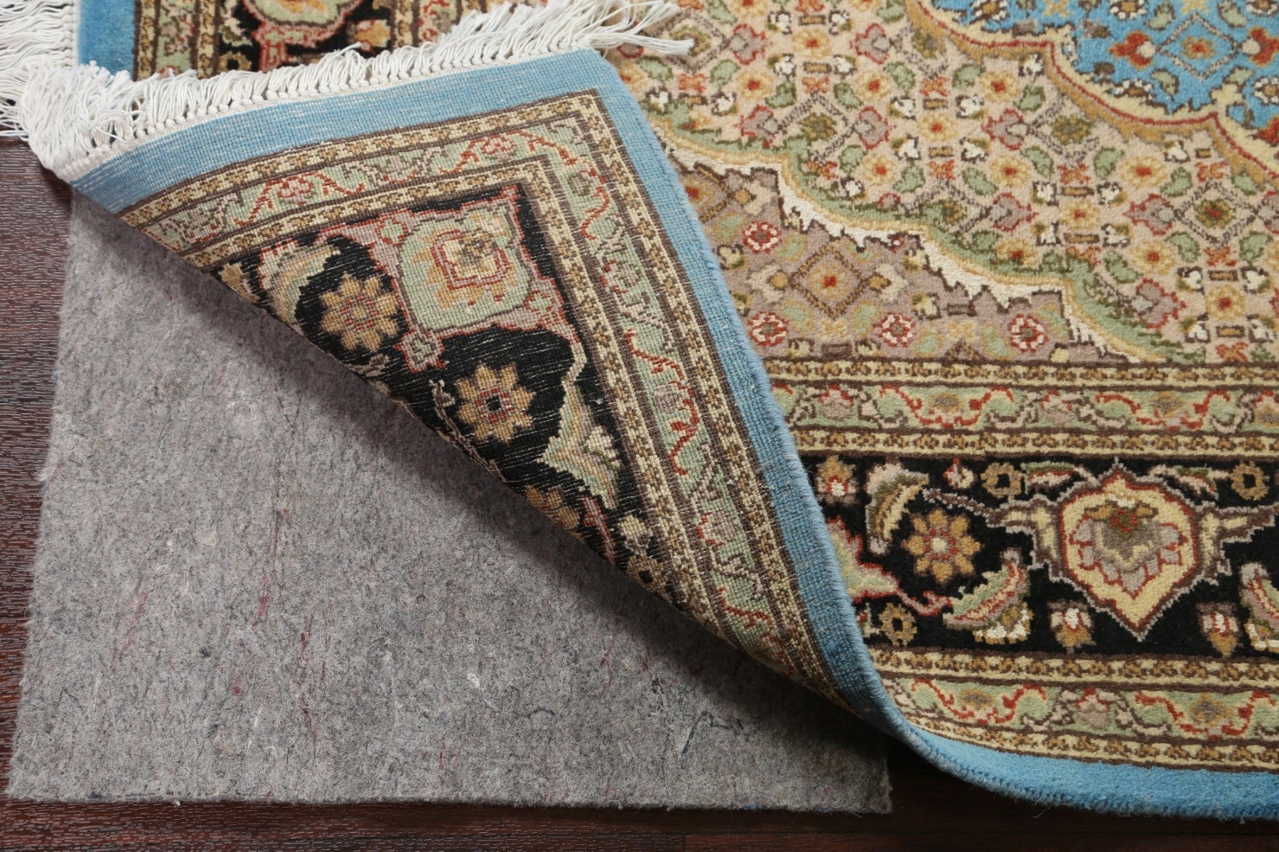 A Beautiful Genuine Pakistan Tabriz-Mahi rug is Hand Knotted by skillful weavers in Pakistan with Wool & Silk Material. This rug is in New, First Quality condition. dimensions are 7' 4'' X 4' 5'' in foot and 224 X 135 in centimeter. the primary color is Navy Blue & Blues.