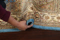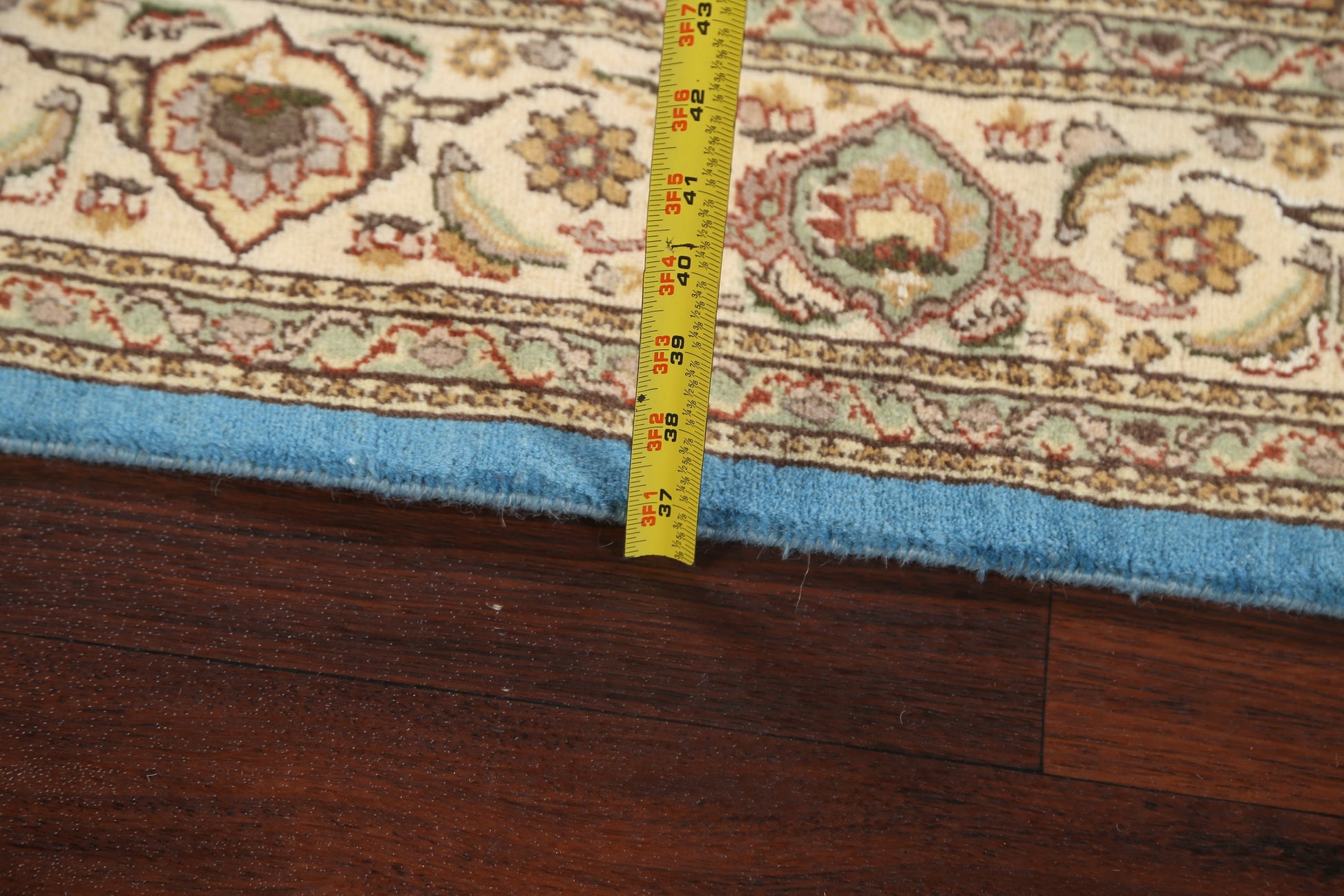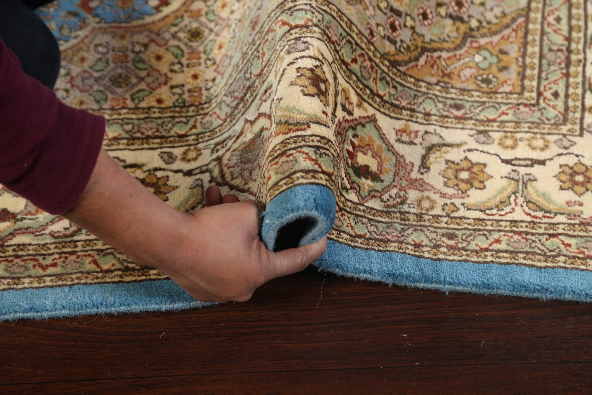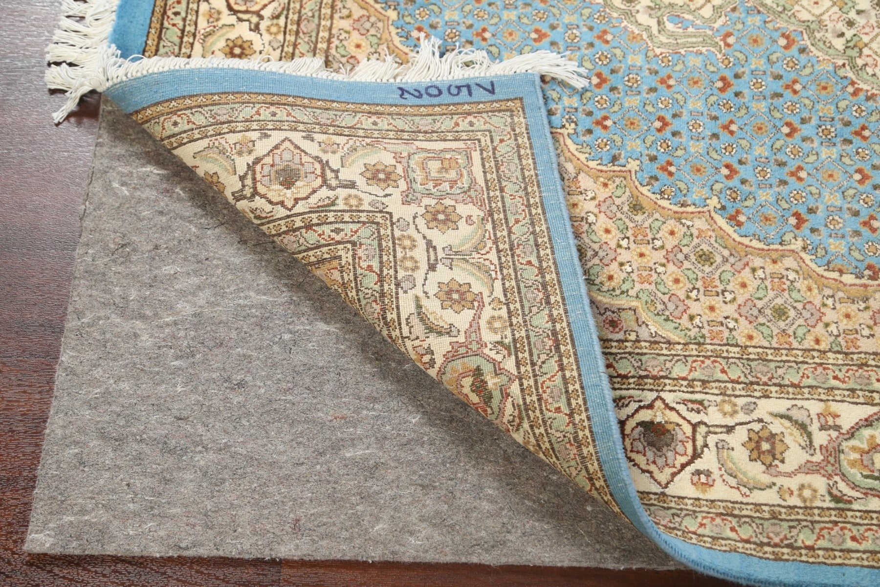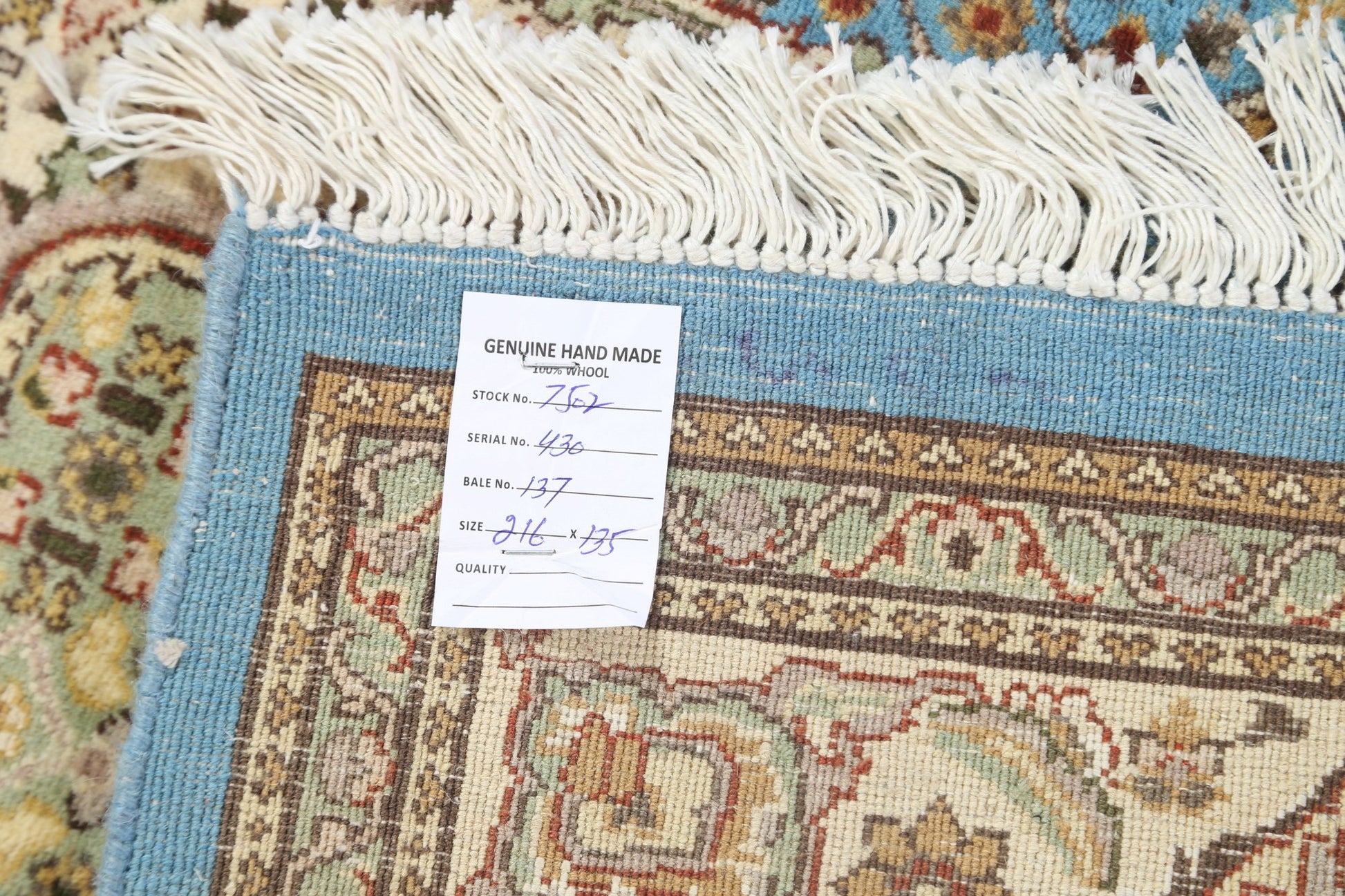 A Beautiful Genuine Pakistan Tabriz rug is Hand Knotted by skillful weavers in Pakistan with Wool & Silk Material. This rug is in New, First Quality condition. dimensions are 7' 1'' X 4' 5'' in foot and 216 X 135 in centimeter. the primary color is Navy Blue & Blues.