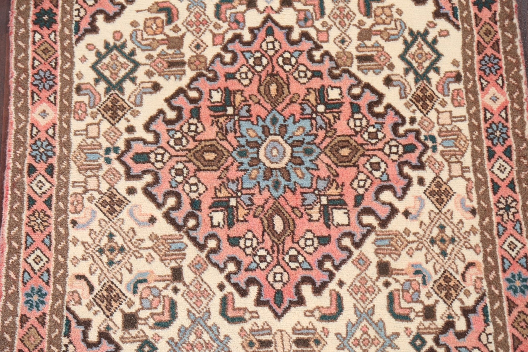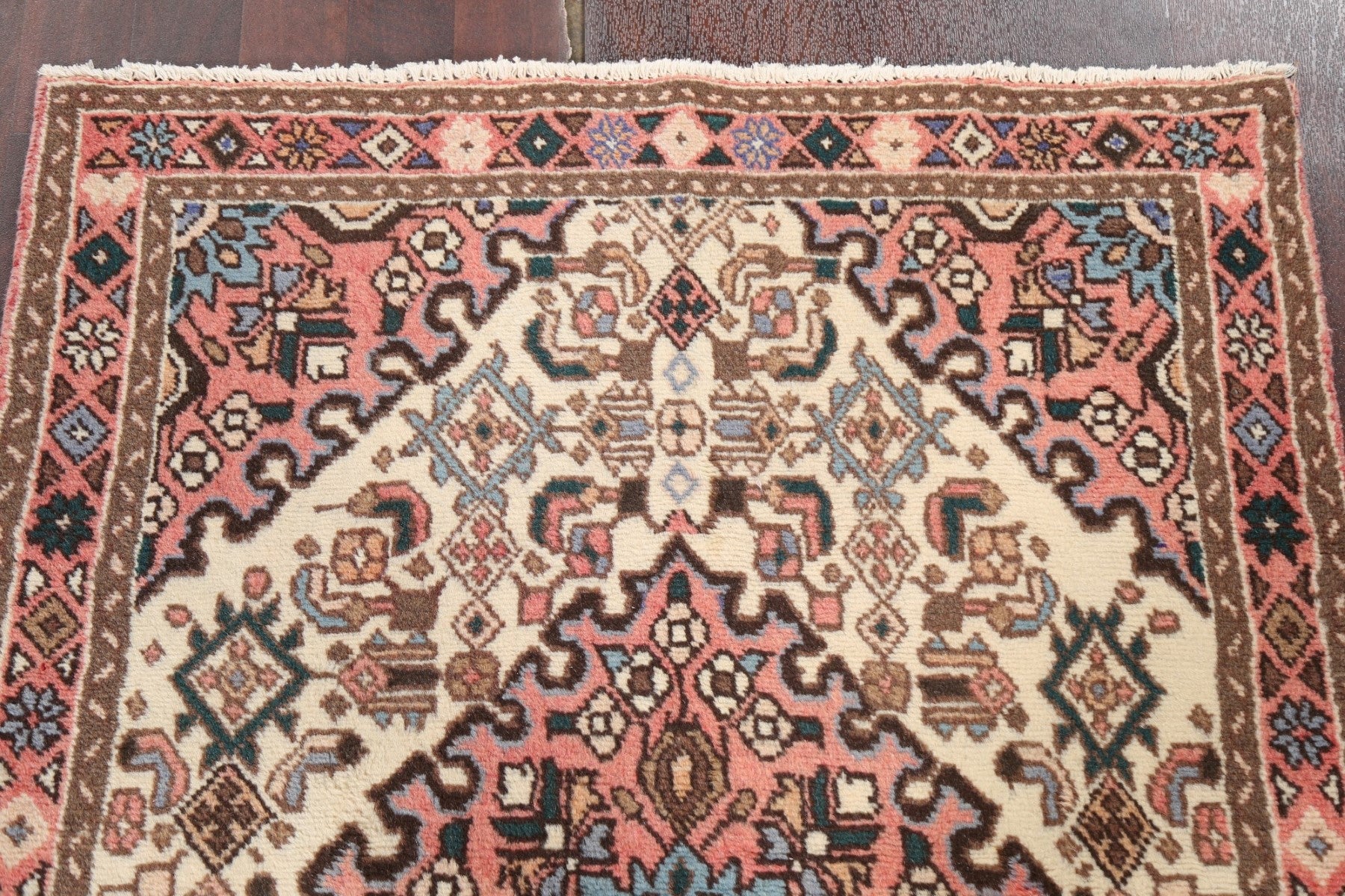 A Beautiful Genuine Persia ( Persia ) Sirjan rug is Hand Knotted by skillful weavers in Persia ( Persia ) with 100% Wool Material. This rug is in Very Good condition. dimensions are 4' 9'' X 3' 2'' in foot and 145 X 97 in centimeter. the primary color is Beige & Ivories.