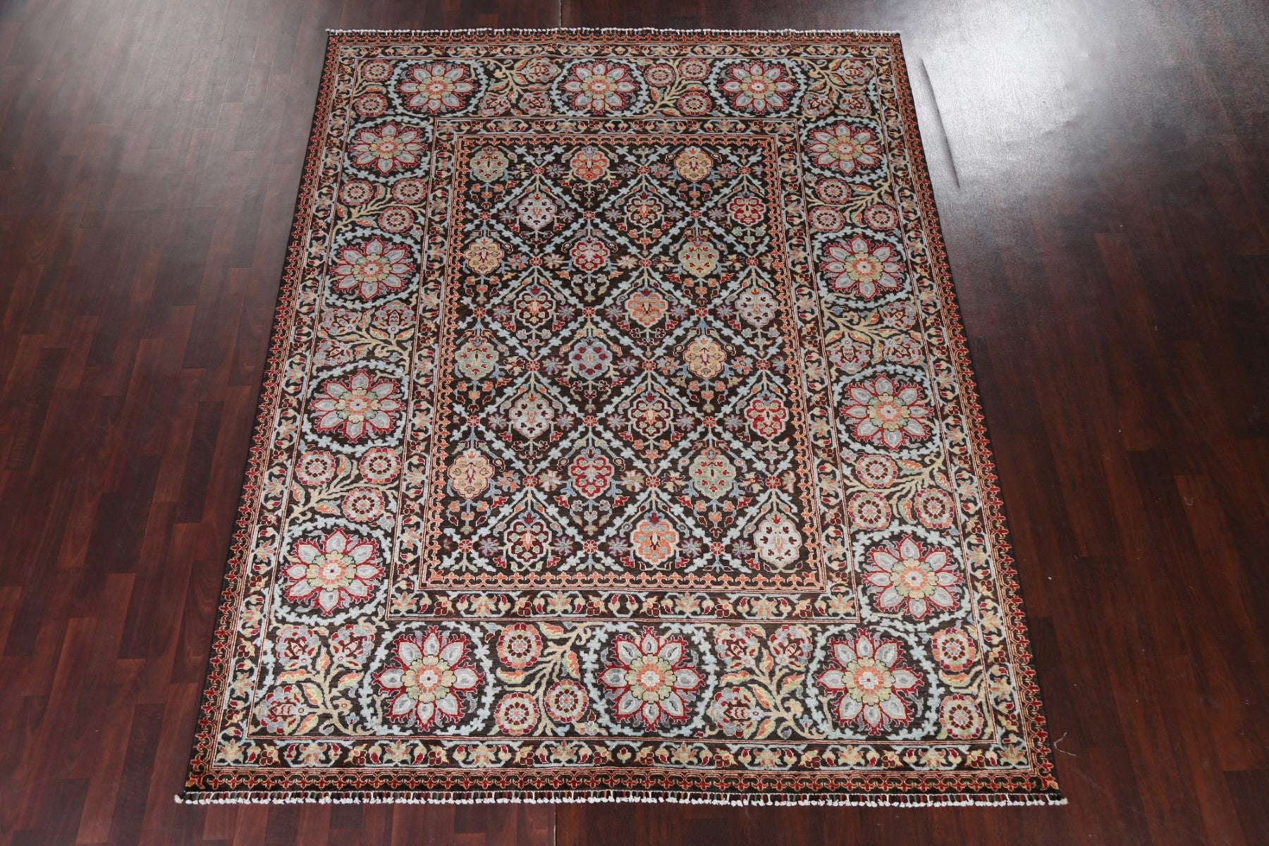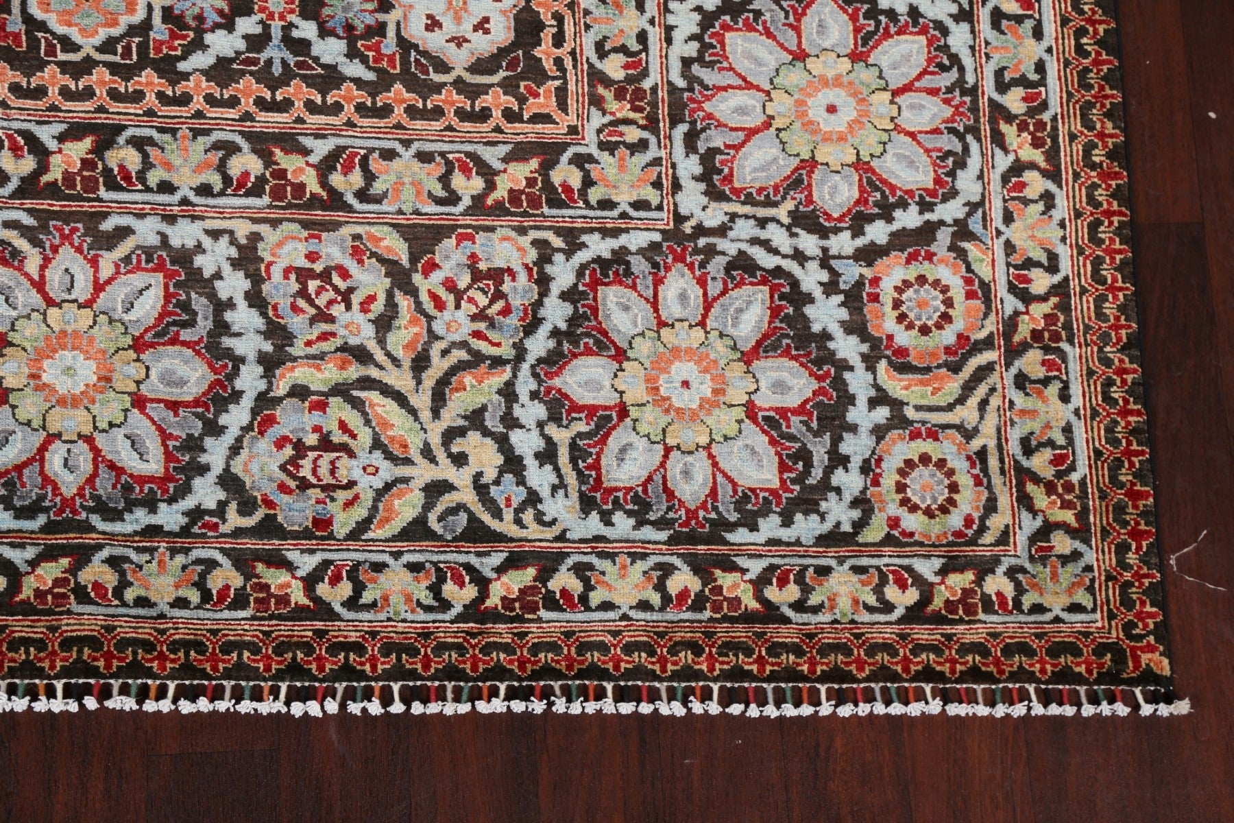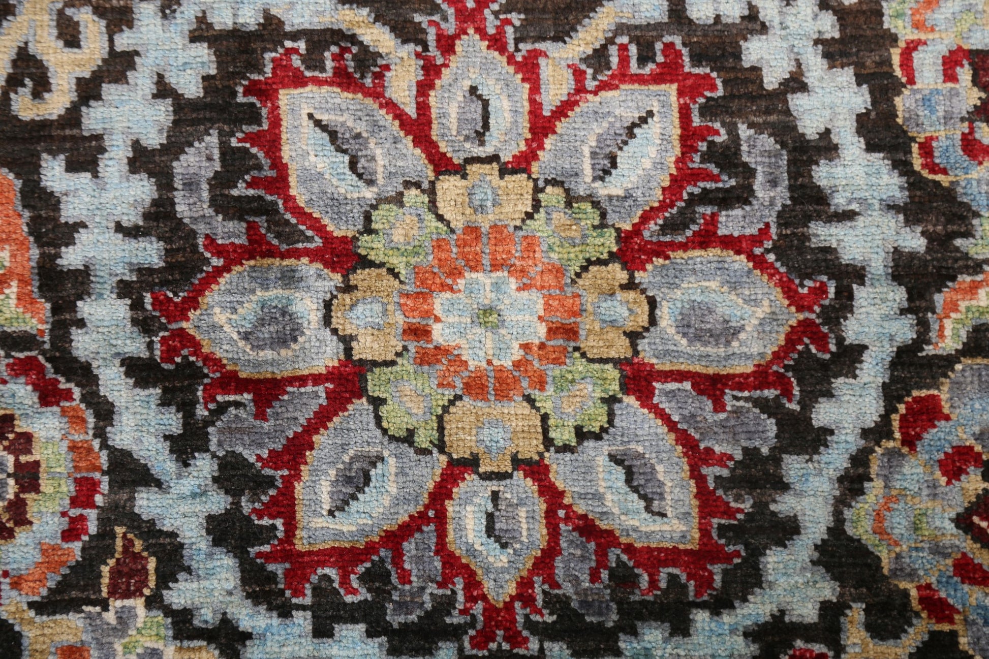 A Beautiful Genuine Pakistan Ziegler rug is Hand Knotted by skillful weavers in Pakistan with 100% Wool Material. This rug is in New, First Quality condition. dimensions are 9' 10'' X 7' 9'' in foot and 300 X 236 in centimeter. the primary color is Black.