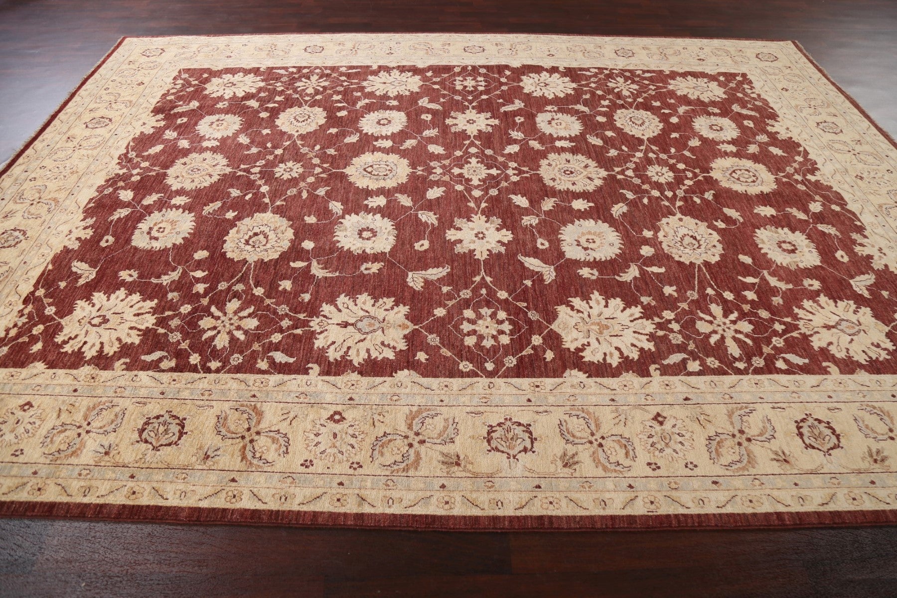 A Beautiful Genuine Pakistan Ziegler rug is Hand Knotted by skillful weavers in Pakistan with 100% Wool Material. This rug is in New, First Quality condition. dimensions are 11' 9'' X 8' 9'' in foot and 358 X 267 in centimeter. the primary color is Red.