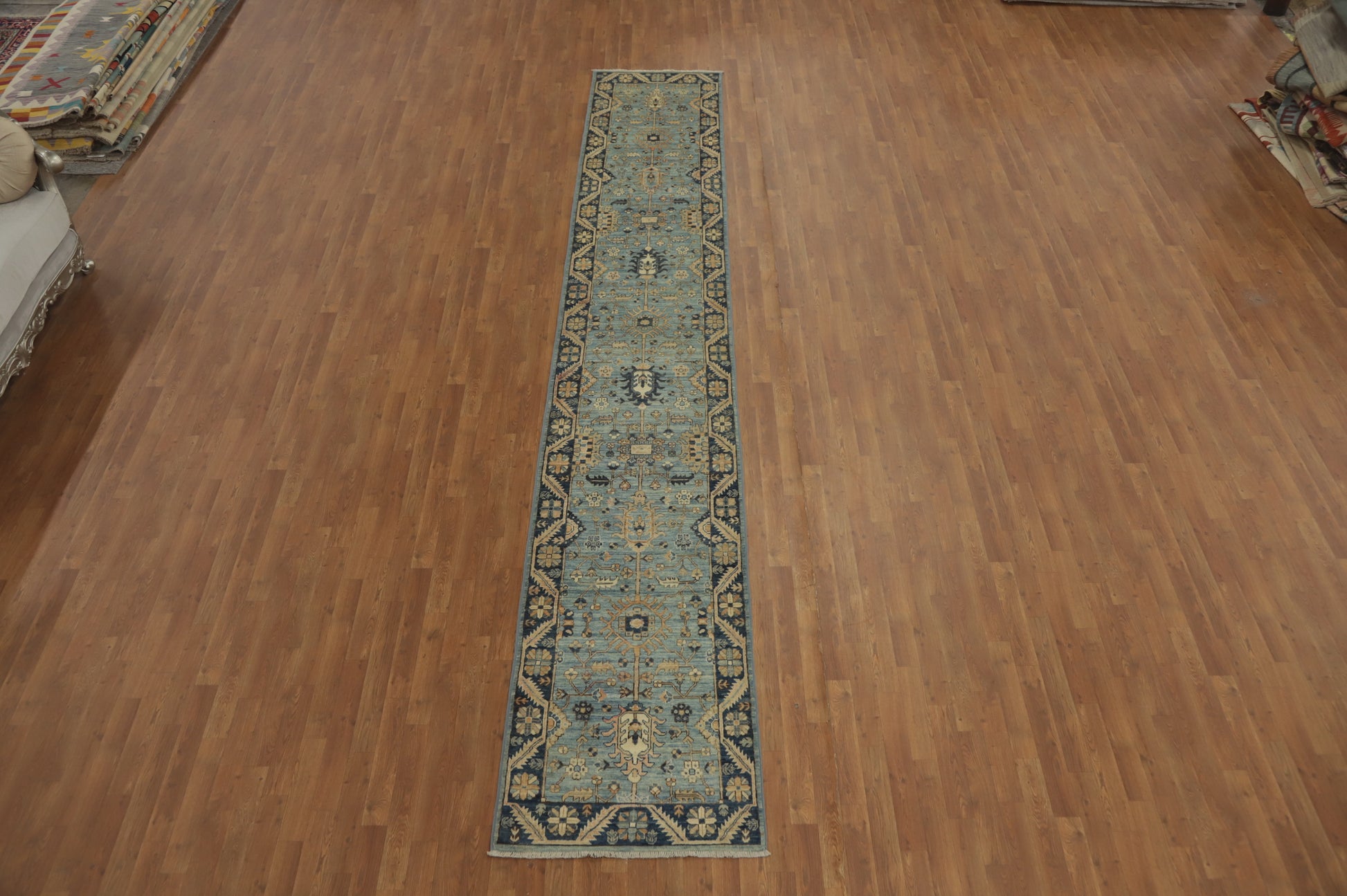 A Beautiful Genuine Pakistan Ziegler rug is Hand Knotted by skillful weavers in Pakistan with 100% Wool Material. This rug is in New, First Quality condition. dimensions are 16' 1'' X 2' 8'' in foot and 490 X 81 in centimeter. the primary color is Navy Blue & Blues.