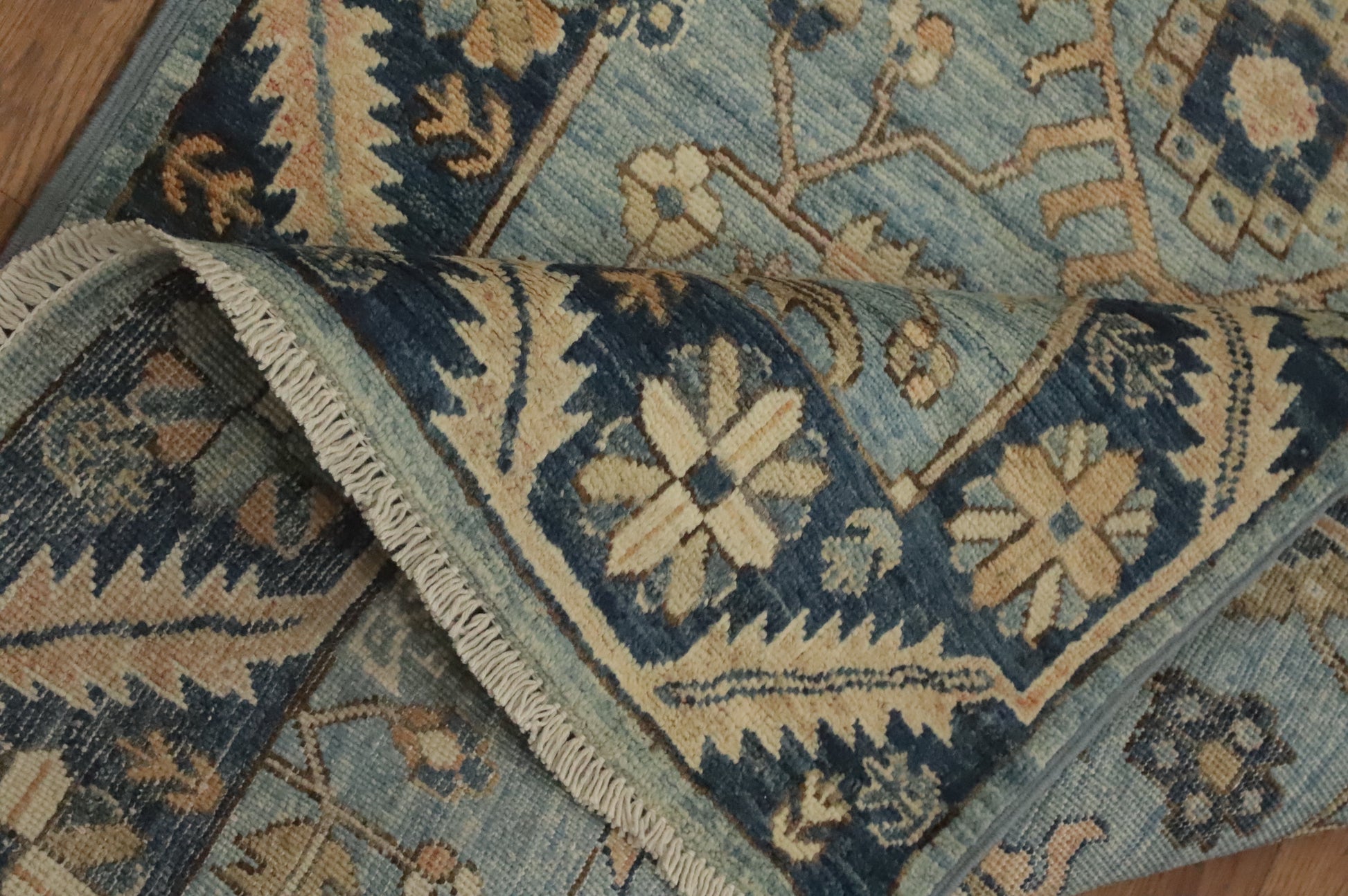 Vegetable Dye Ziegler Elegant Blue Floral Rug 3x16