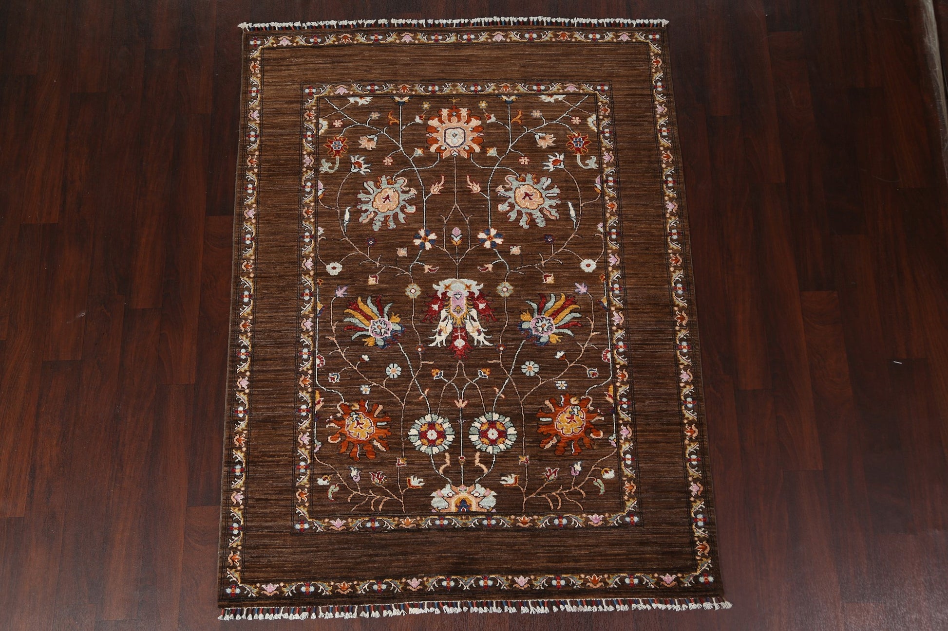 A Beautiful Genuine Pakistan Ziegler rug is Hand Knotted by skillful weavers in Pakistan with 100% Wool Material. This rug is in New, First Quality condition. dimensions are 6' 9'' X 5' 1'' in foot and 206 X 155 in centimeter. the primary color is Brown.