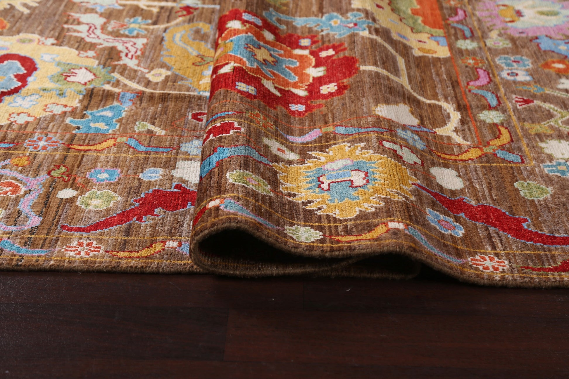 A Beautiful Genuine Pakistan Ziegler rug is Hand Knotted by skillful weavers in Pakistan with 100% Wool Material. This rug is in New, First Quality condition. dimensions are 9' 9'' X 8' 0'' in foot and 297 X 244 in centimeter. the primary color is Brown.