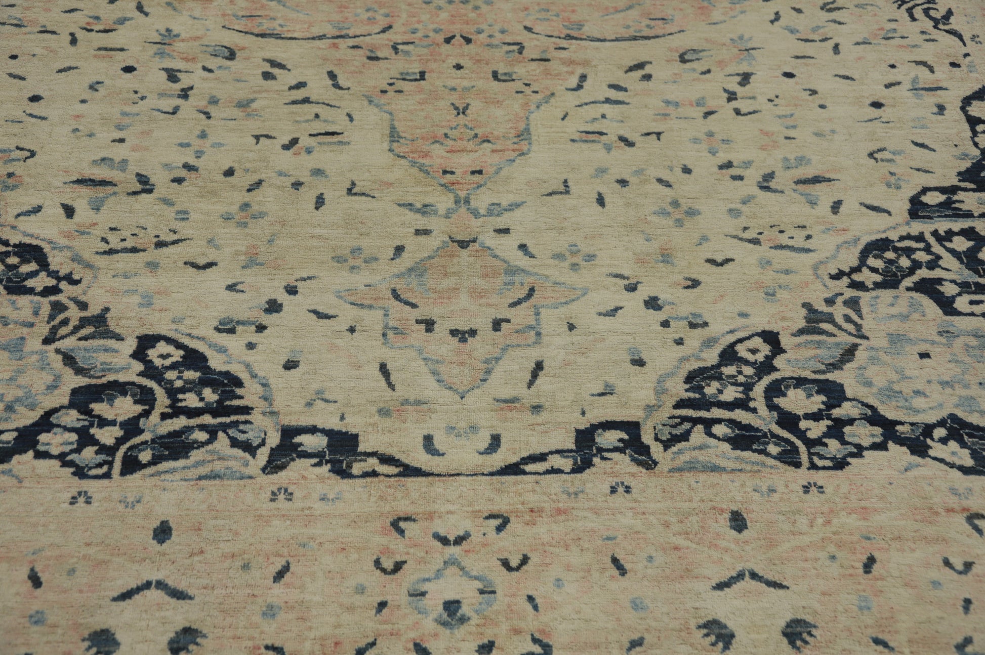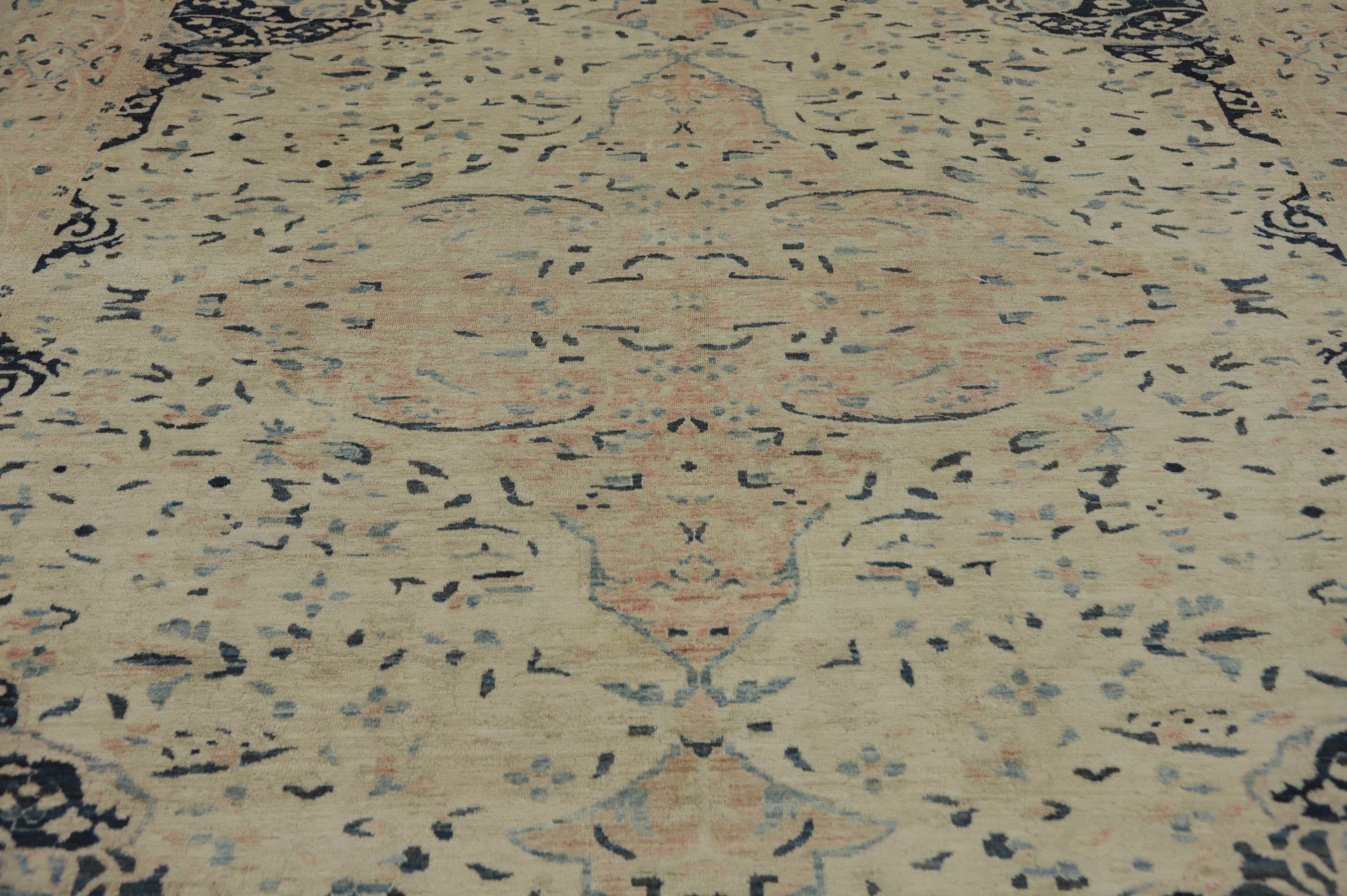 A Beautiful Genuine Pakistan Ziegler rug is Hand Knotted by skillful weavers in Pakistan with 100% Wool Material. This rug is in New, First Quality condition. dimensions are 9' 3'' X 8' 3'' in foot and 282 X 251 in centimeter. the primary color is Beige & Ivories.