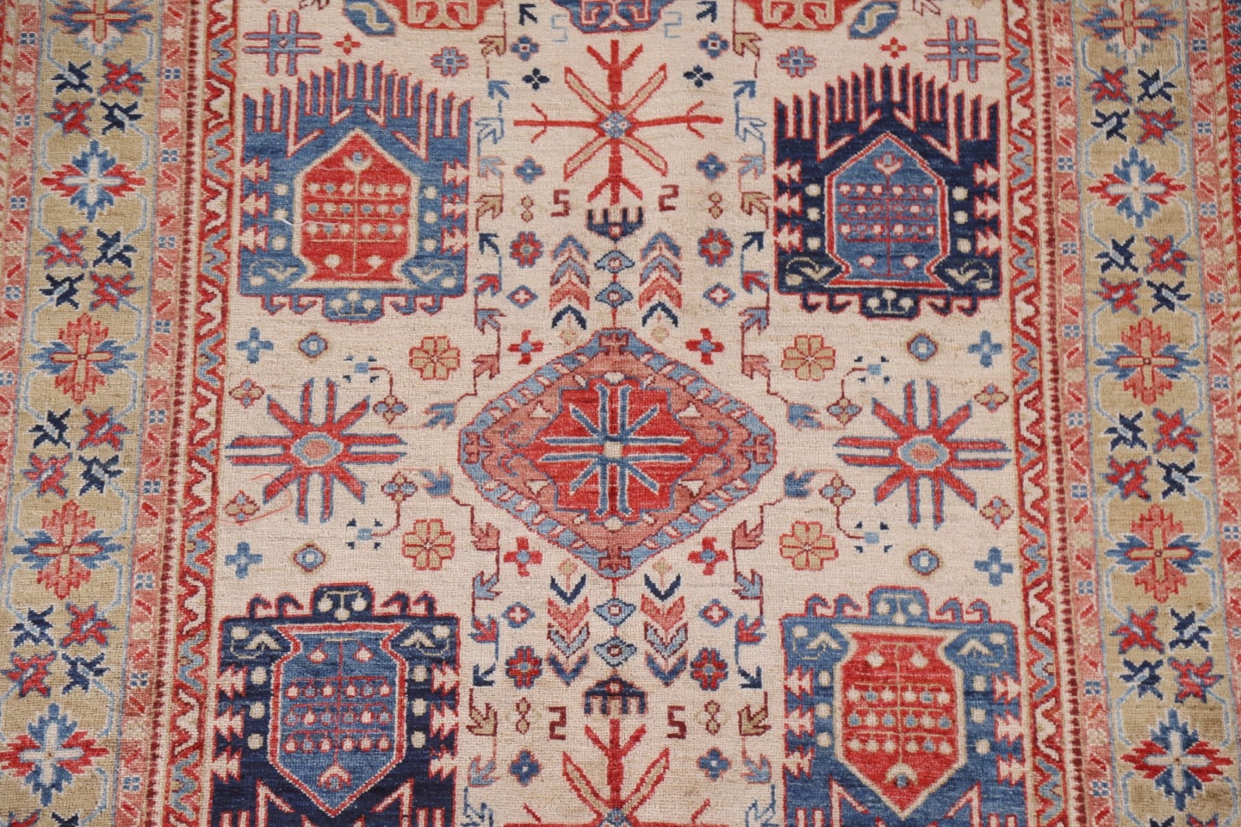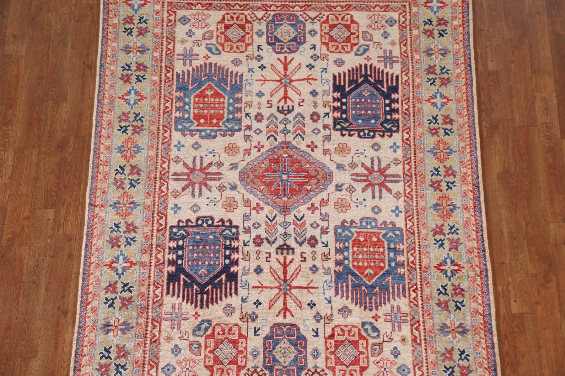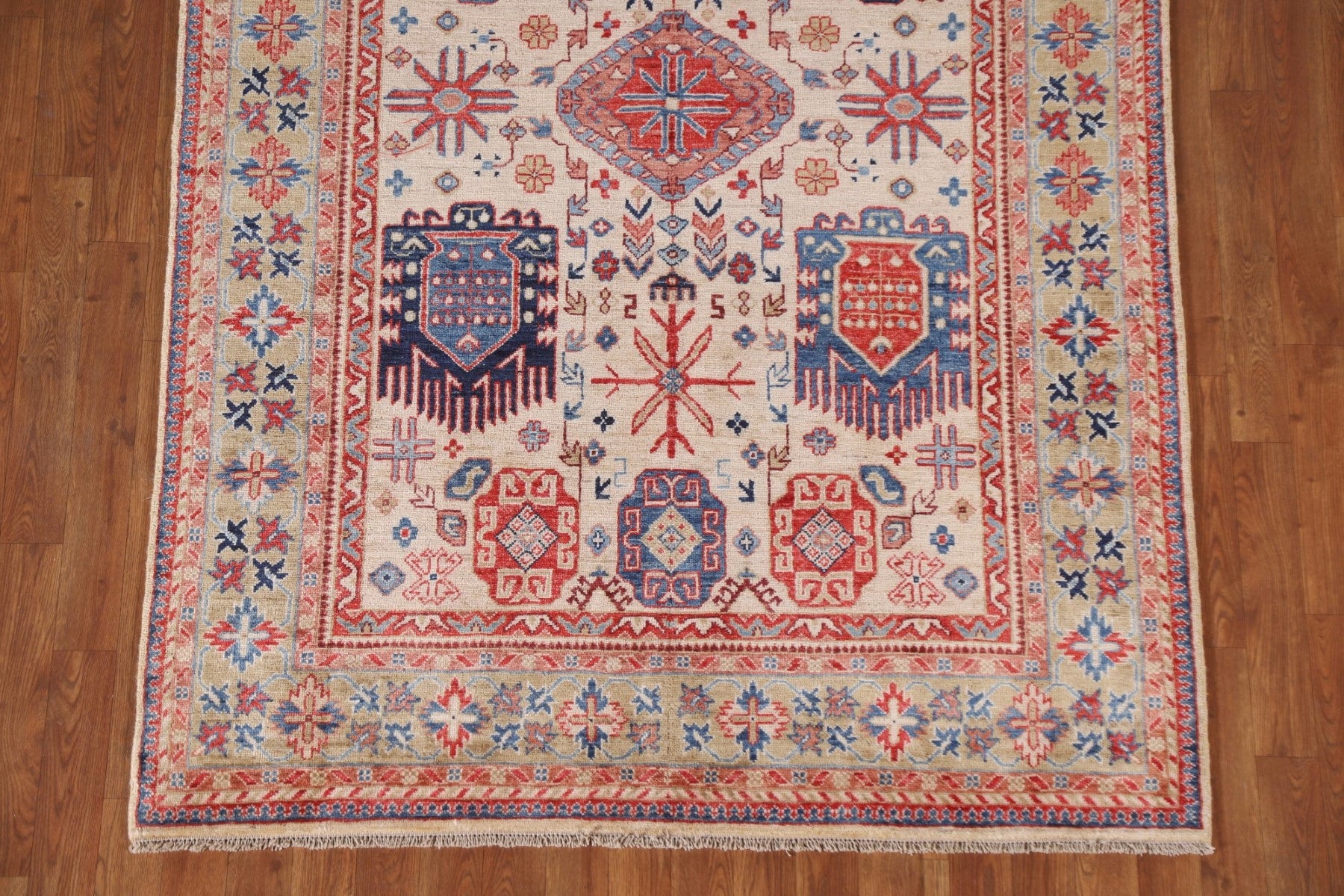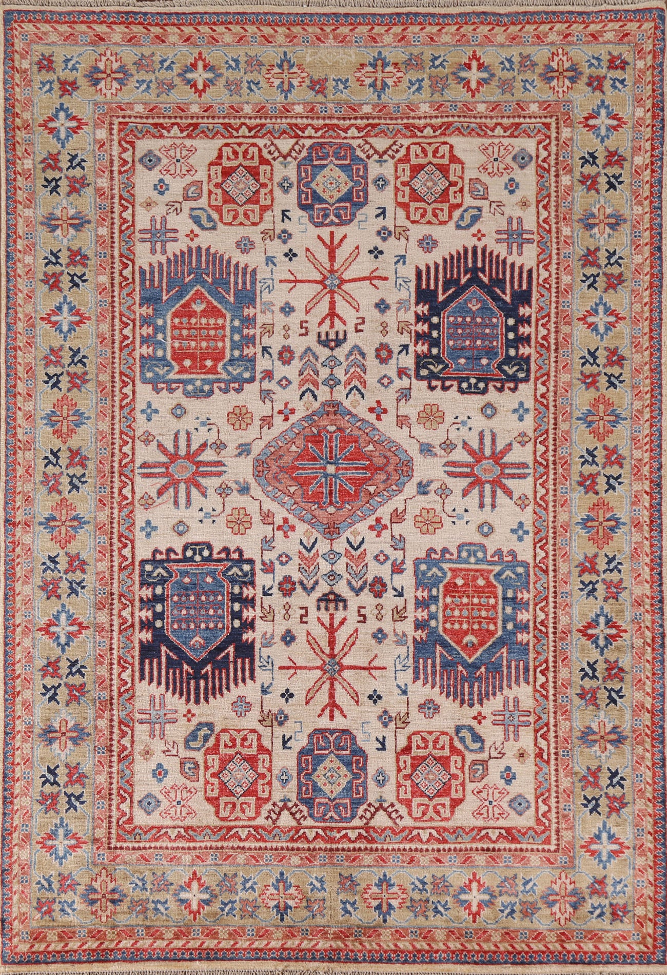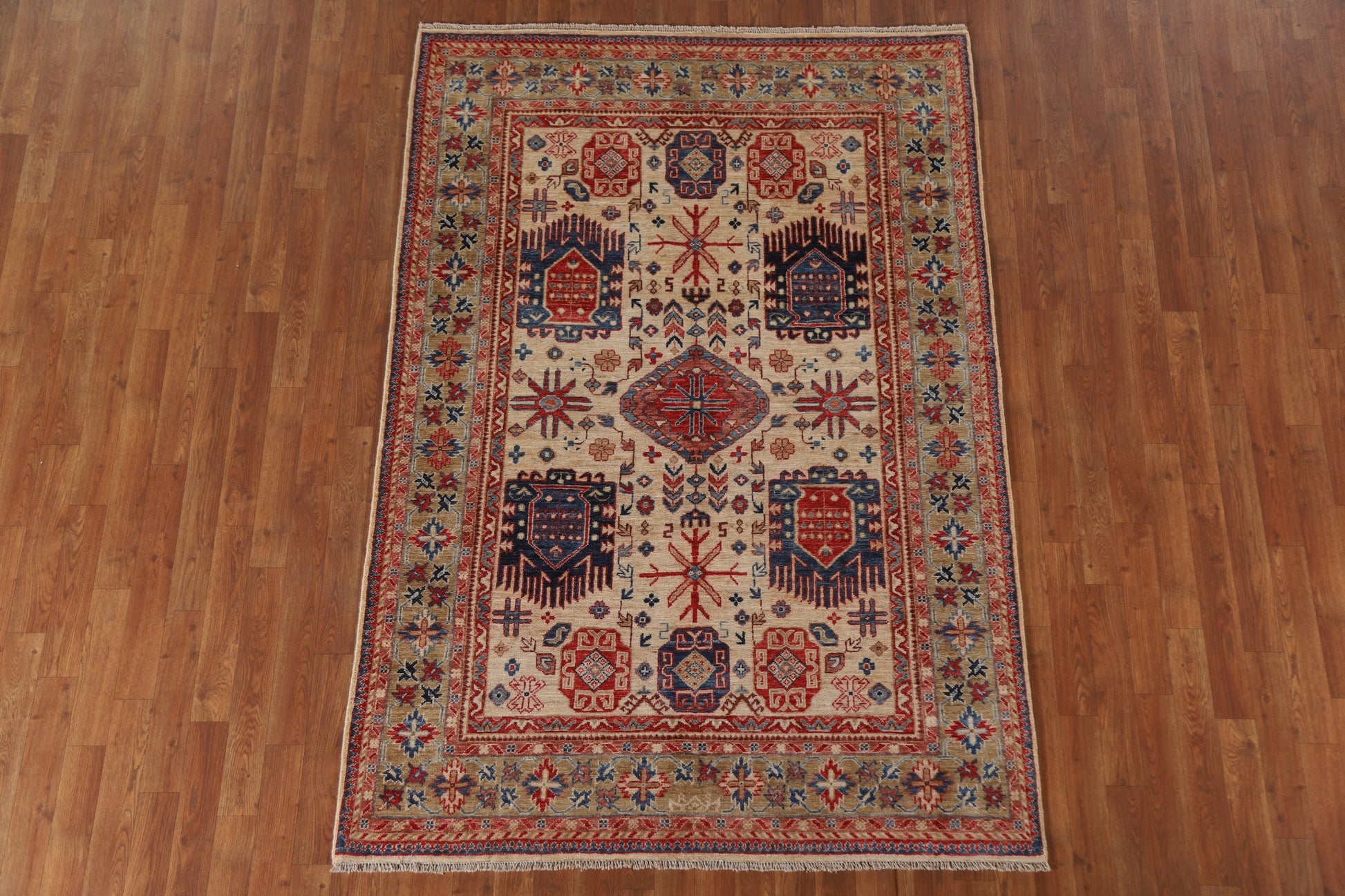 A Beautiful Genuine Pakistan Ziegler rug is Hand Knotted by skillful weavers in Pakistan with 100% Wool Material. This rug is in New, First Quality condition. dimensions are 7' 0'' X 4' 9'' in foot and 213 X 145 in centimeter. the primary color is Beige & Ivories.