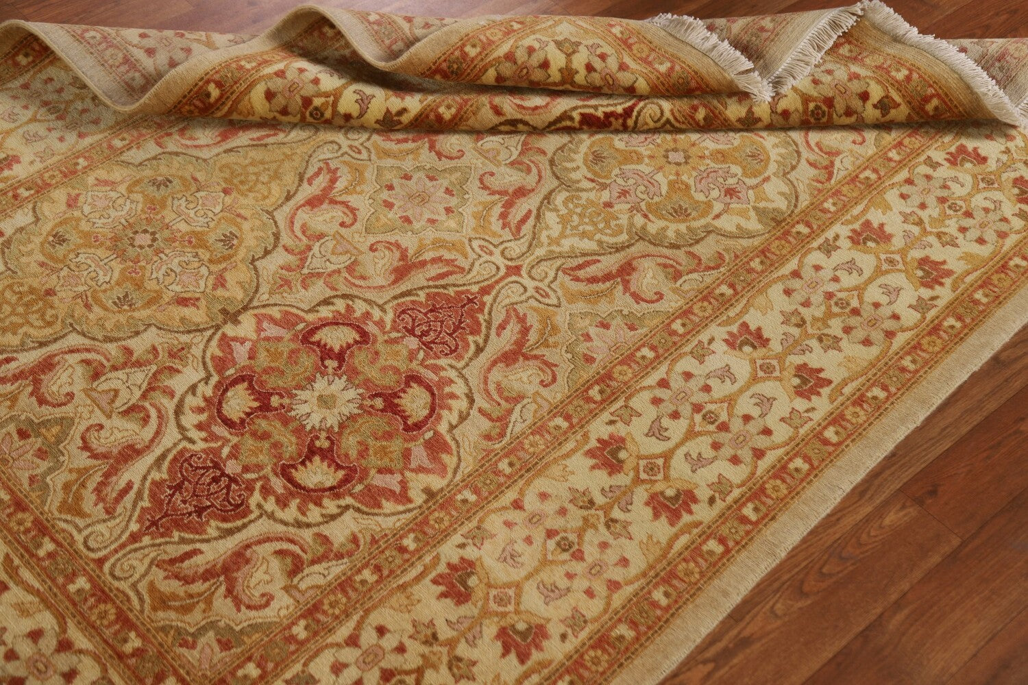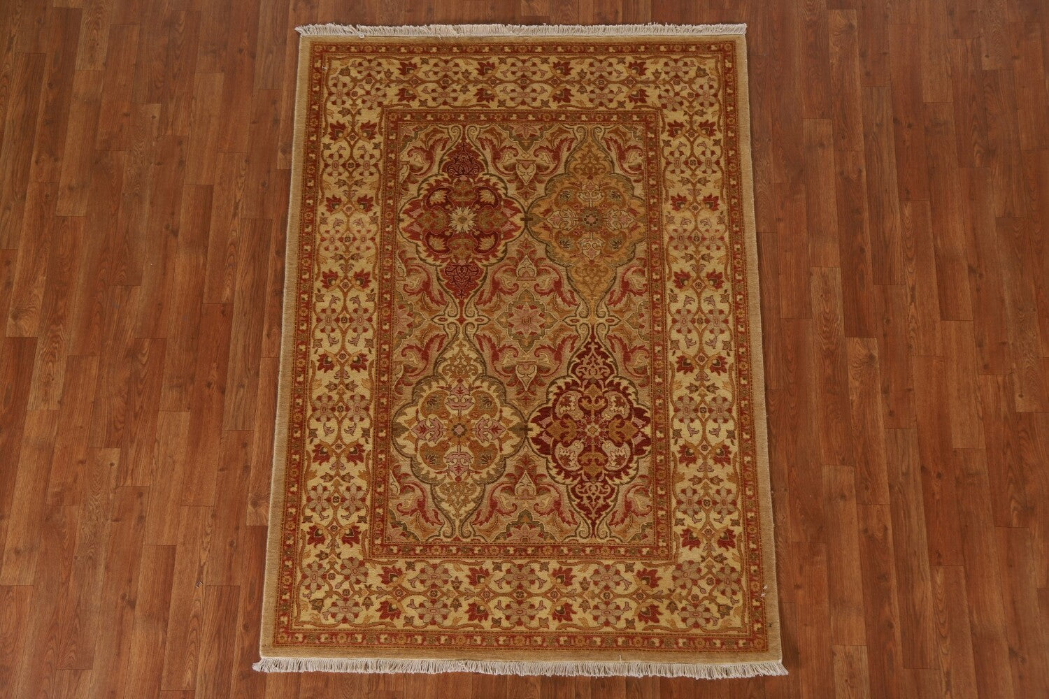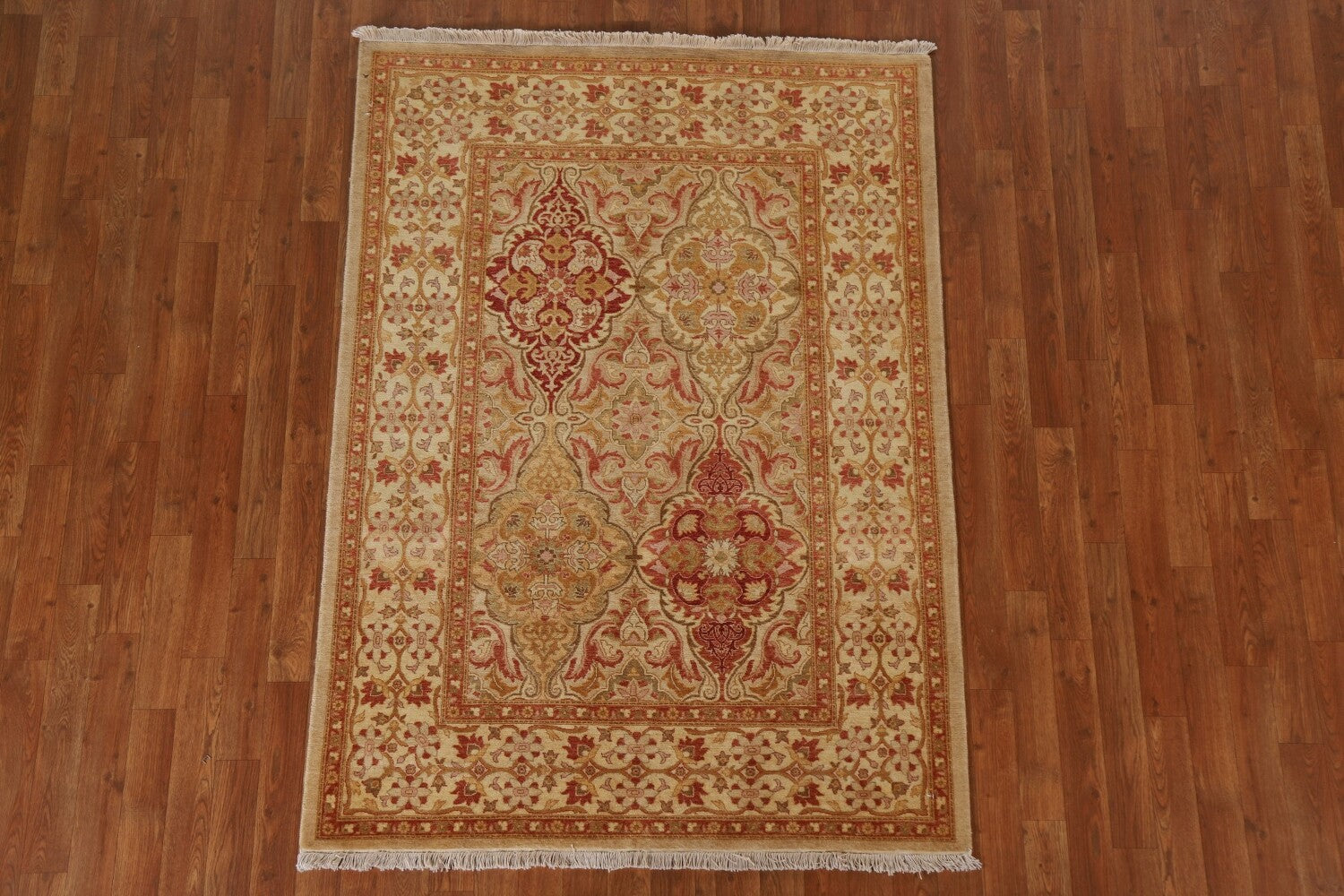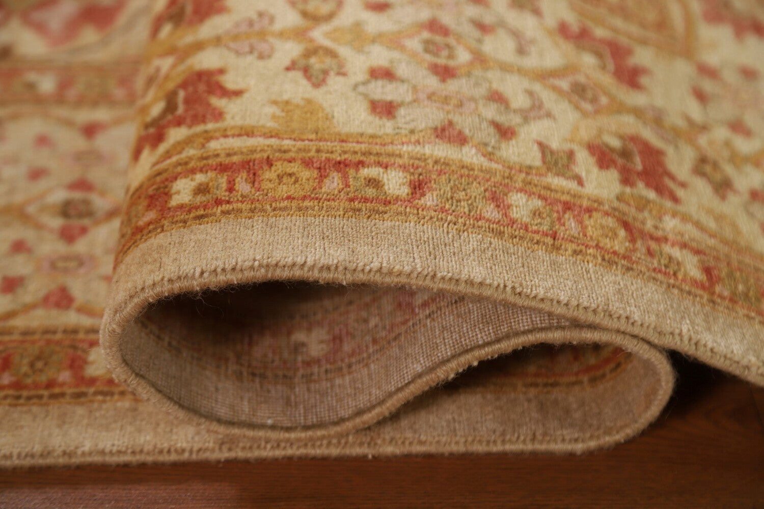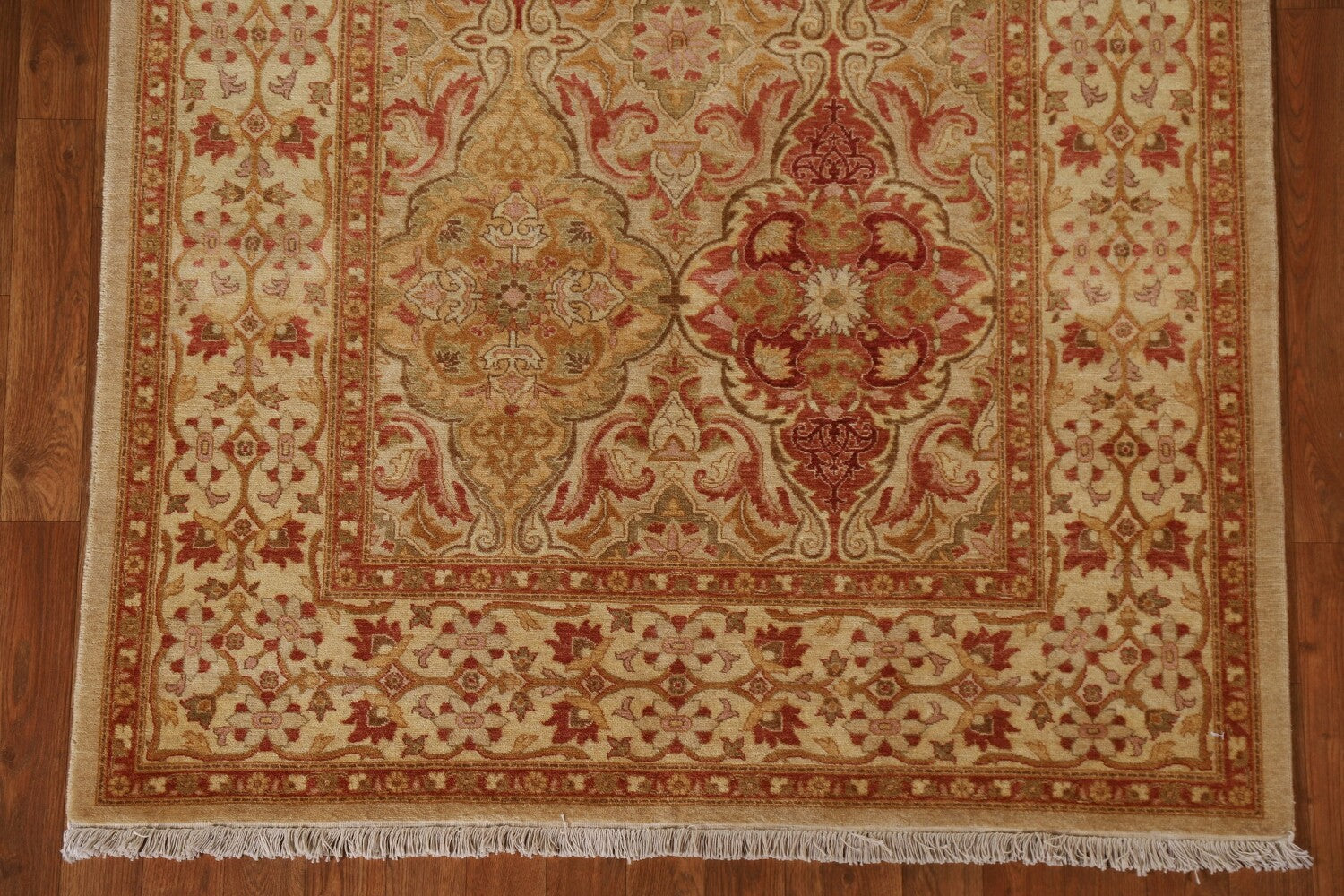 A Beautiful Genuine Pakistan Ziegler rug is Hand Knotted by skillful weavers in Pakistan with 100% Wool Material. This rug is in condition. dimensions are 5' 9'' X 4' 2'' in foot and 175 X 127 in centimeter. the primary color is Beige & Ivories.