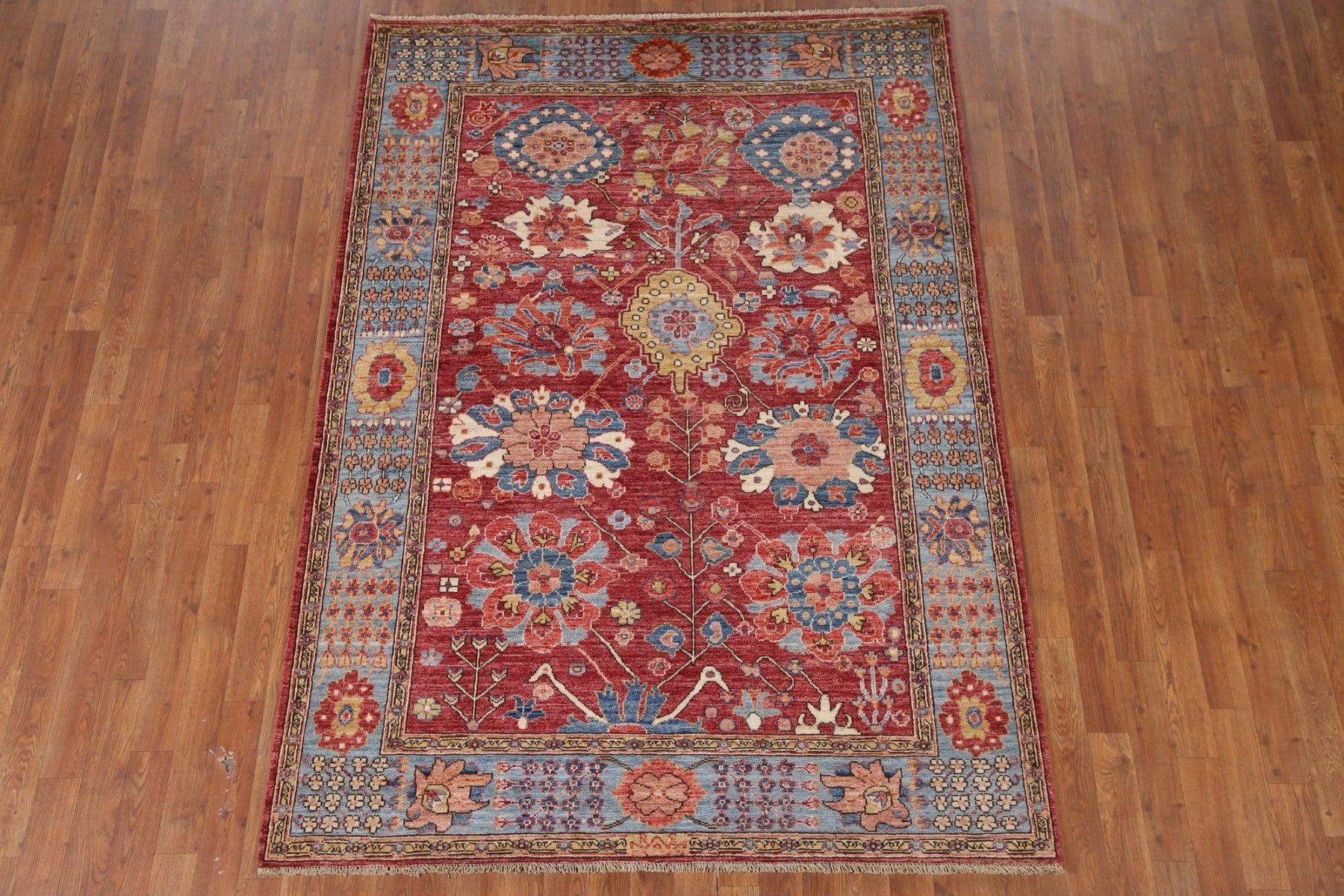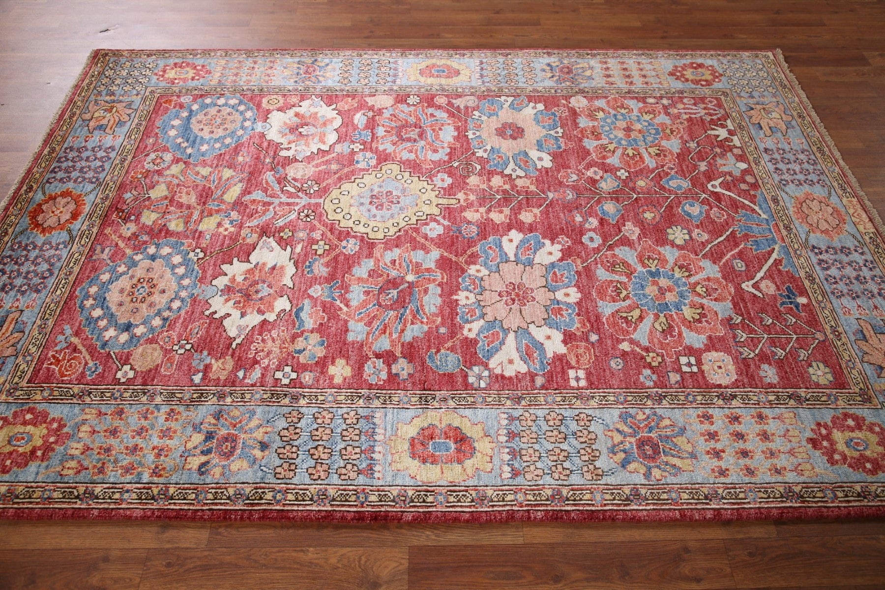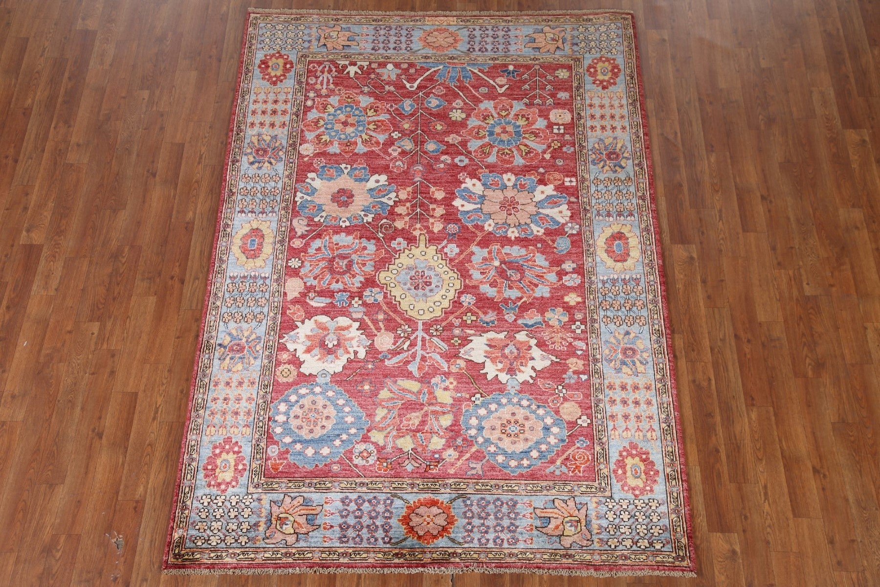 A Beautiful Genuine Pakistan Ziegler rug is Hand Knotted by skillful weavers in Pakistan with 100% Wool Material. This rug is in New, First Quality condition. dimensions are 7' 2'' X 5' 1'' in foot and 218 X 155 in centimeter. the primary color is Red.