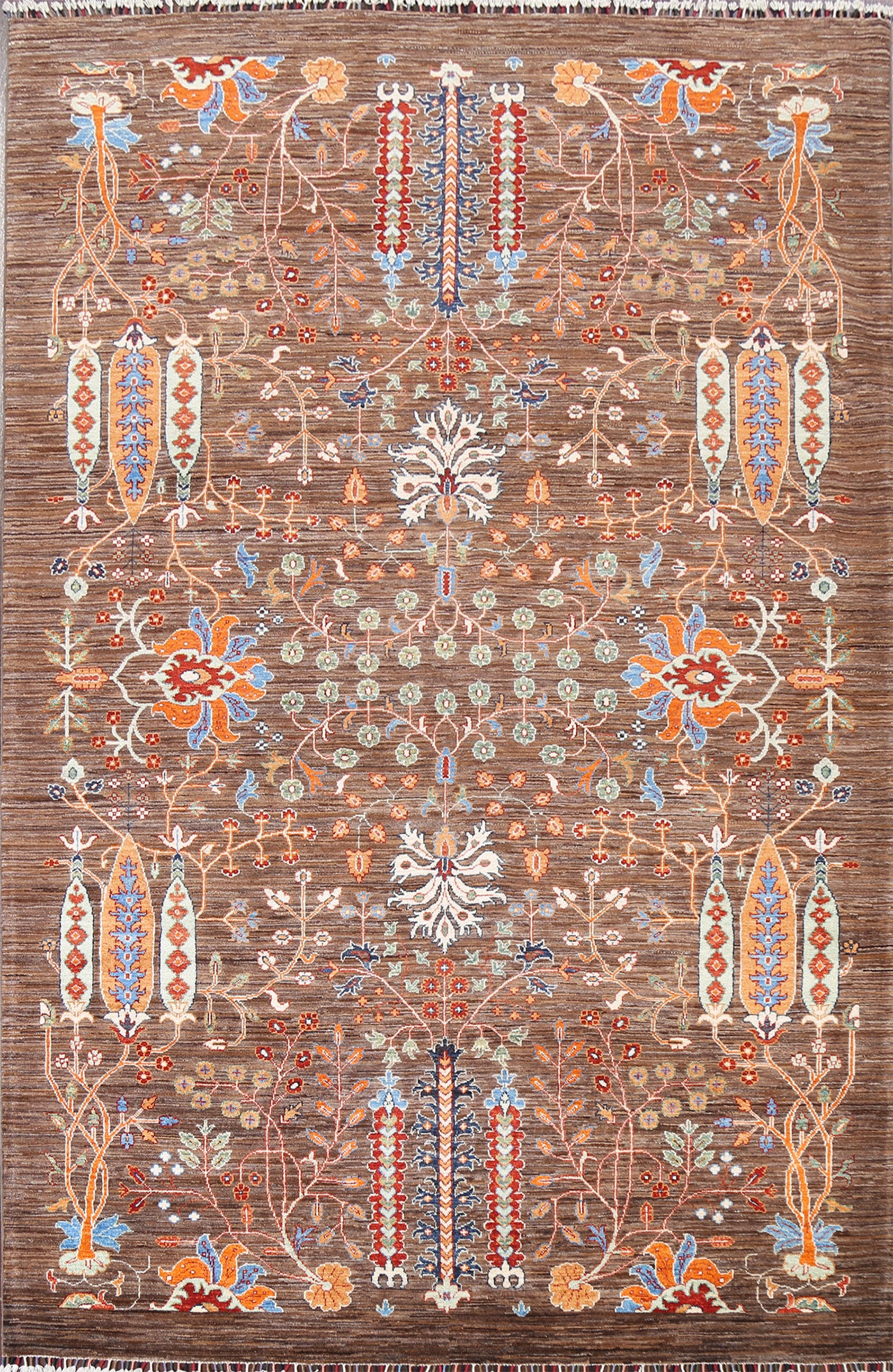 A Beautiful Genuine Pakistan Ziegler rug is Hand Knotted by skillful weavers in Pakistan with 100% Wool Material. This rug is in New, First Quality condition. dimensions are 9' 10'' X 6' 8'' in foot and 300 X 203 in centimeter. the primary color is Brown.