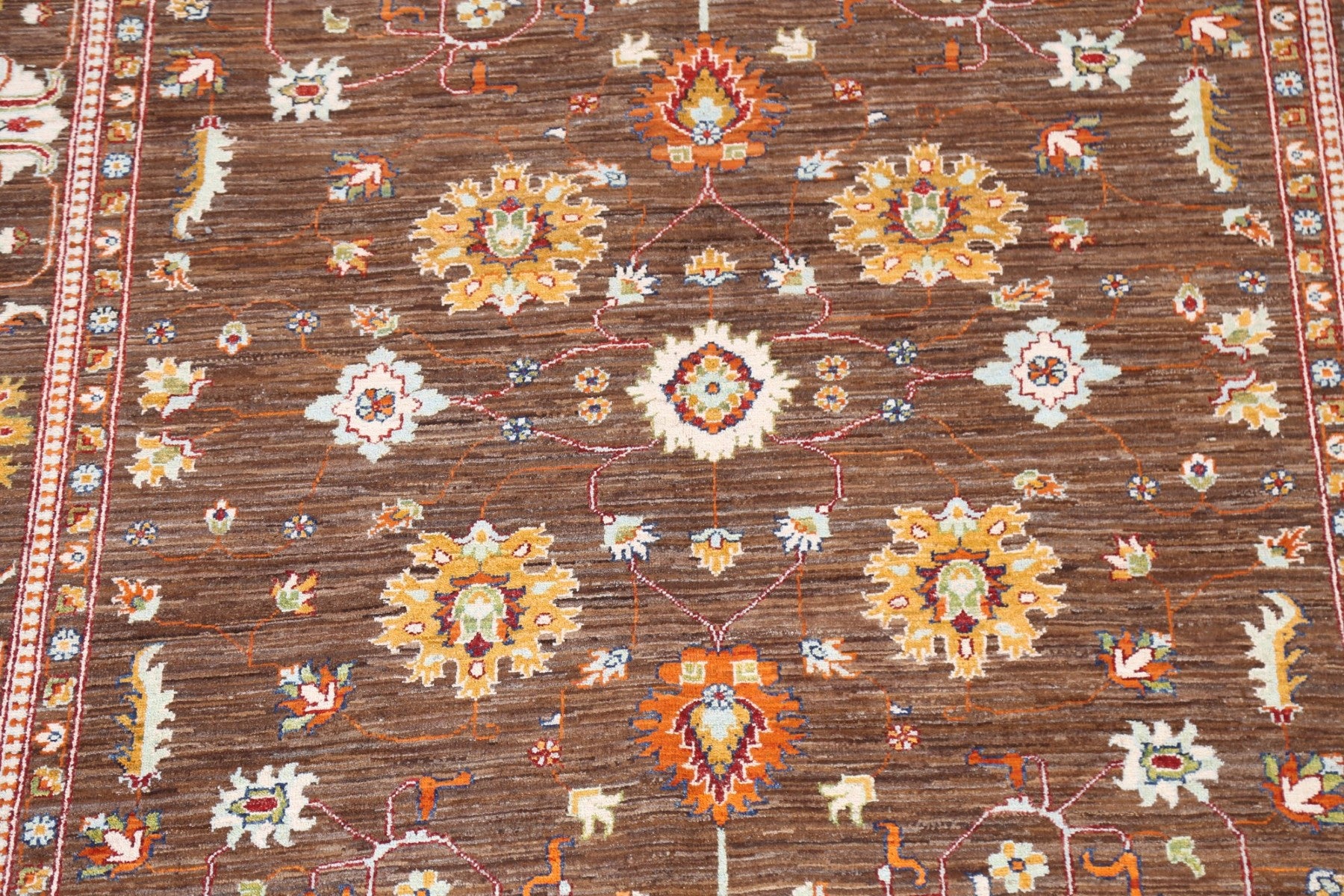 A Beautiful Genuine Pakistan Ziegler rug is Hand Knotted by skillful weavers in Pakistan with 100% Wool Material. This rug is in New, First Quality condition. dimensions are 9' 9'' X 6' 6'' in foot and 297 X 198 in centimeter. the primary color is Brown.