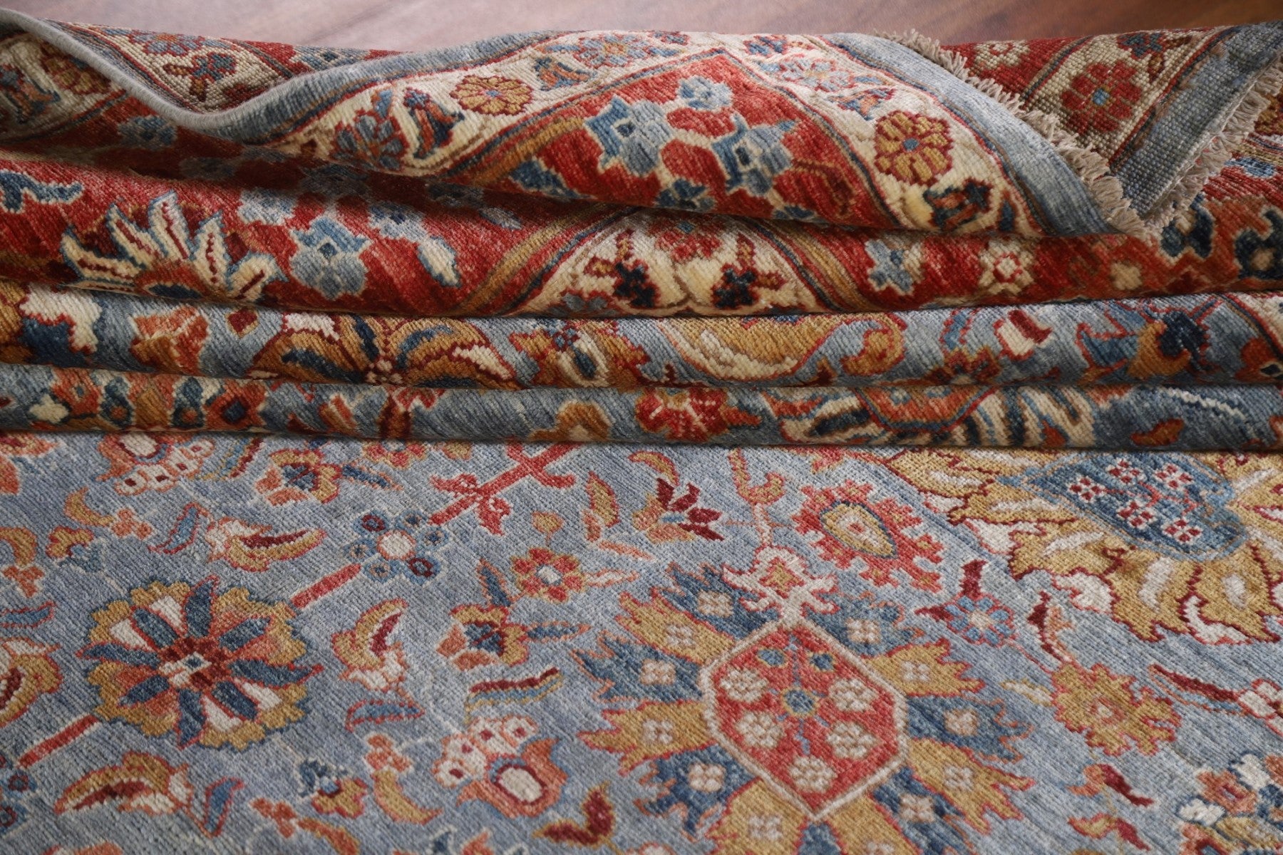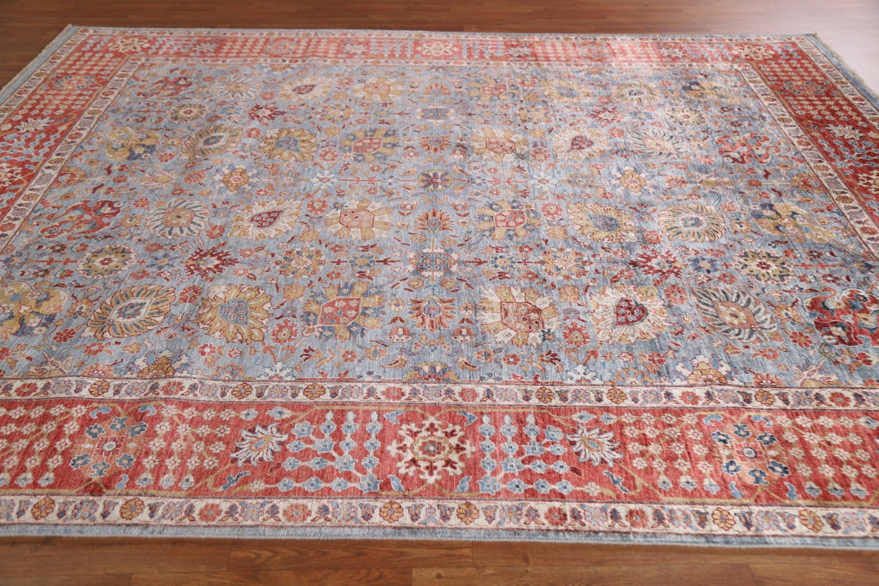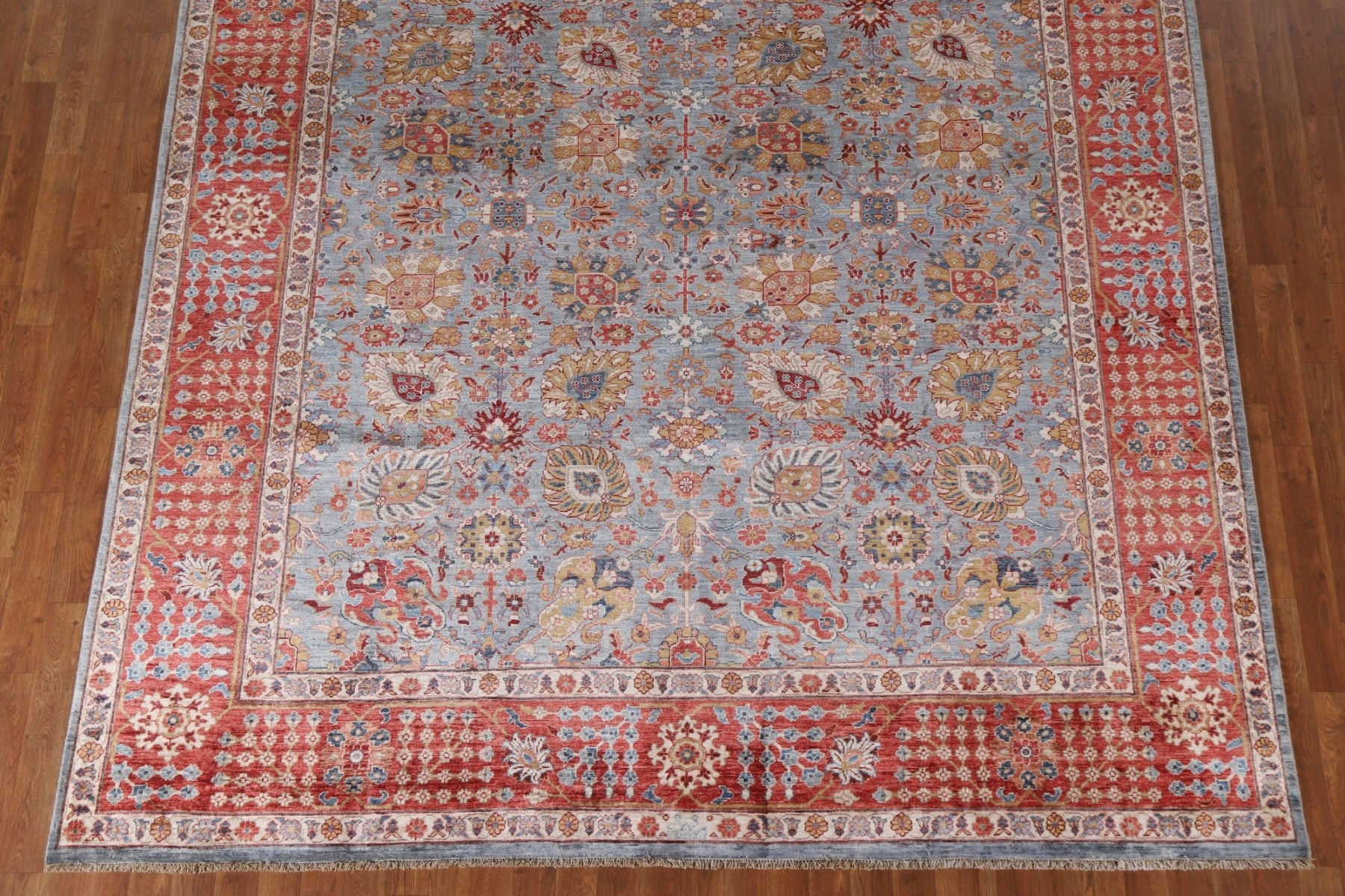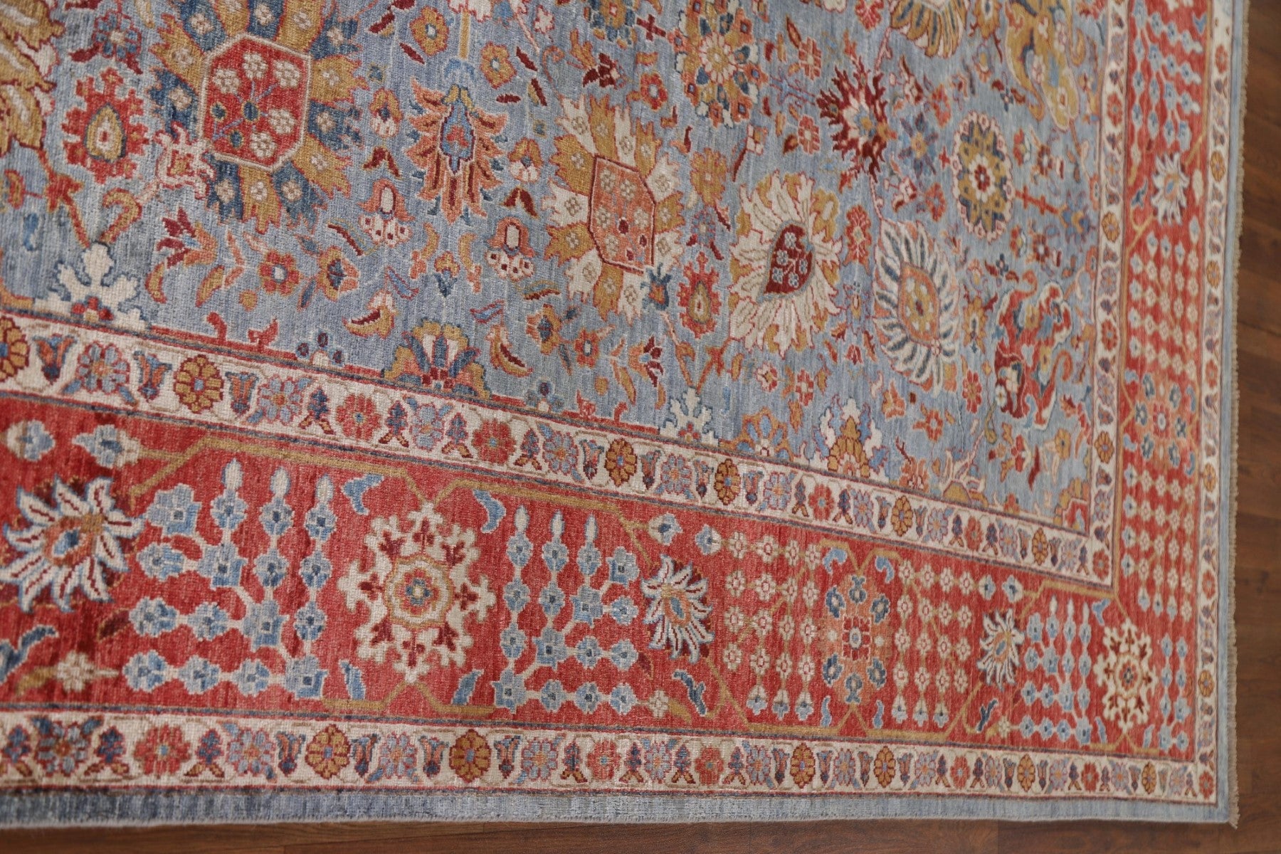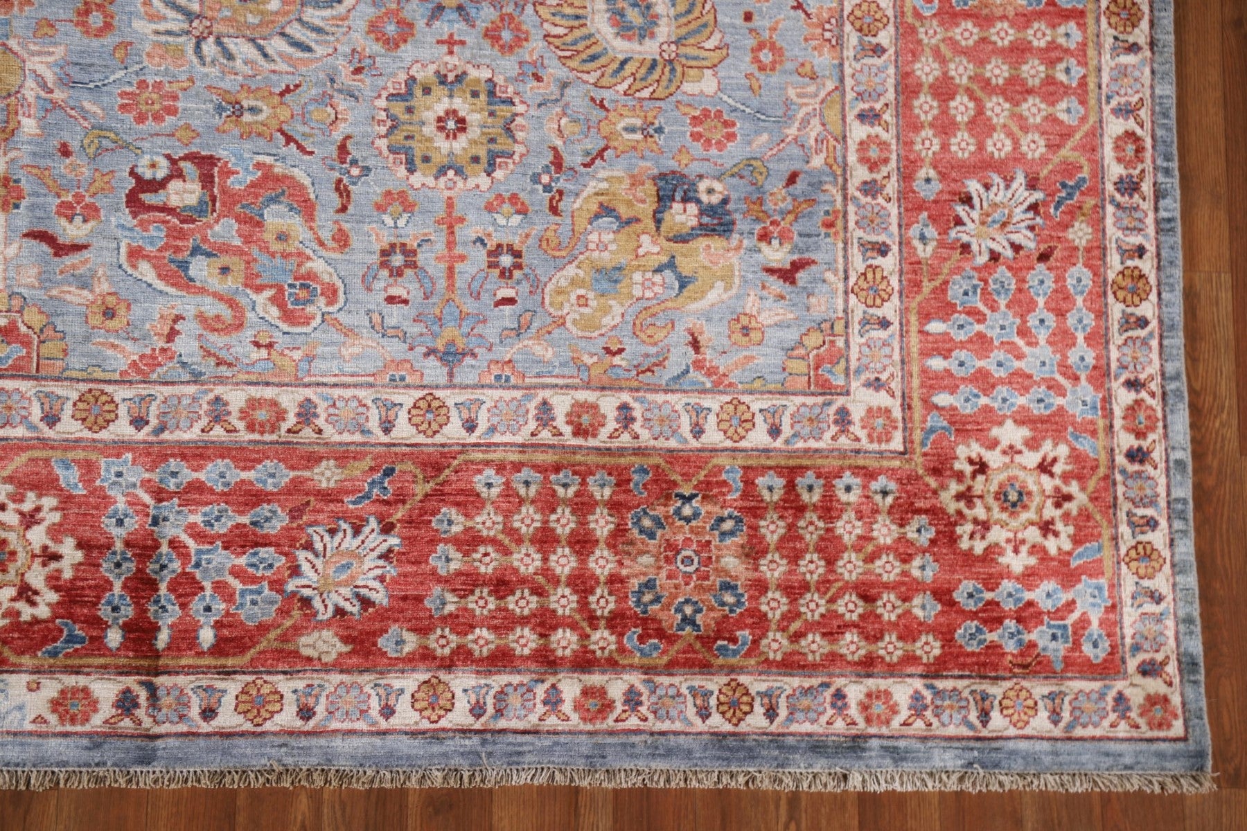 A Beautiful Genuine Pakistan Ziegler rug is Hand Knotted by skillful weavers in Pakistan with 100% Wool Material. This rug is in condition. dimensions are 9' 8'' X 8' 1'' in foot and 295 X 246 in centimeter. the primary color is Navy Blue & Blues.