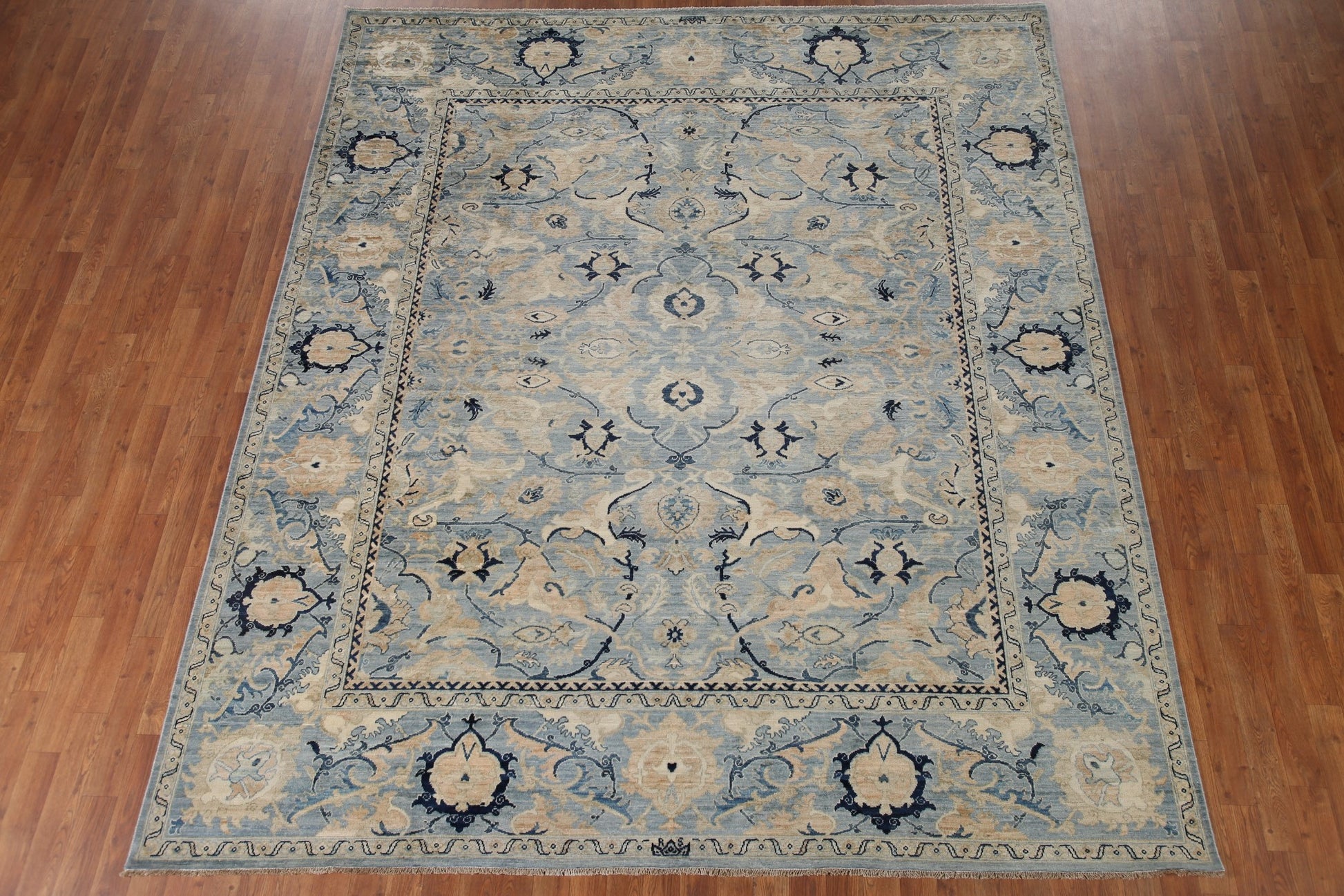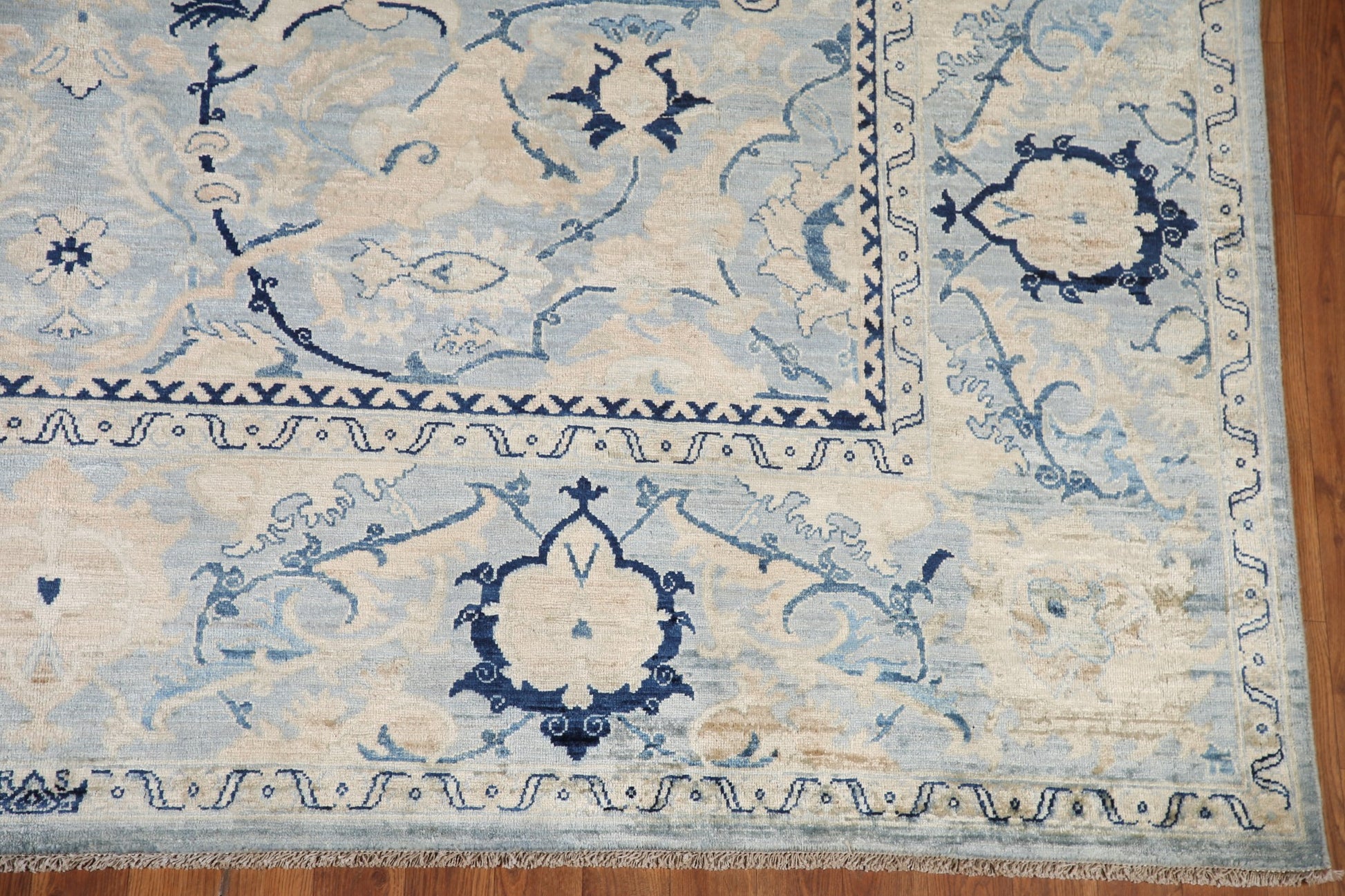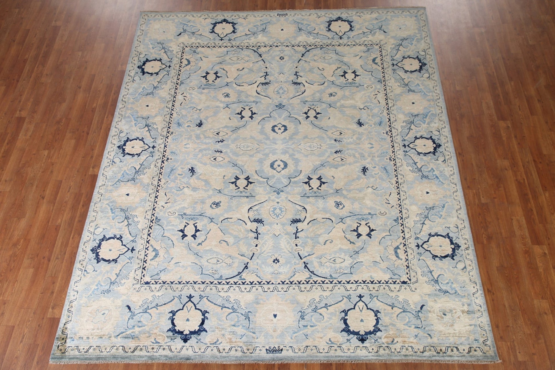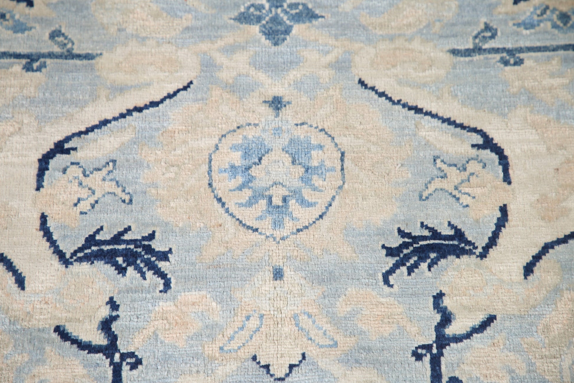 A Beautiful Genuine Pakistan Ziegler rug is Hand Knotted by skillful weavers in Pakistan with 100% Wool Material. This rug is in condition. dimensions are 9' 7'' X 8' 2'' in foot and 292 X 249 in centimeter. the primary color is Navy Blue & Blues.