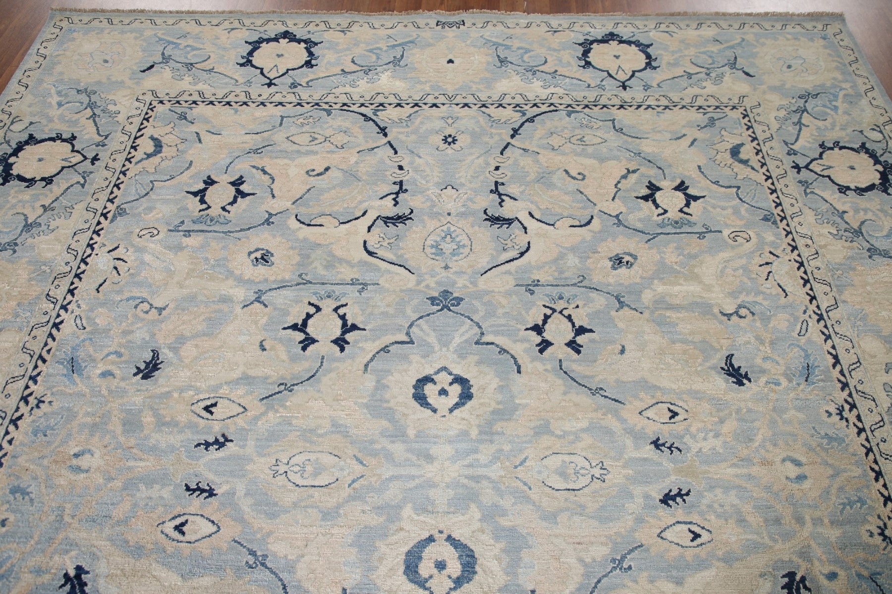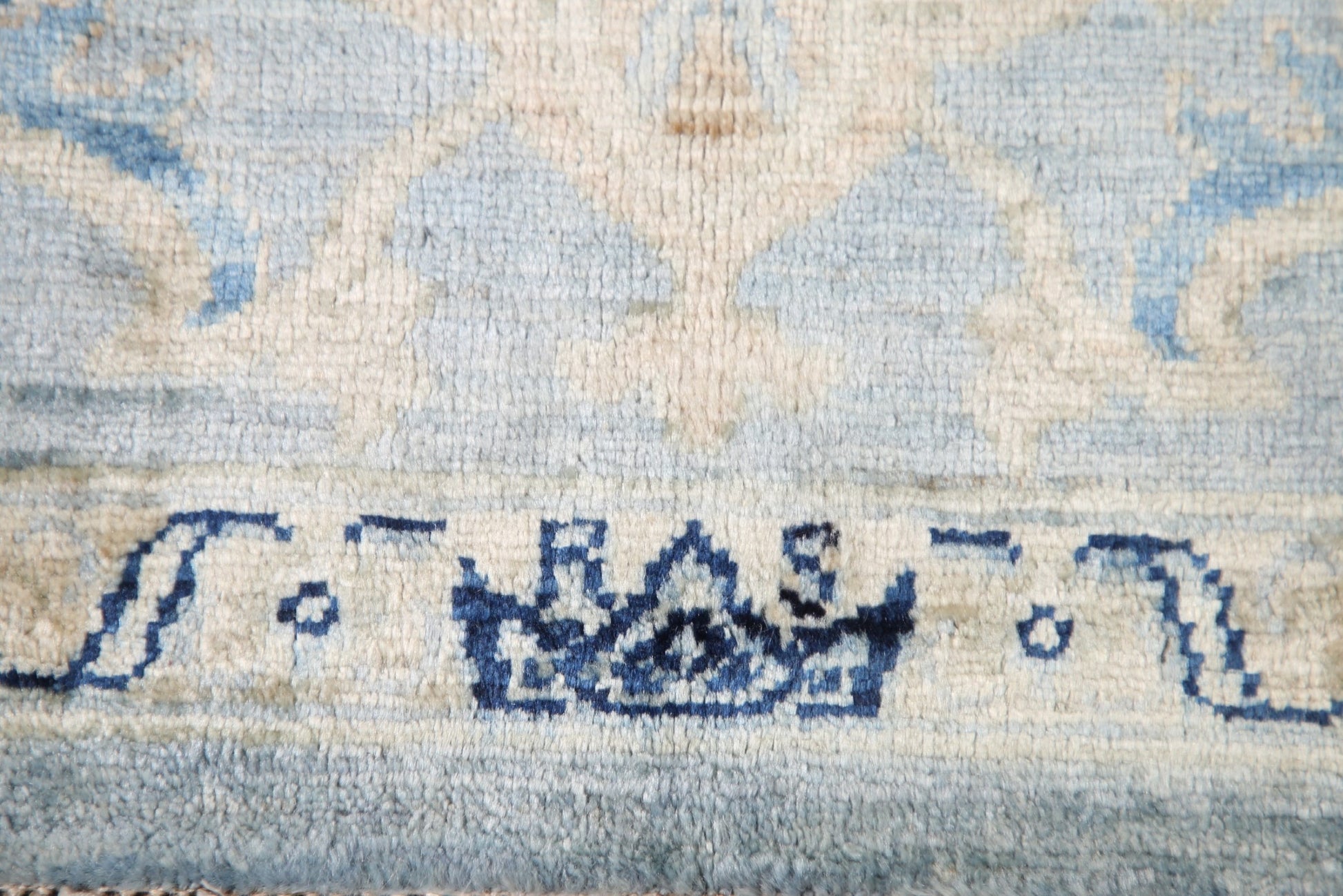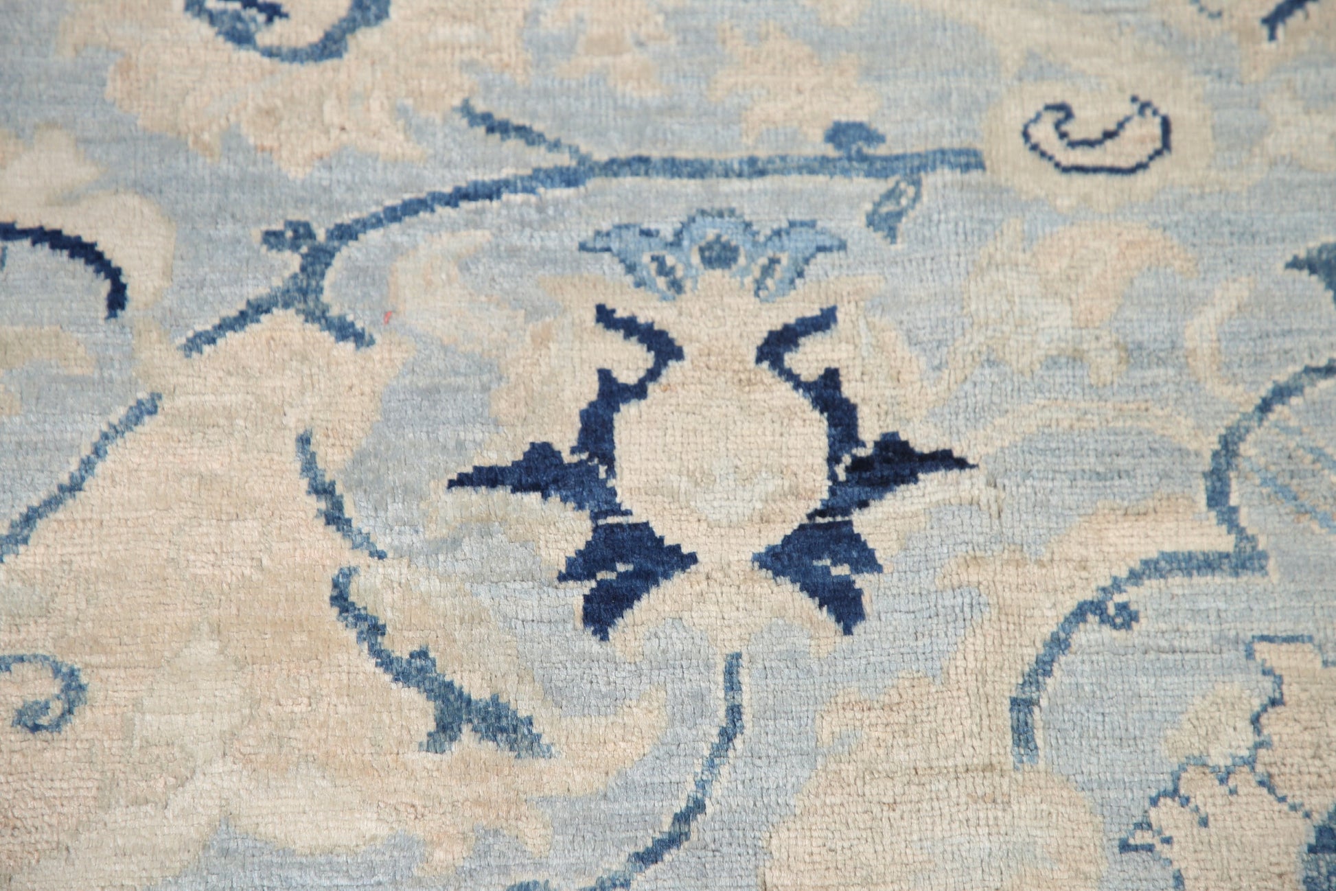 A Beautiful Genuine Pakistan Ziegler rug is Hand Knotted by skillful weavers in Pakistan with 100% Wool Material. This rug is in condition. dimensions are 9' 7'' X 8' 2'' in foot and 292 X 249 in centimeter. the primary color is Navy Blue & Blues.