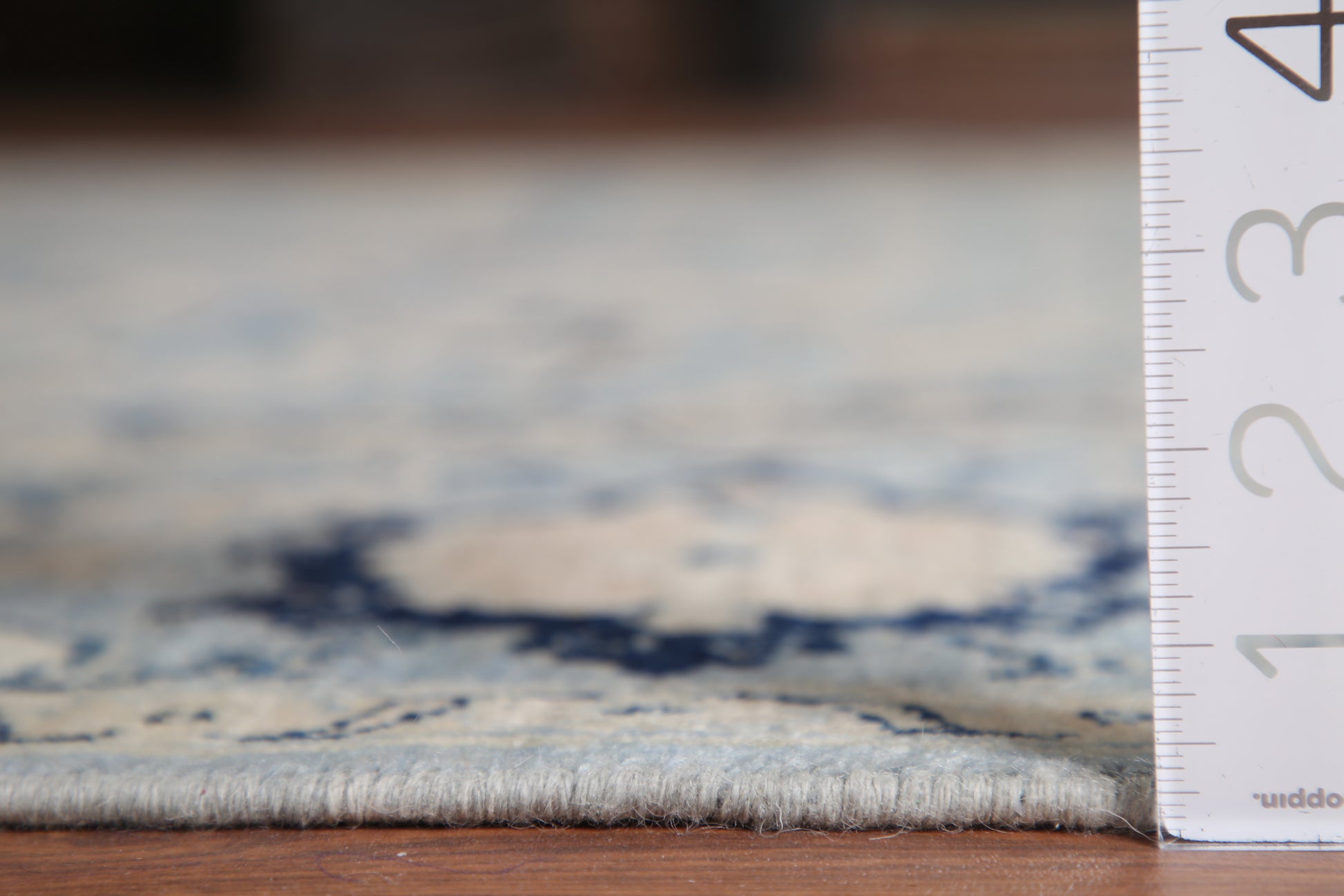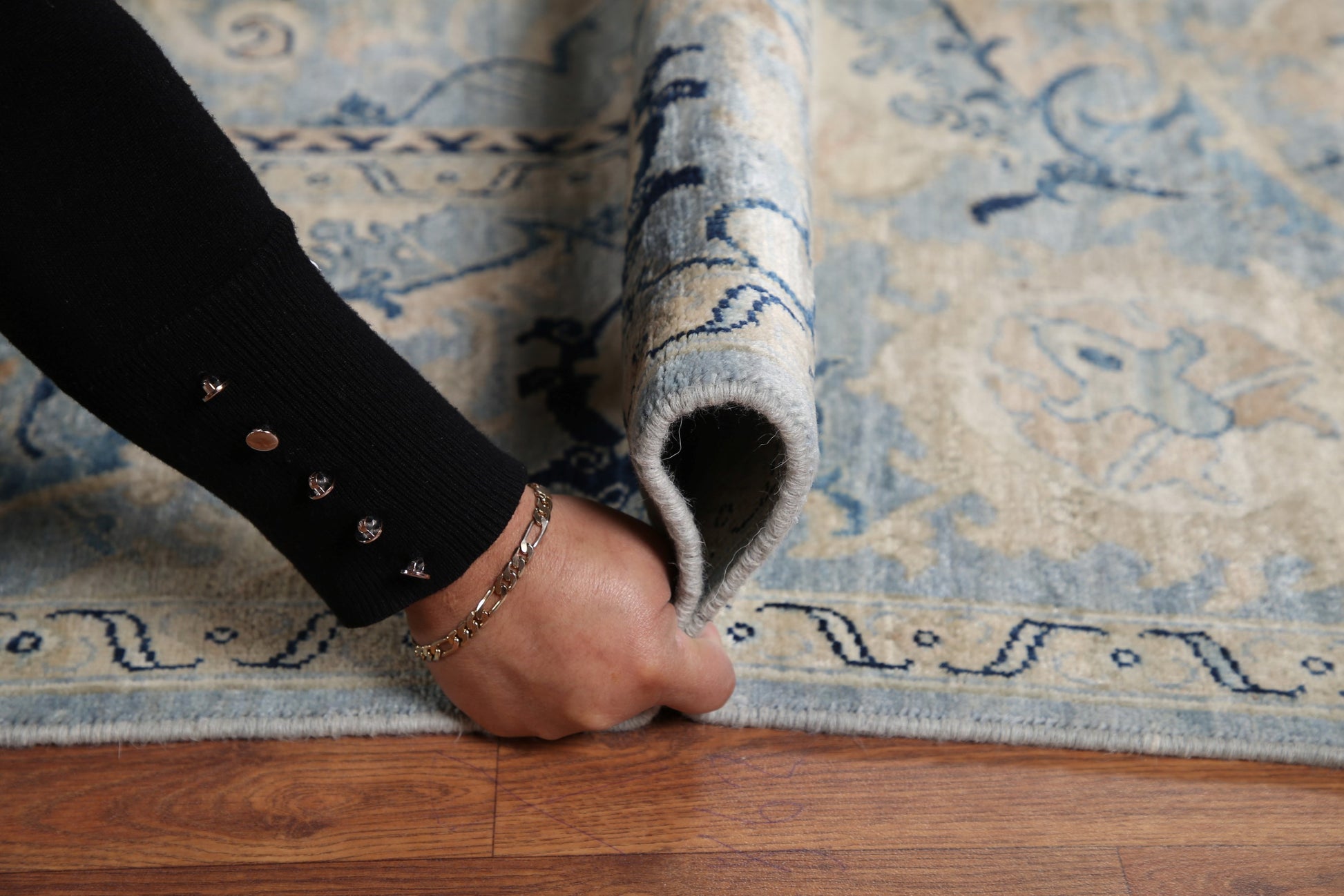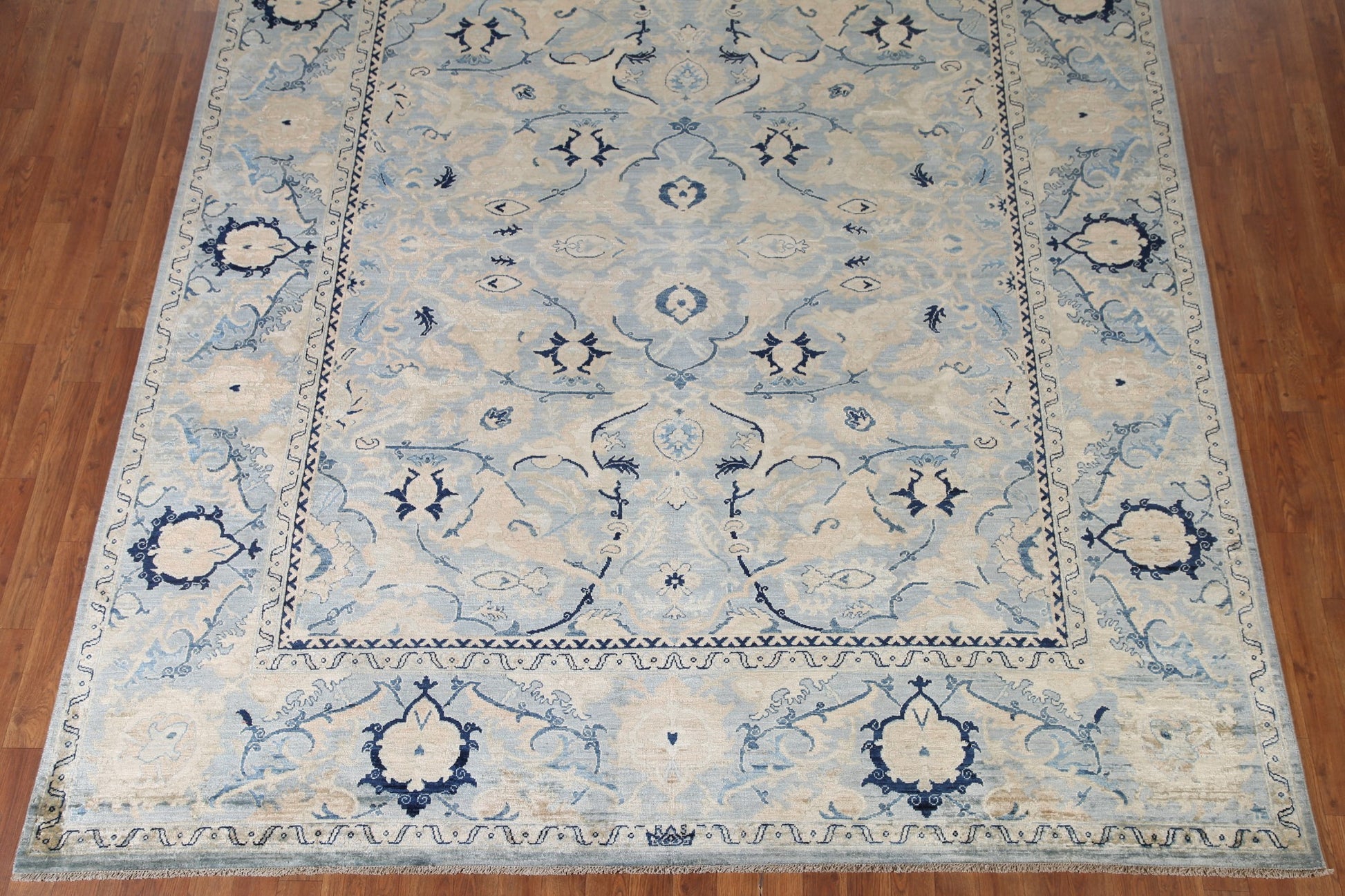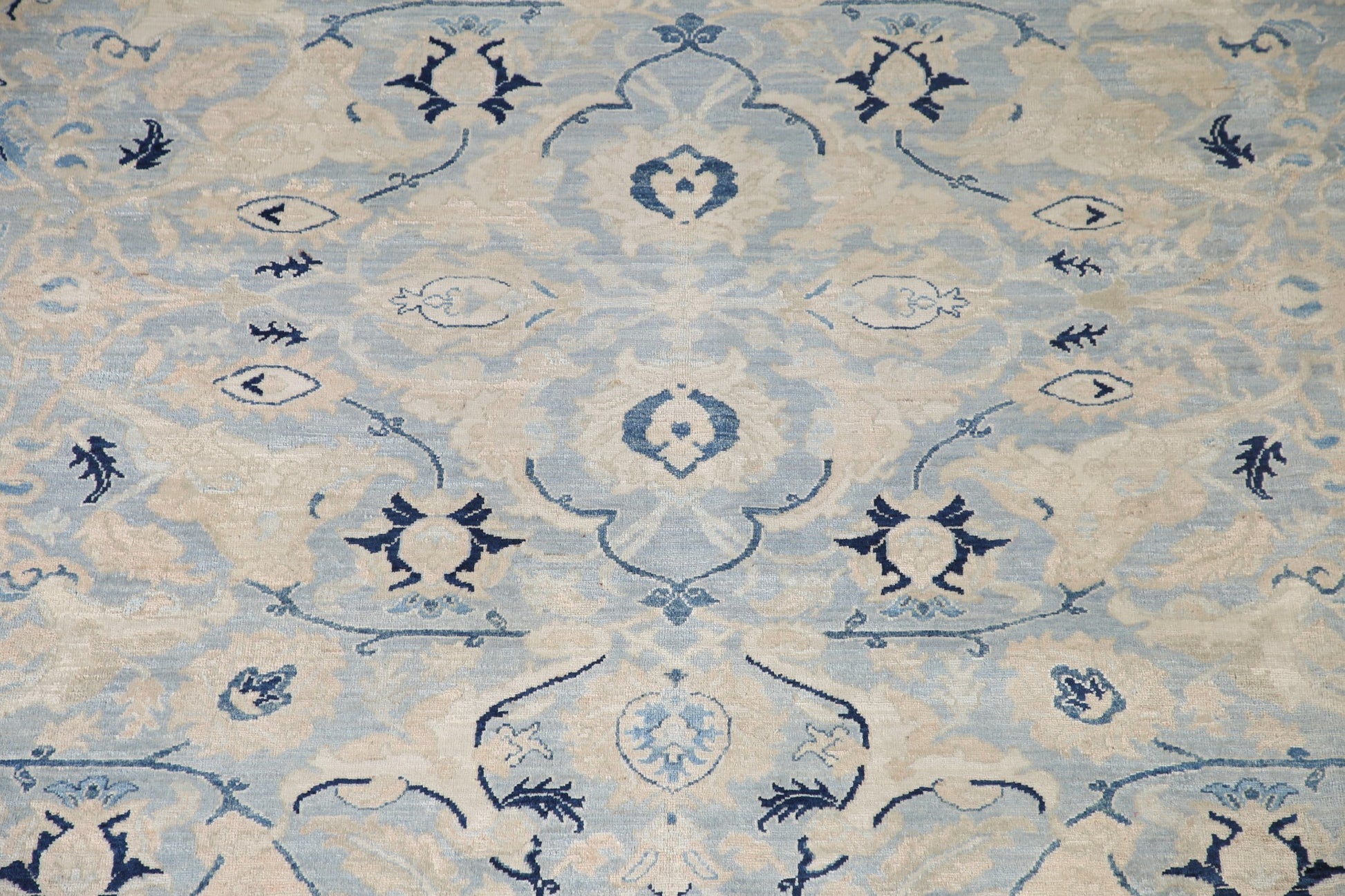 A Beautiful Genuine Pakistan Ziegler rug is Hand Knotted by skillful weavers in Pakistan with 100% Wool Material. This rug is in condition. dimensions are 9' 7'' X 8' 2'' in foot and 292 X 249 in centimeter. the primary color is Navy Blue & Blues.