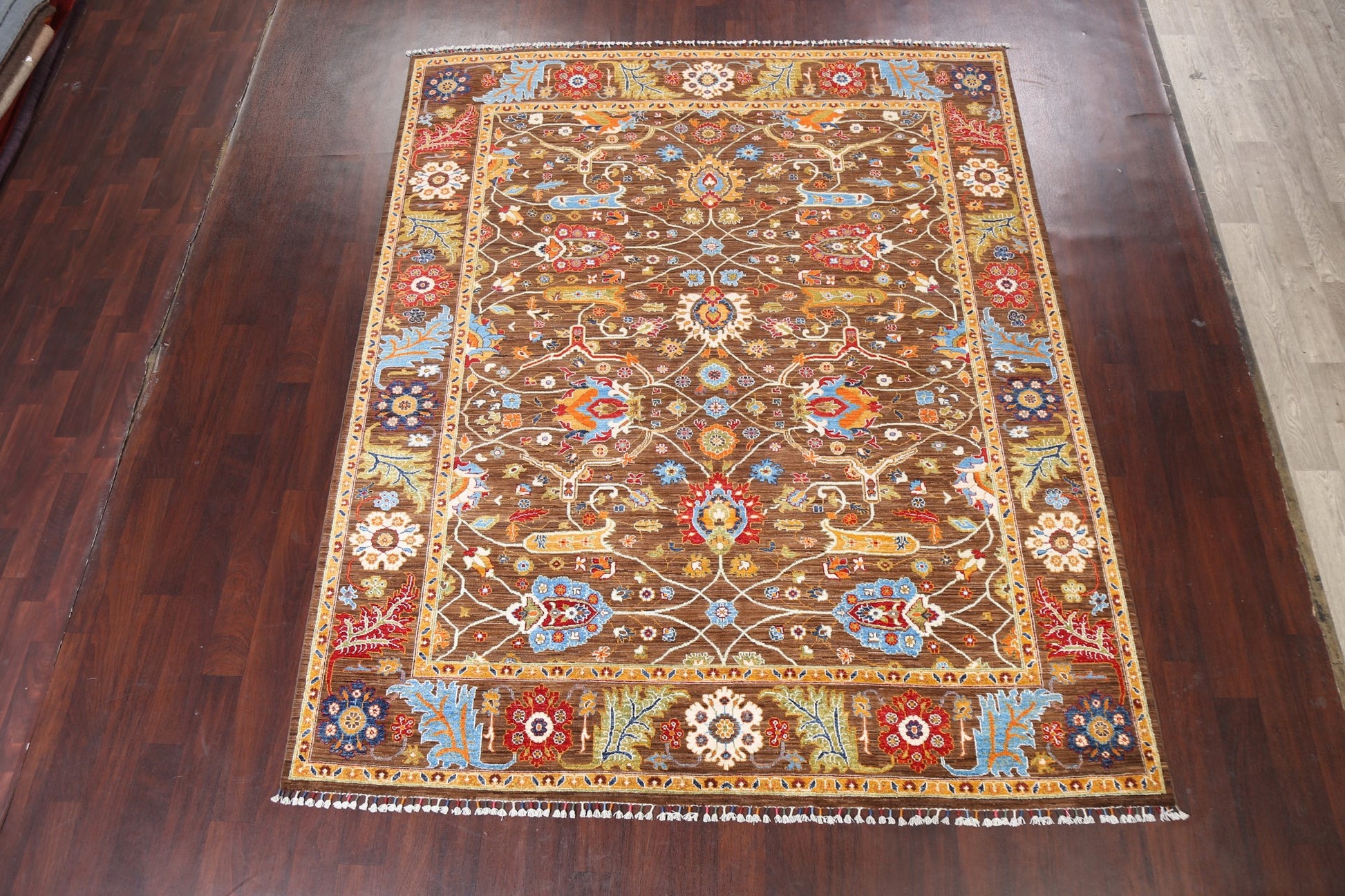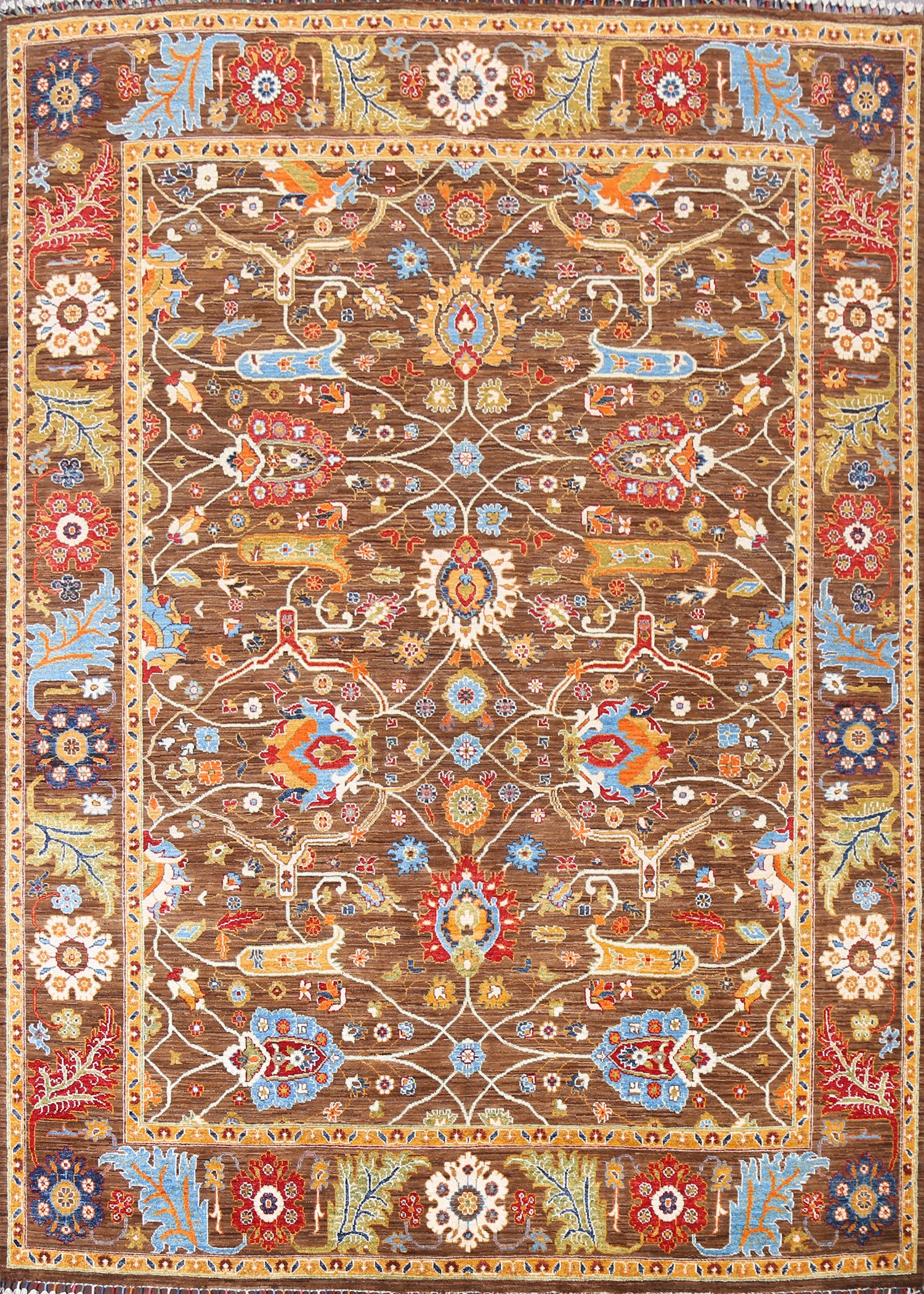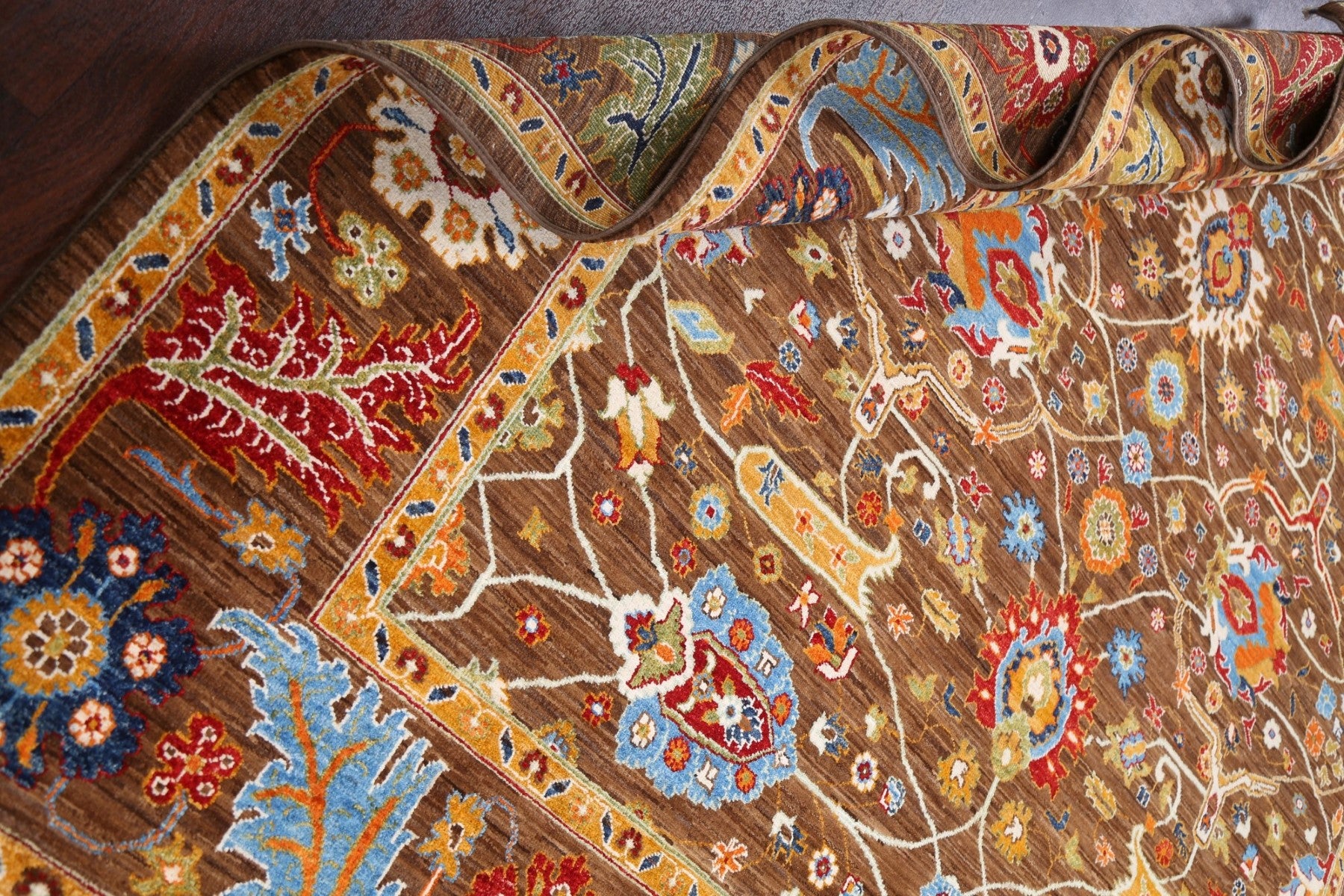 A Beautiful Genuine Pakistan Ziegler rug is Hand Knotted by skillful weavers in Pakistan with 100% Wool Material. This rug is in New, First Quality condition. dimensions are 9' 7'' X 8' 0'' in foot and 292 X 244 in centimeter. the primary color is Brown.