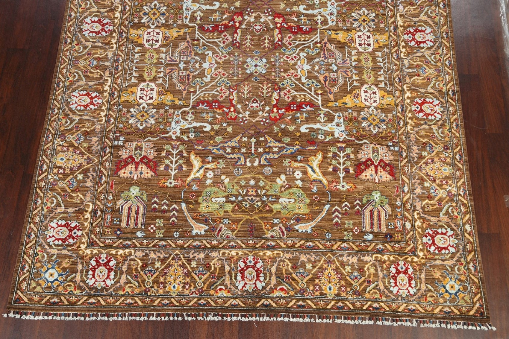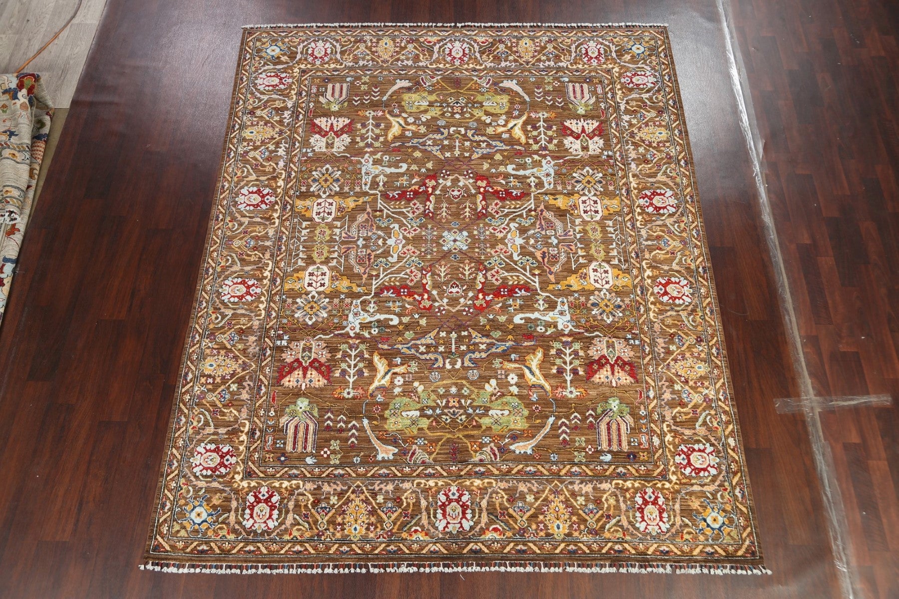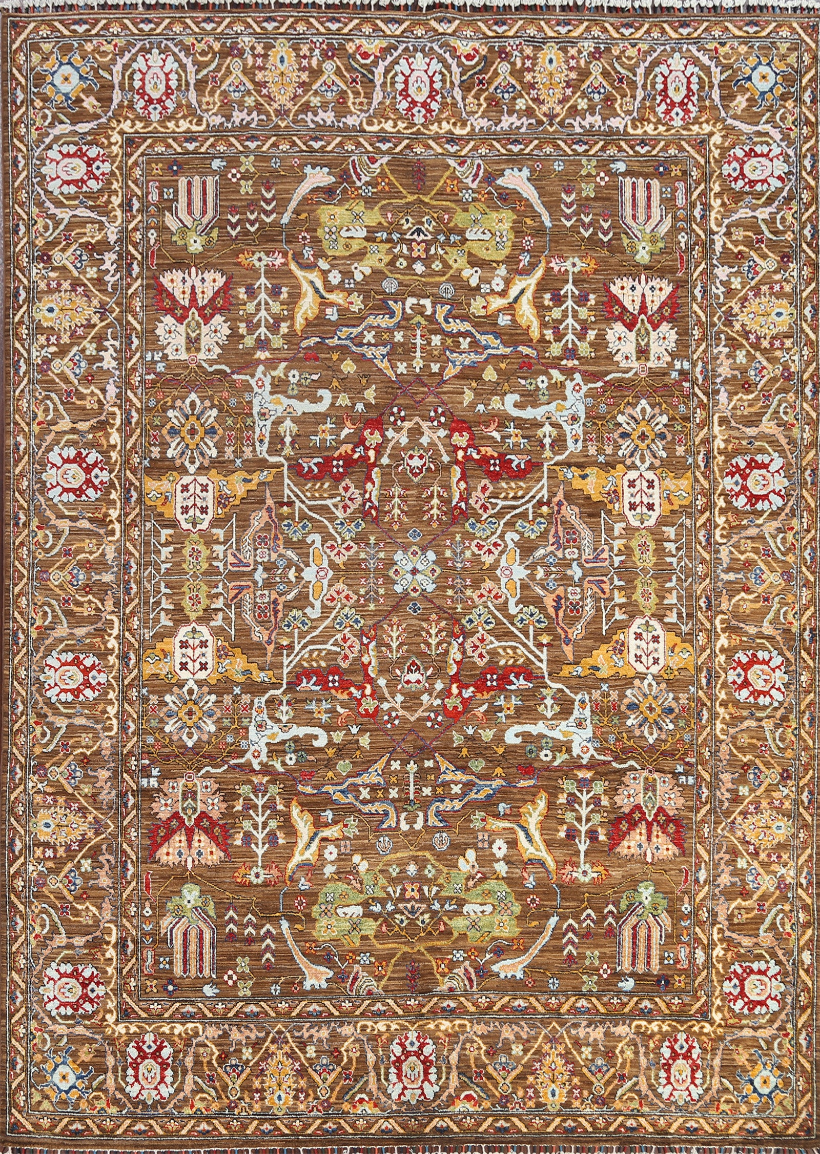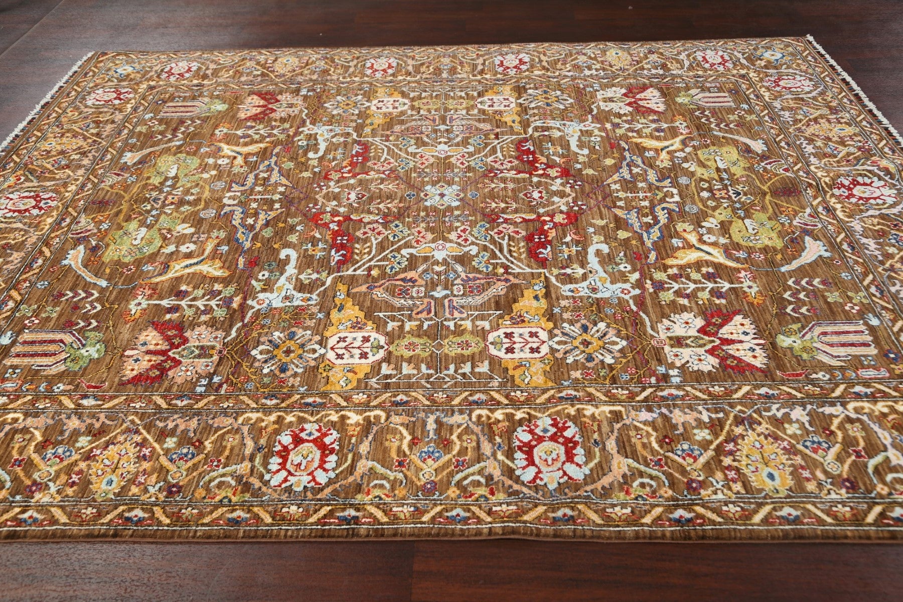 A Beautiful Genuine Pakistan Ziegler rug is Hand Knotted by skillful weavers in Pakistan with 100% Wool Material. This rug is in New, First Quality condition. dimensions are 9' 8'' X 8' 1'' in foot and 295 X 246 in centimeter. the primary color is Brown.