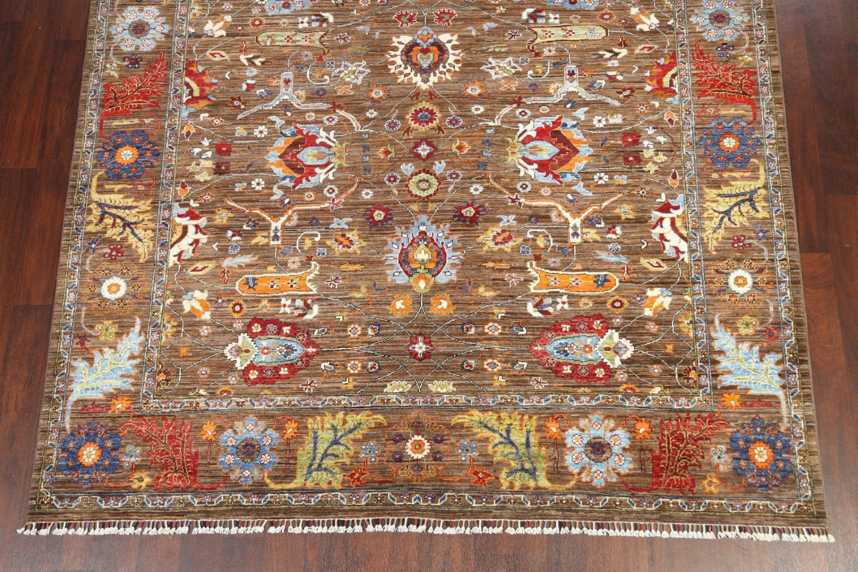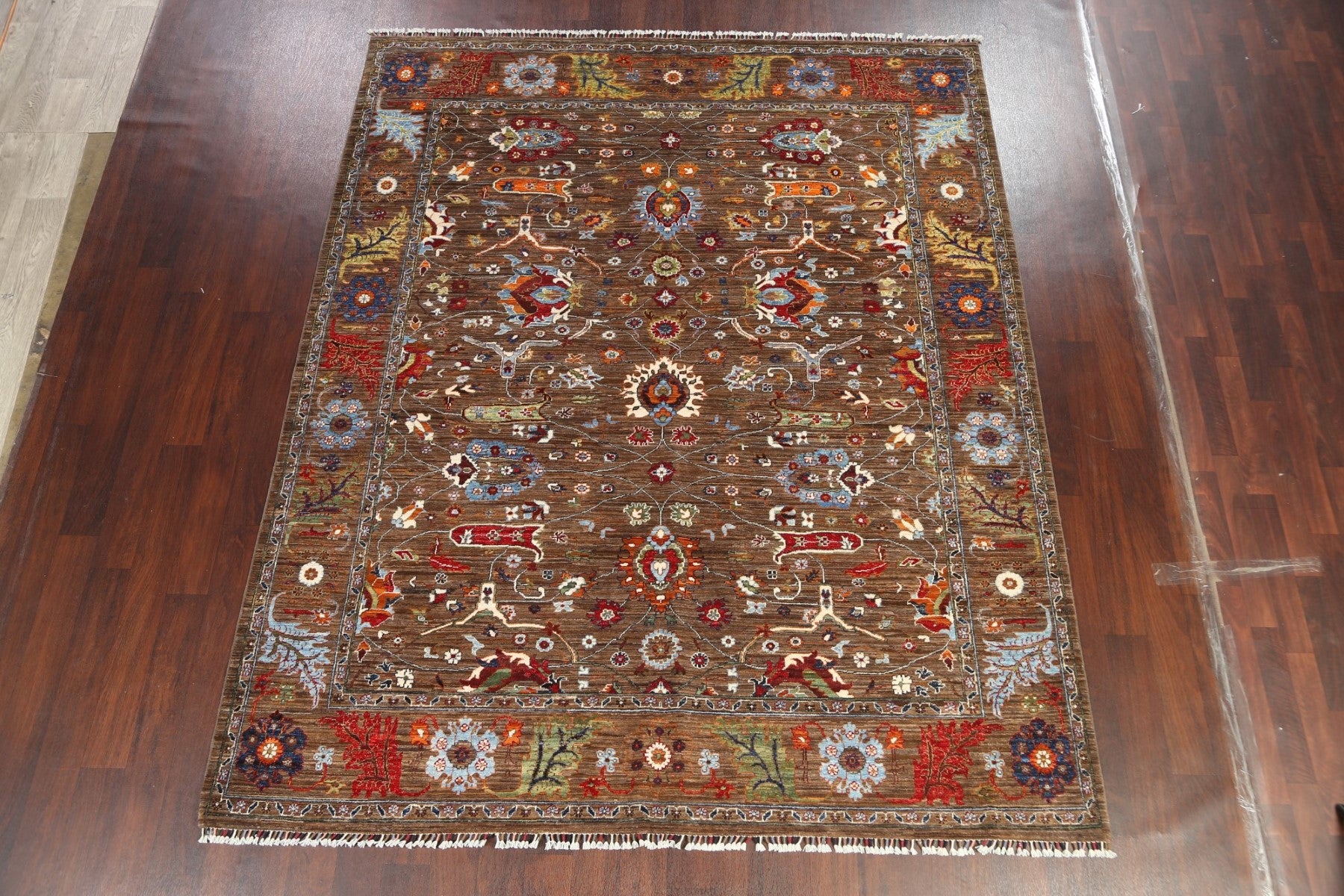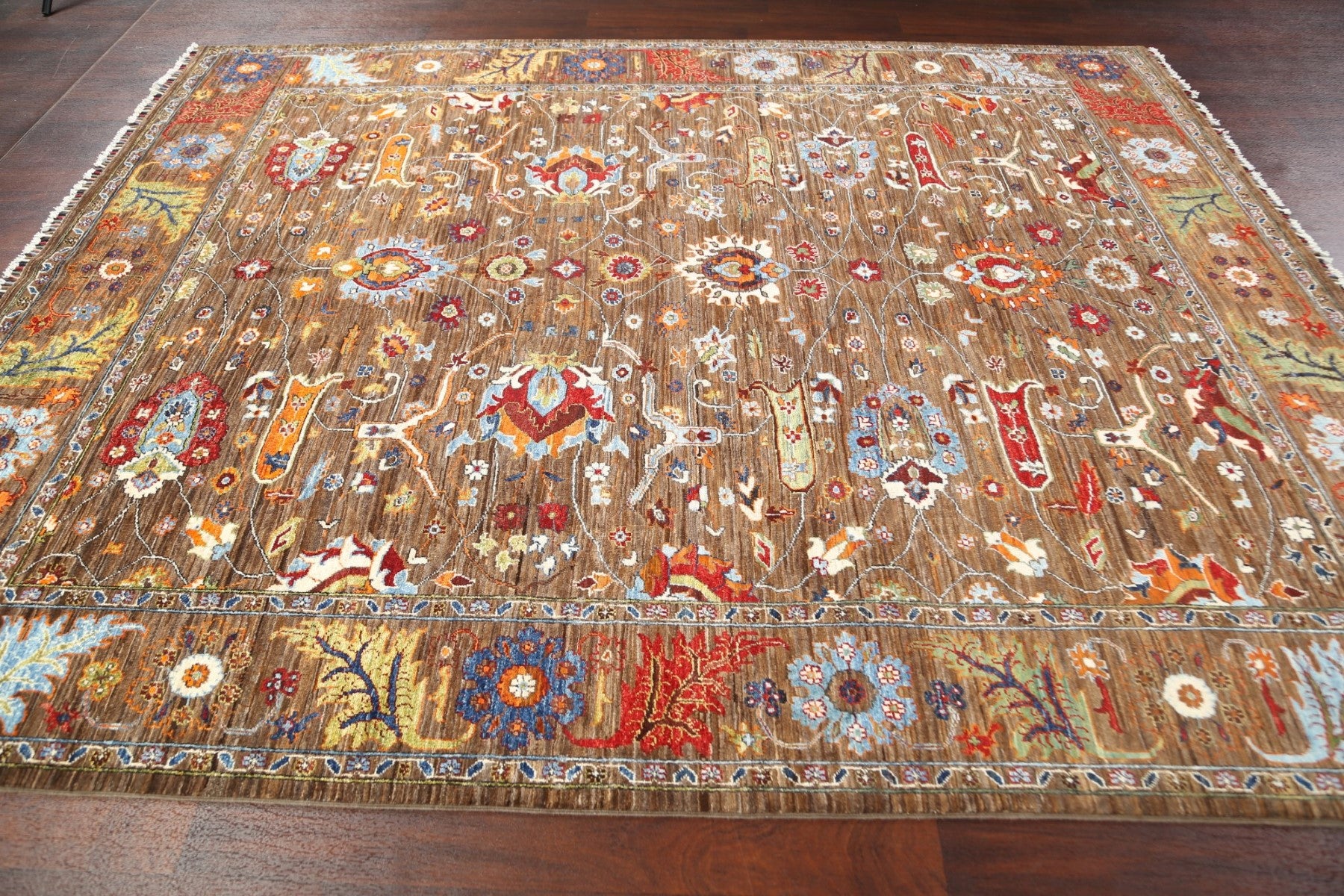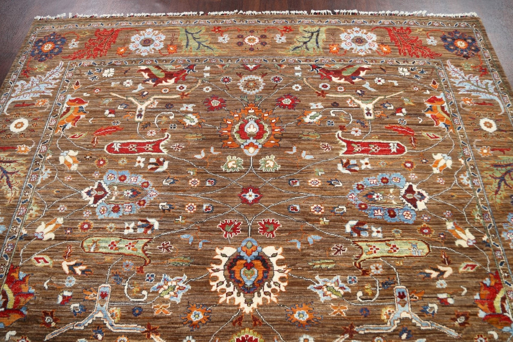 A Beautiful Genuine Pakistan Ziegler rug is Hand Knotted by skillful weavers in Pakistan with 100% Wool Material. This rug is in New, First Quality condition. dimensions are 9' 8'' X 7' 11'' in foot and 295 X 241 in centimeter. the primary color is Brown.