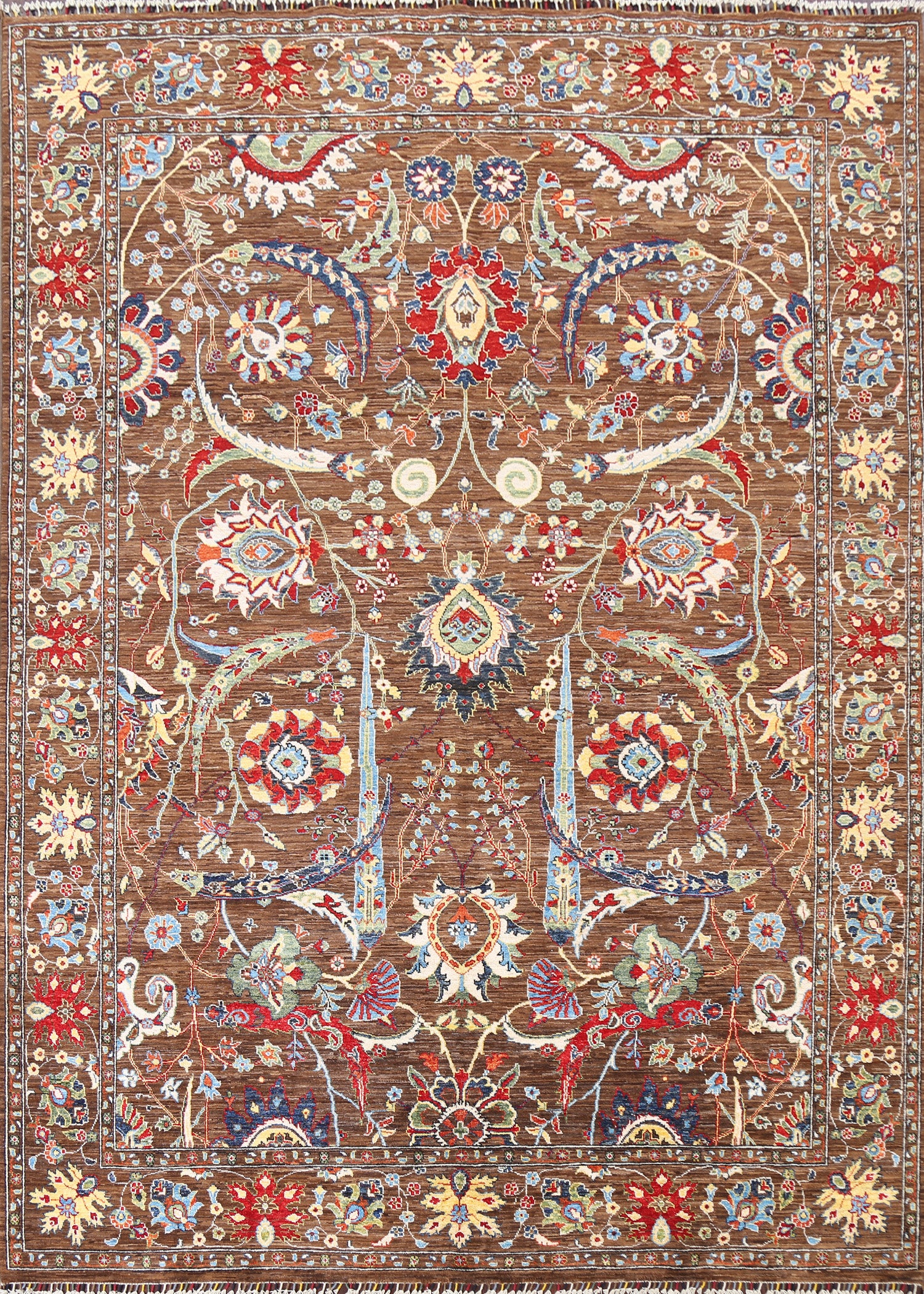A Beautiful Genuine Pakistan Ziegler rug is Hand Knotted by skillful weavers in Pakistan with 100% Wool Material. This rug is in New, First Quality condition. dimensions are 10' 0'' X 8' 1'' in foot and 305 X 246 in centimeter. the primary color is Brown.