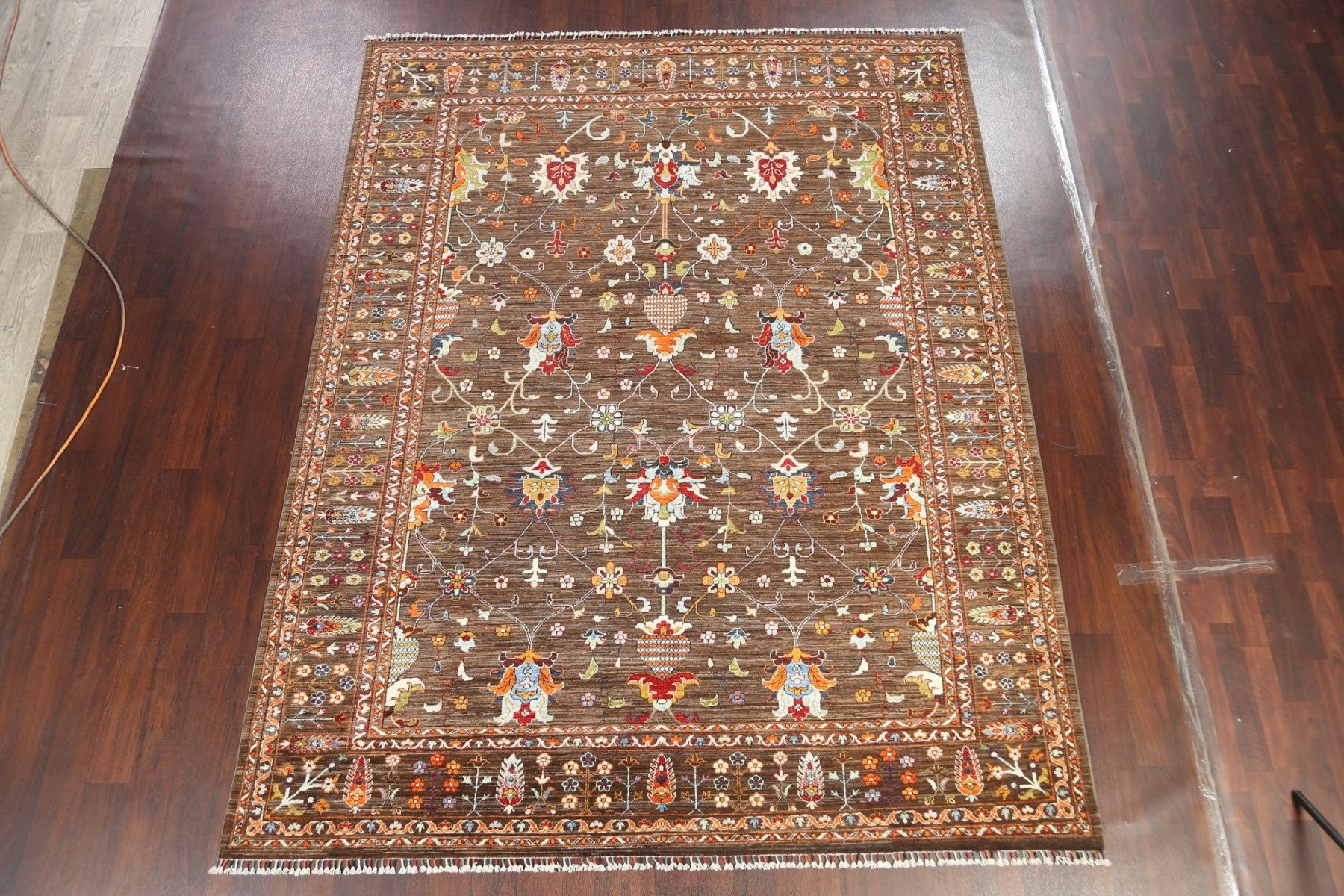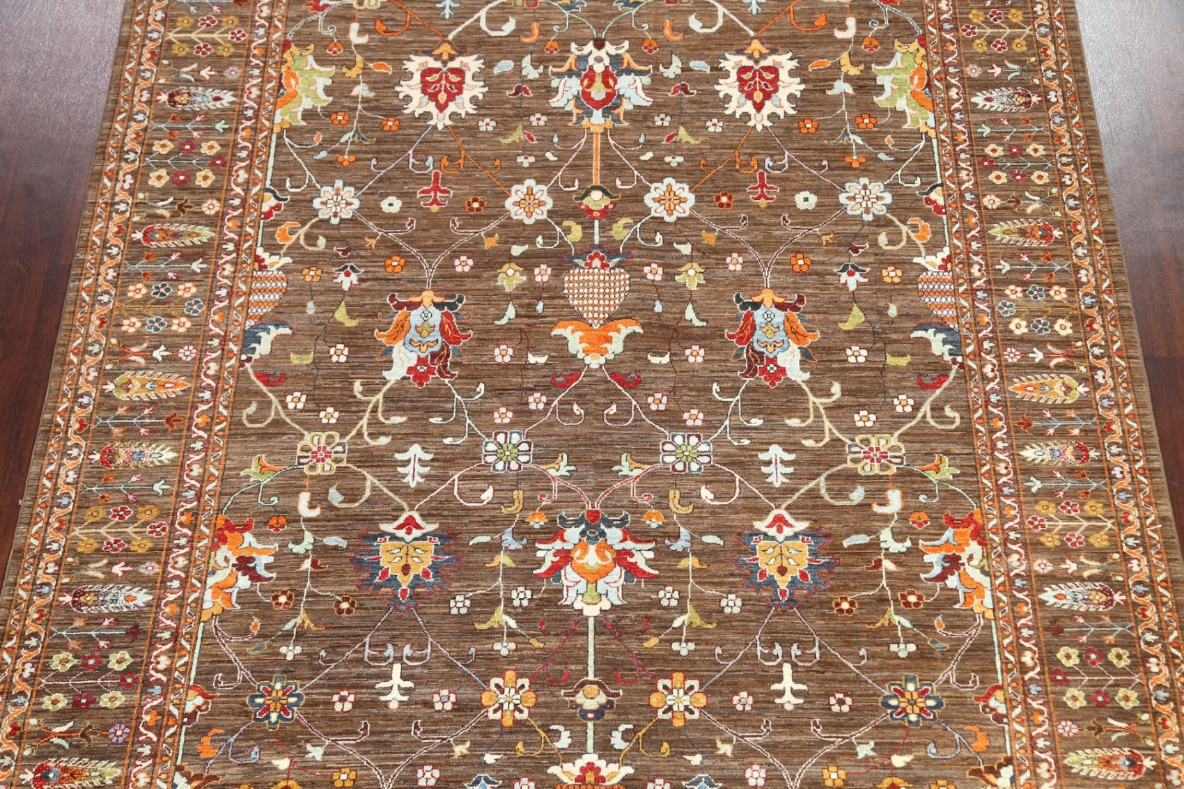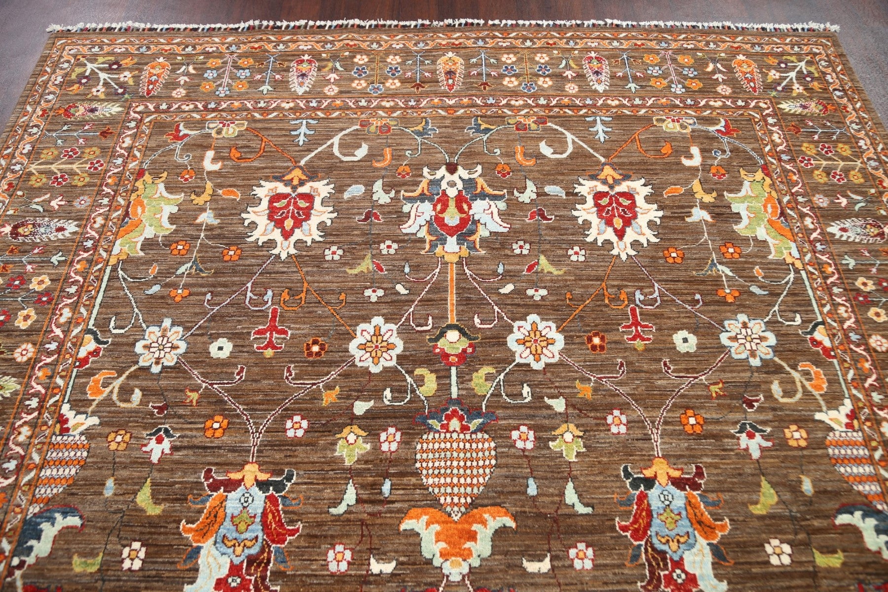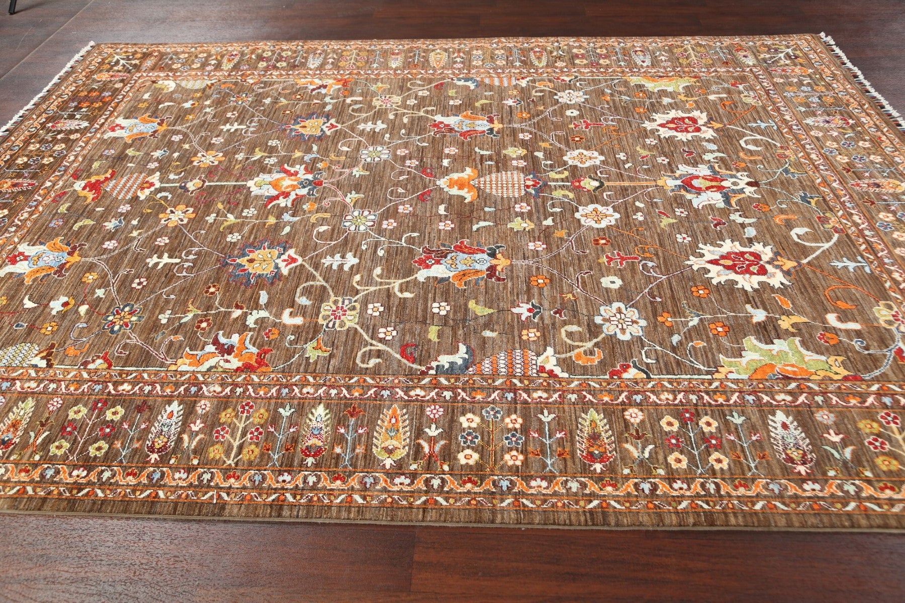 A Beautiful Genuine Pakistan Ziegler rug is Hand Knotted by skillful weavers in Pakistan with 100% Wool Material. This rug is in New, First Quality condition. dimensions are 10' 5'' X 8' 1'' in foot and 318 X 246 in centimeter. the primary color is Brown.