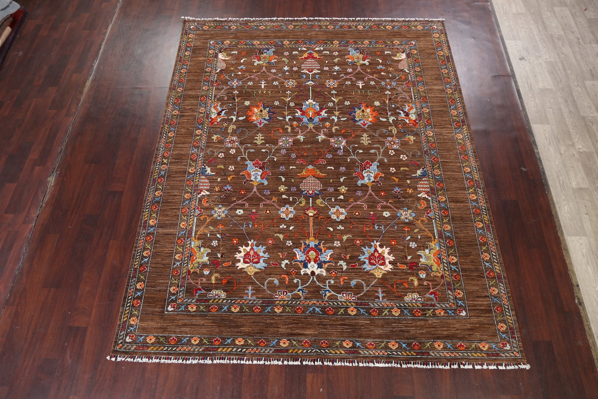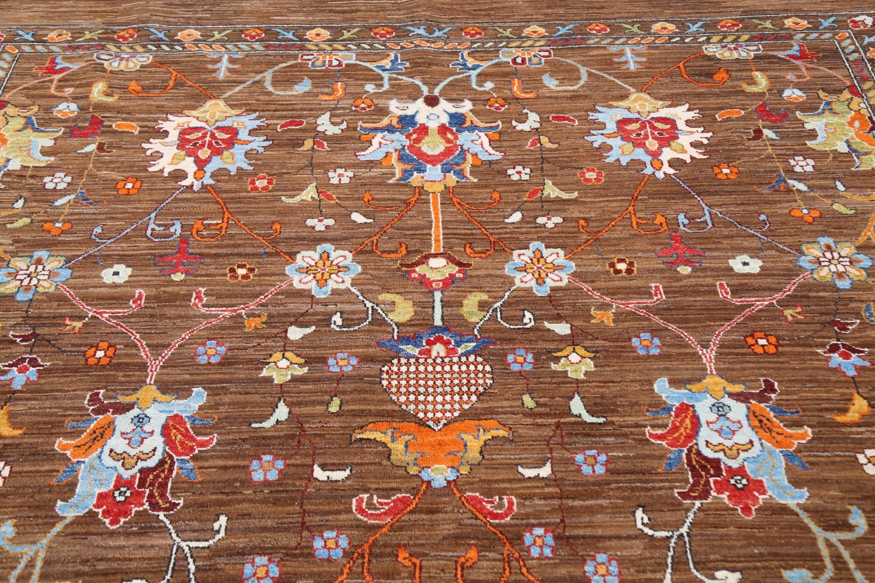 A Beautiful Genuine Pakistan Ziegler rug is Hand Knotted by skillful weavers in Pakistan with 100% Wool Material. This rug is in New, First Quality condition. dimensions are 10' 0'' X 8' 2'' in foot and 305 X 249 in centimeter. the primary color is Brown.