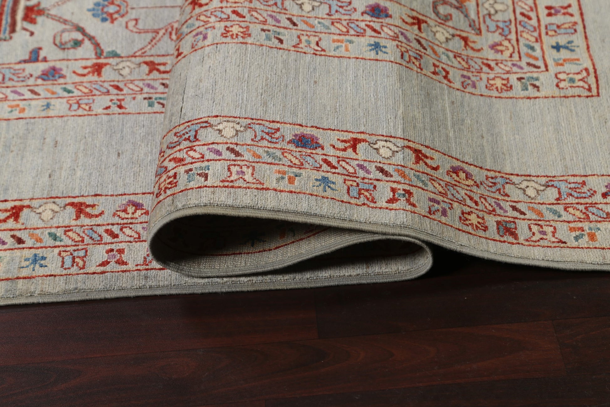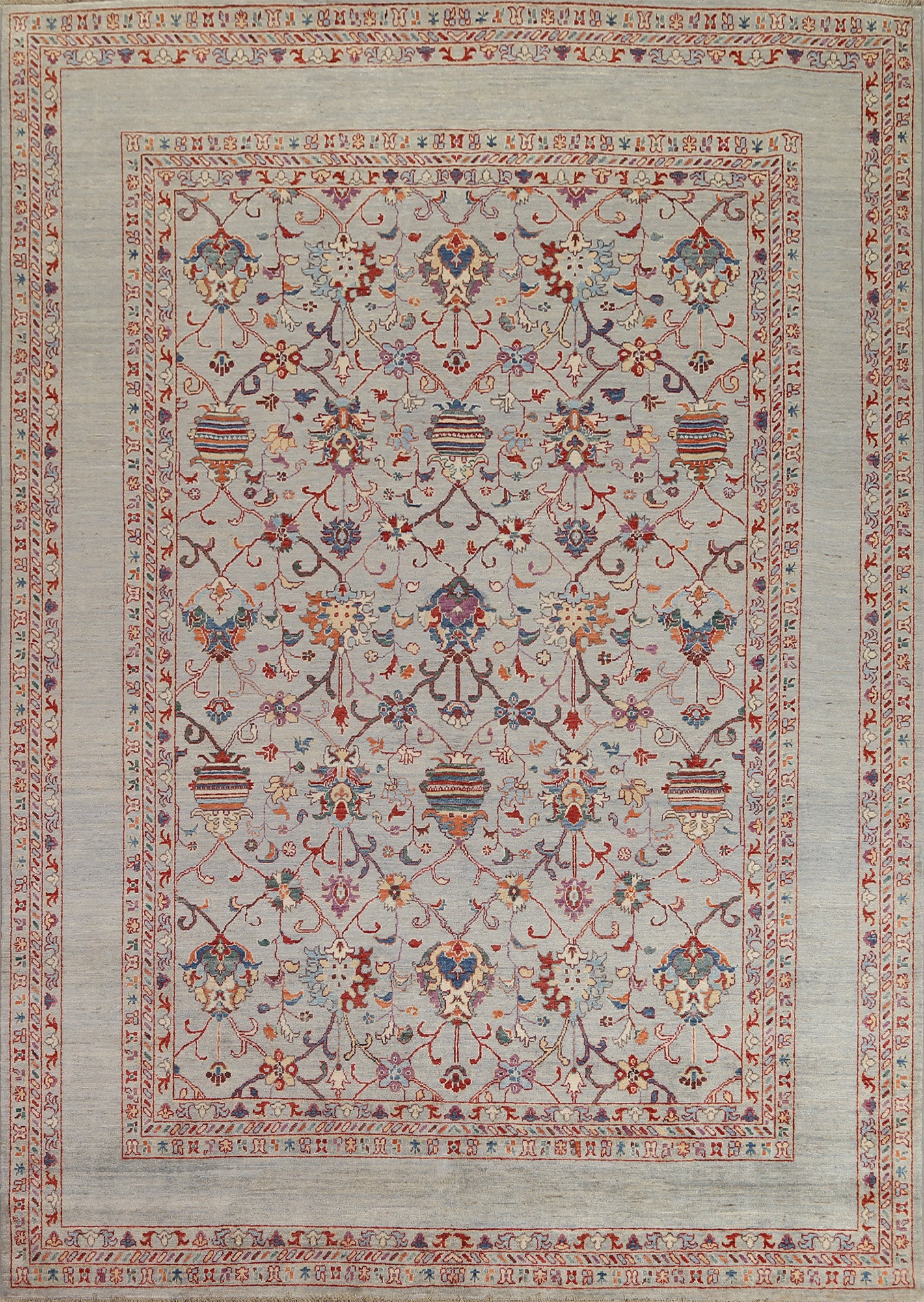 A Beautiful Genuine Pakistan Ziegler rug is Hand Knotted by skillful weavers in Pakistan with 100% Wool Material. This rug is in New, First Quality condition. dimensions are 9' 10'' X 8' 0'' in foot and 300 X 244 in centimeter. the primary color is Greys & Charcoal.