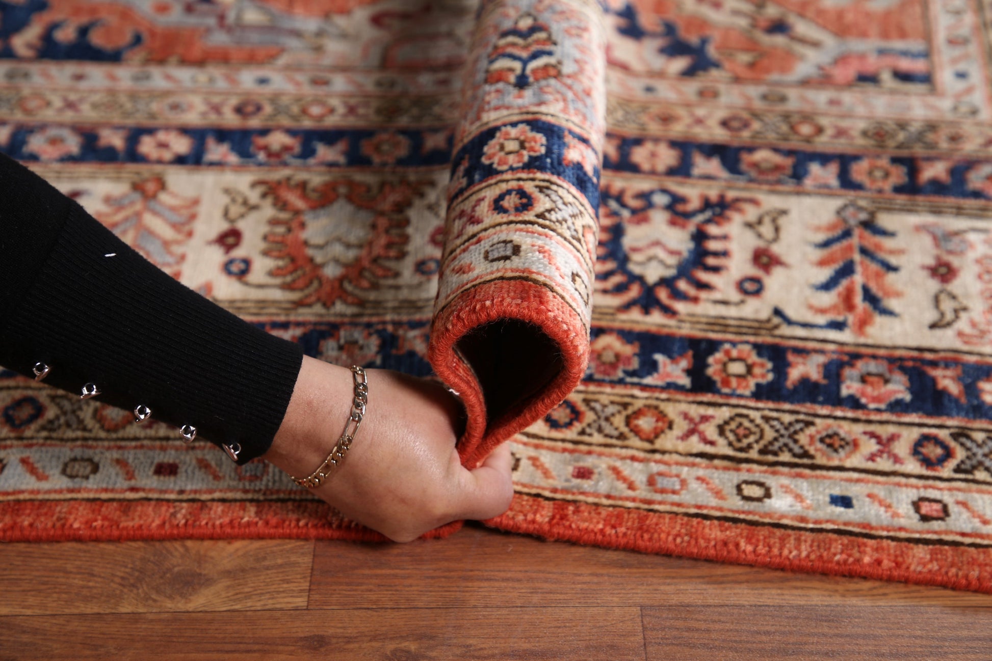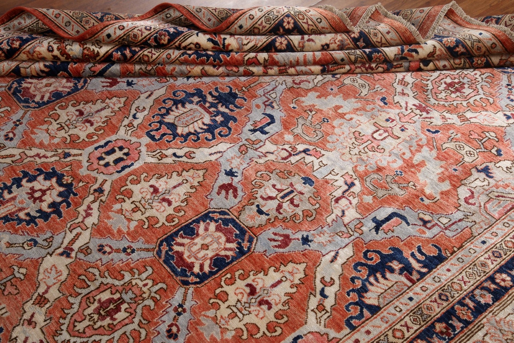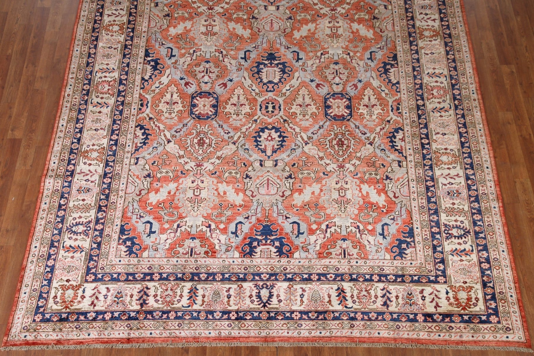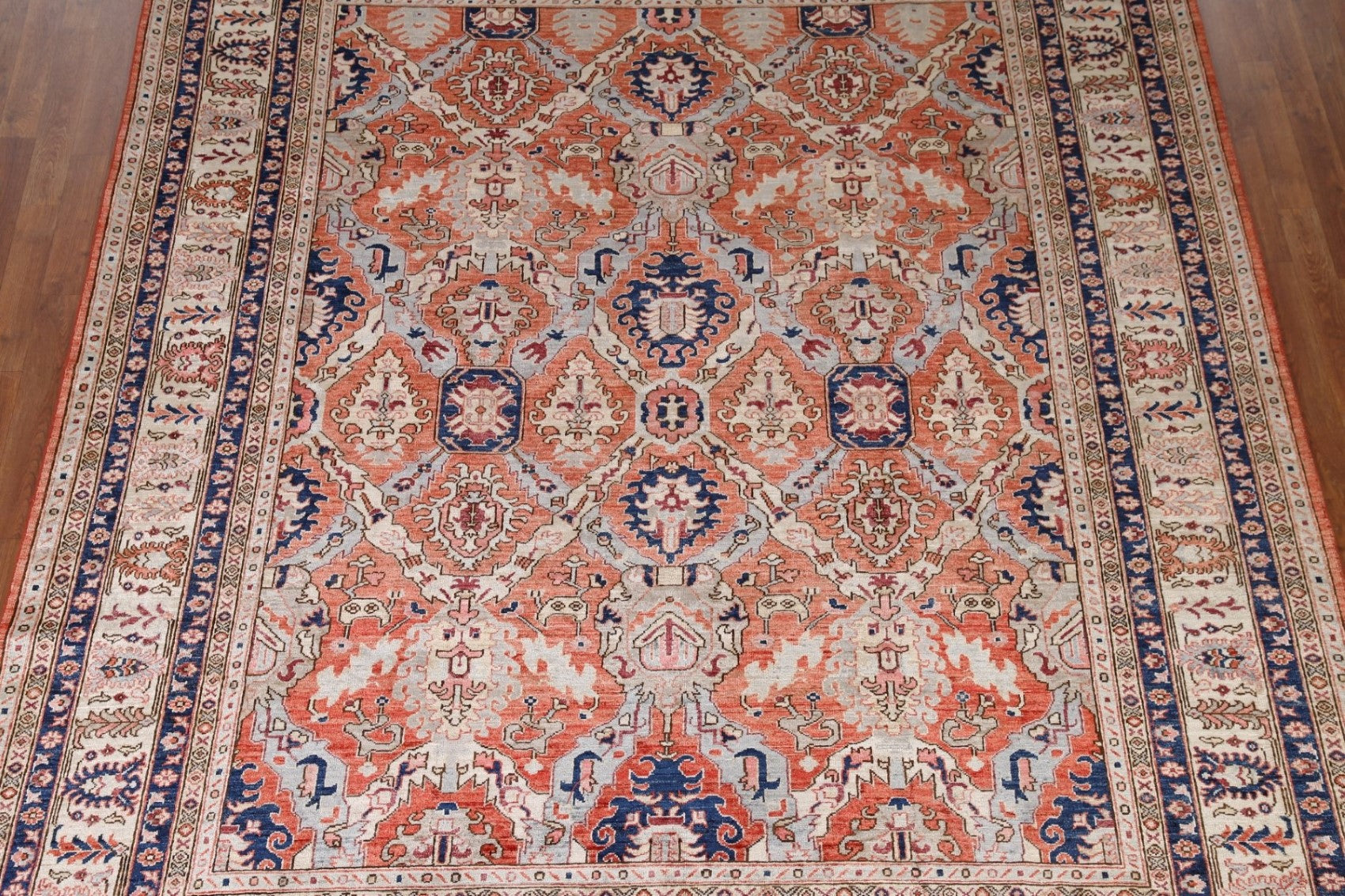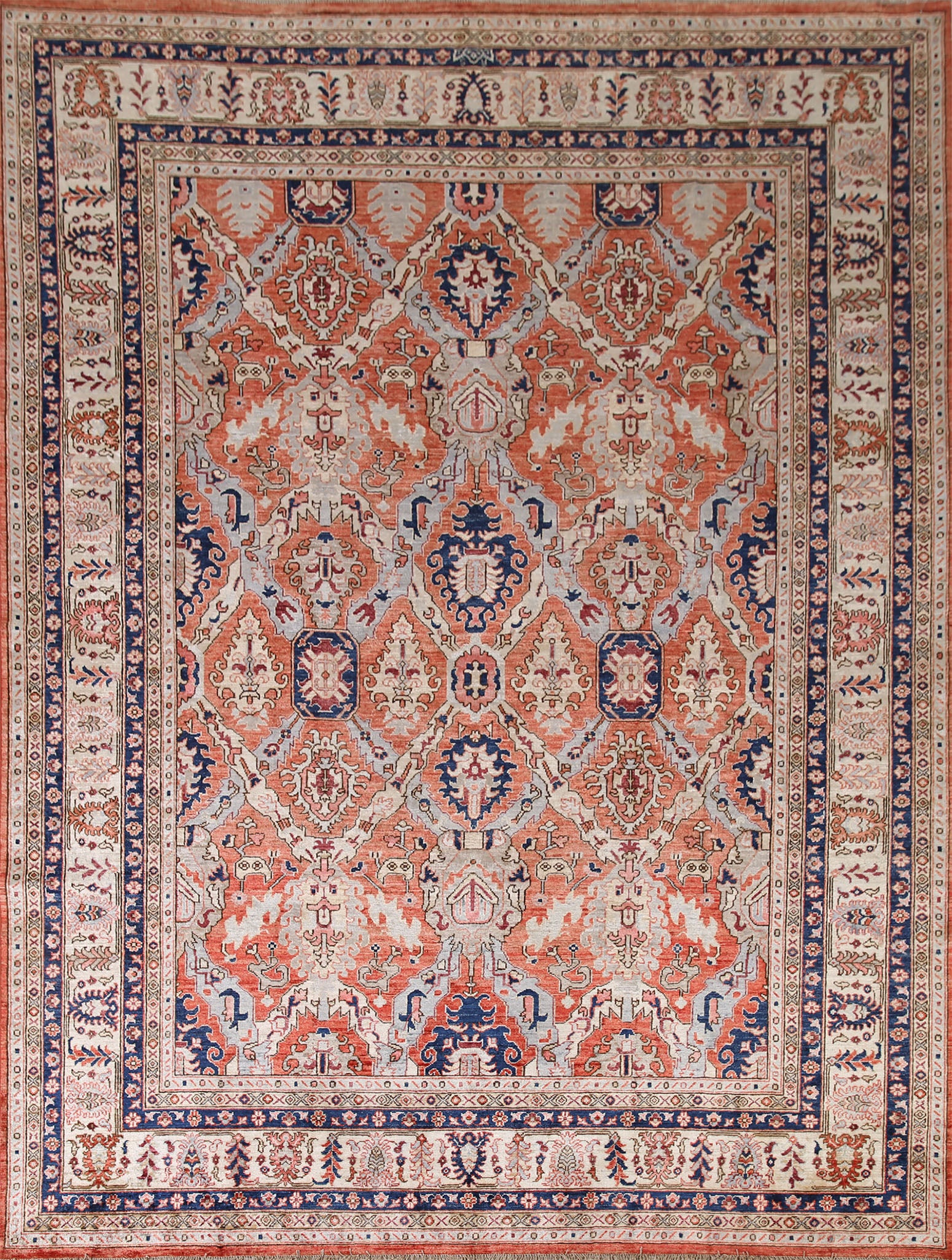 A Beautiful Genuine Pakistan Ziegler rug is Hand Knotted by skillful weavers in Pakistan with 100% Wool Material. This rug is in condition. dimensions are 9' 10'' X 8' 3'' in foot and 300 X 251 in centimeter. the primary color is Oranges & Rust.