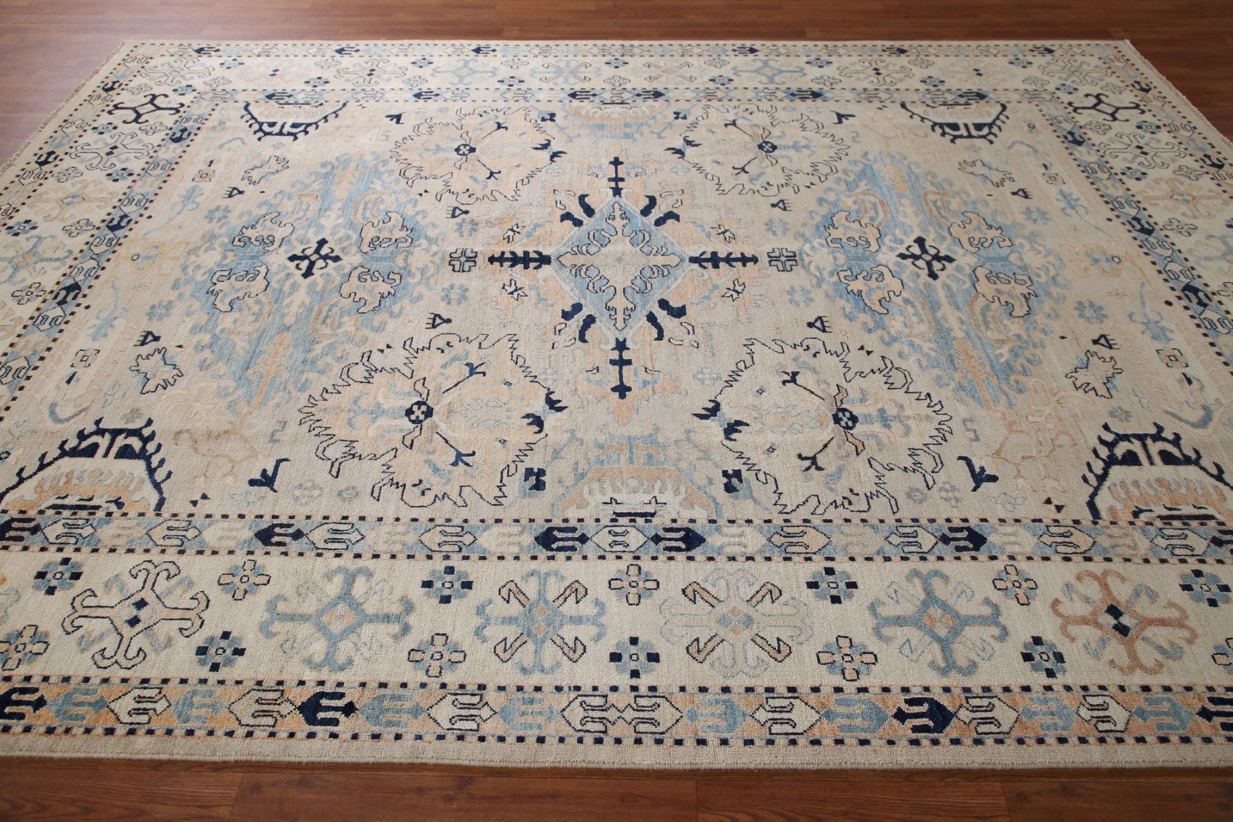 A Beautiful Genuine Pakistan Ziegler rug is Hand Knotted by skillful weavers in Pakistan with 100% Wool Material. This rug is in New, First Quality condition. dimensions are 10' 6'' X 8' 0'' in foot and 320 X 244 in centimeter. the primary color is Beige & Ivories.
